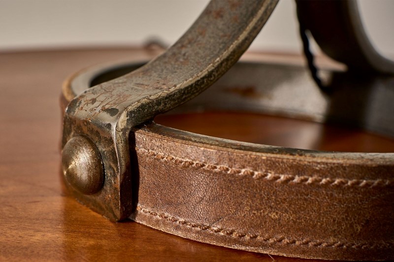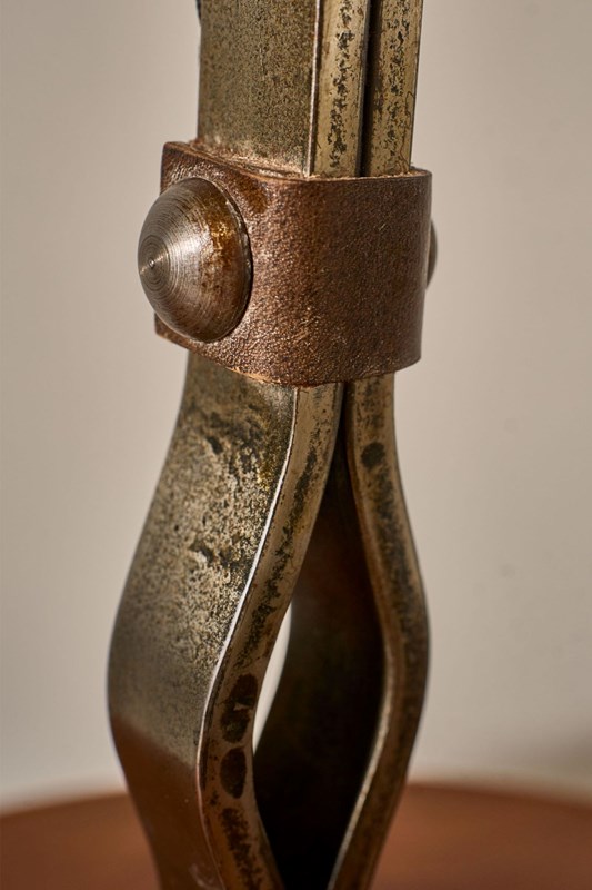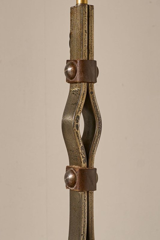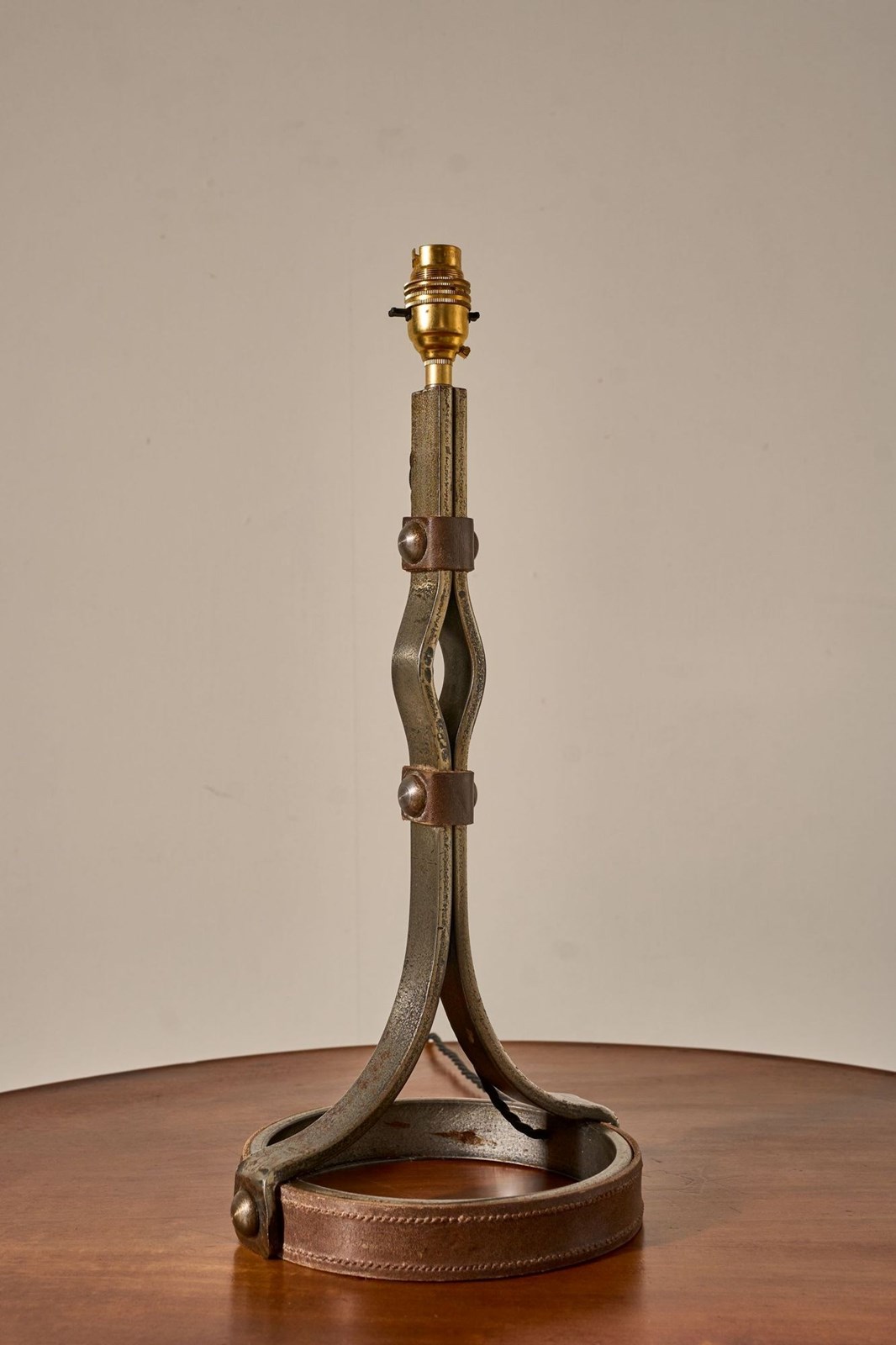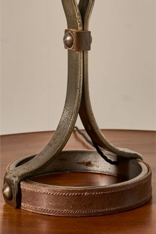 Mid 20Th Century Iron And Leather Table Lamp By Jean Pierre Ryckaert