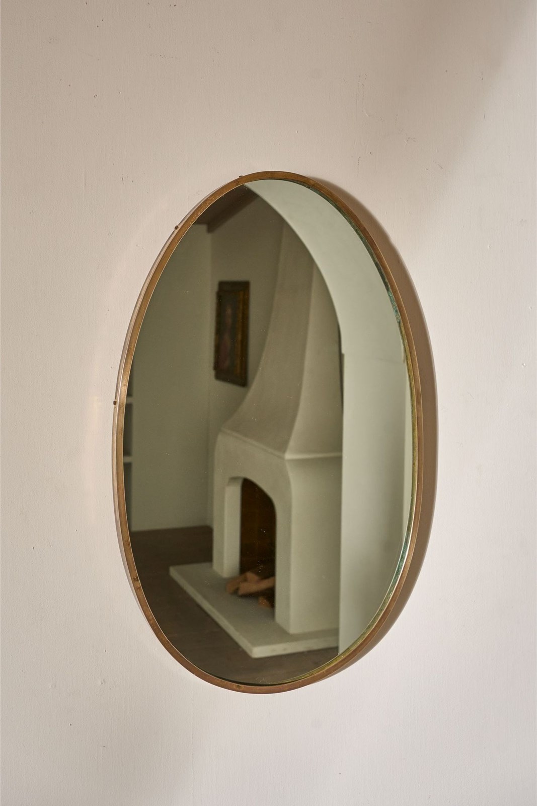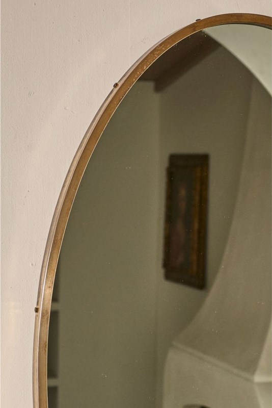 Mid 20Th Century Italian Brass Edged Oval Wall Mirror