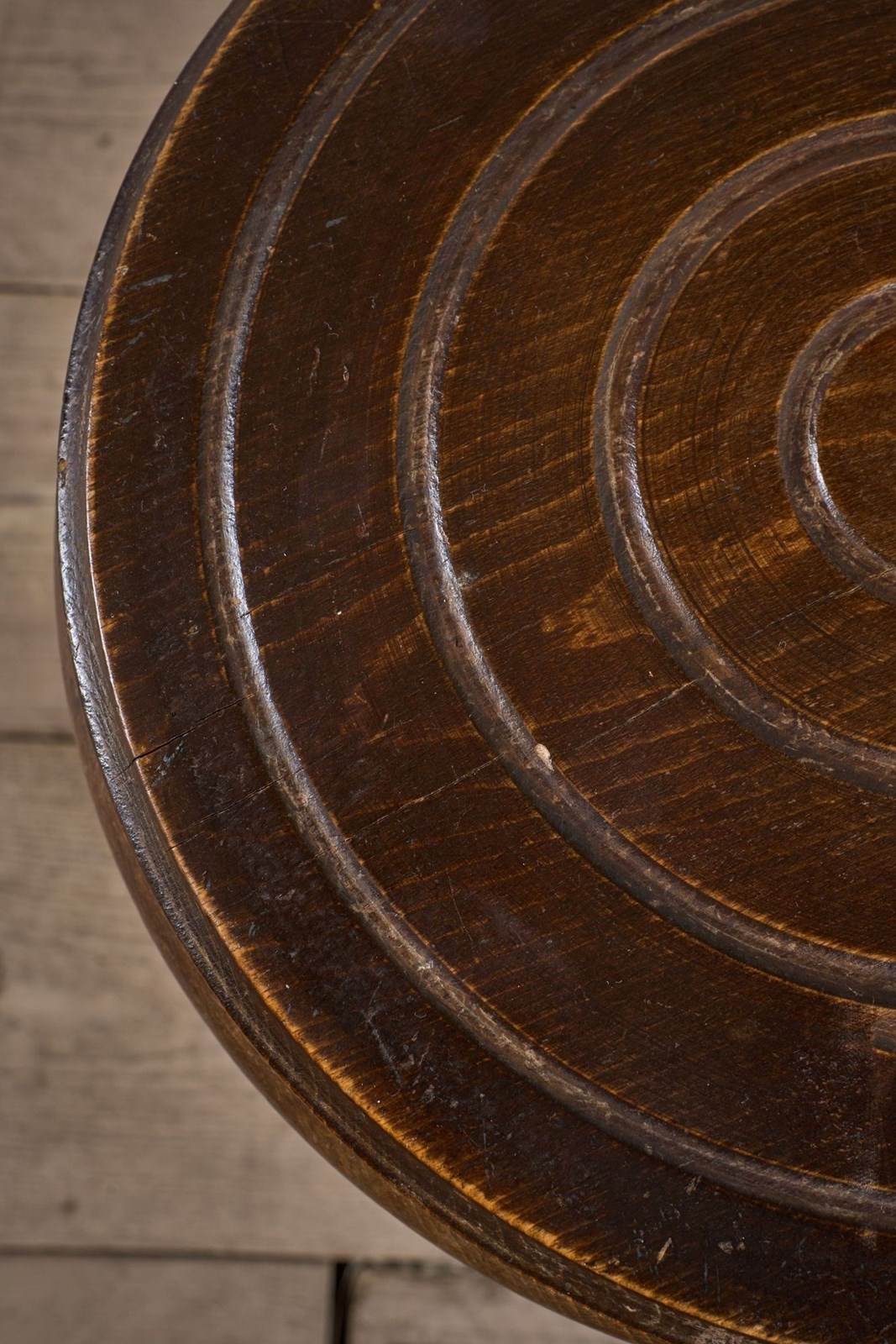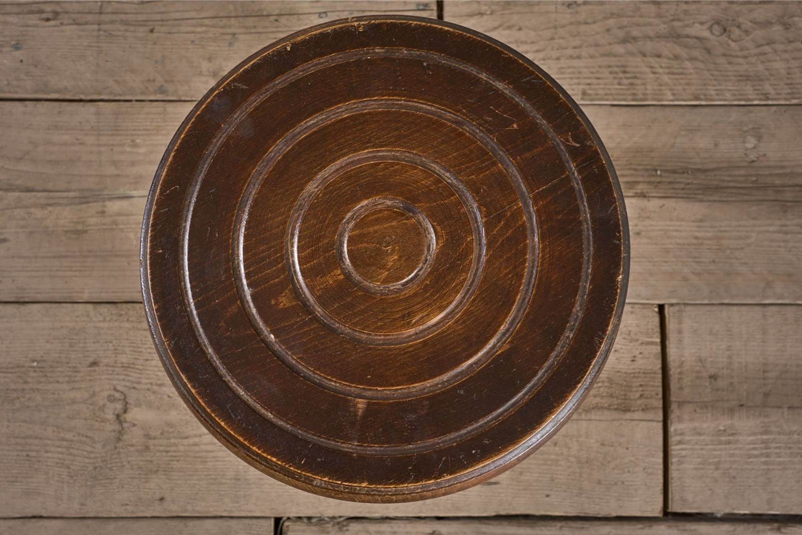 This a great looking, heavy weight, solid wooden mid 20th century stool side table. The design on the legs by the way they are turned is very attractive and the top works really well.