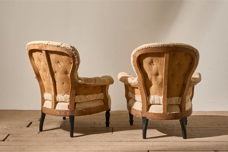 Pair Of Napoleon III Buttoned Spoon Back Armchairs