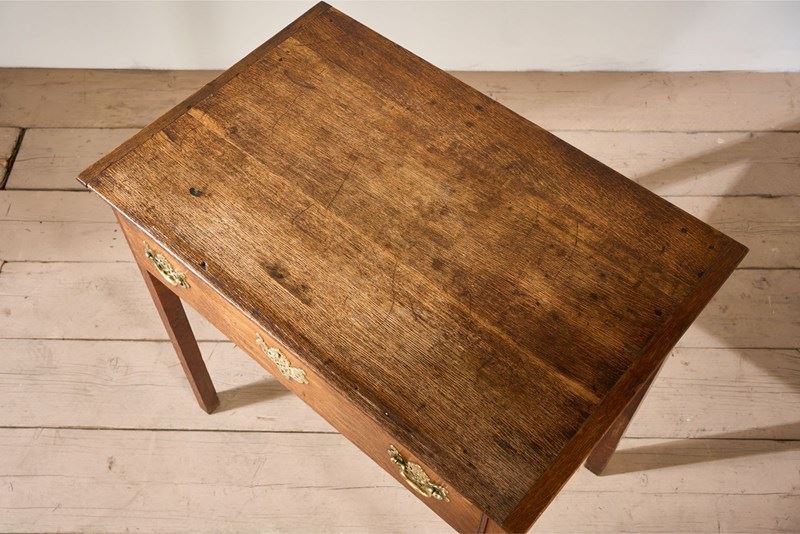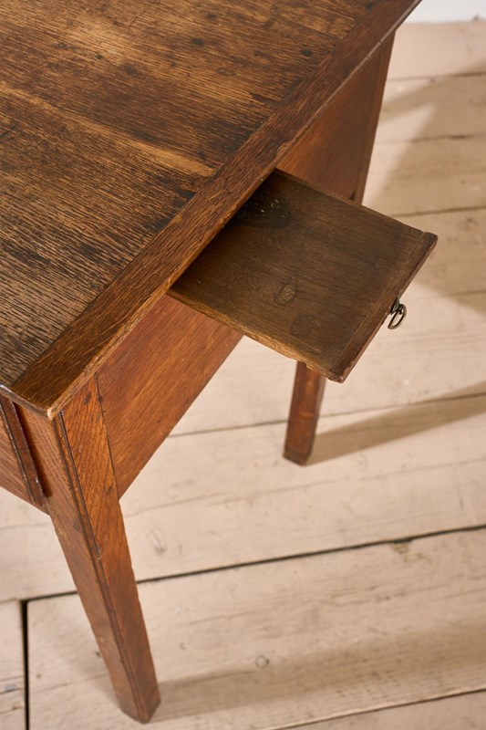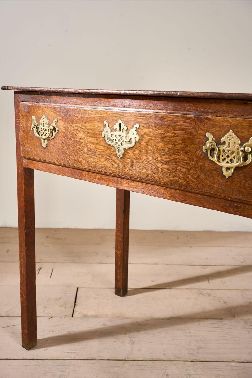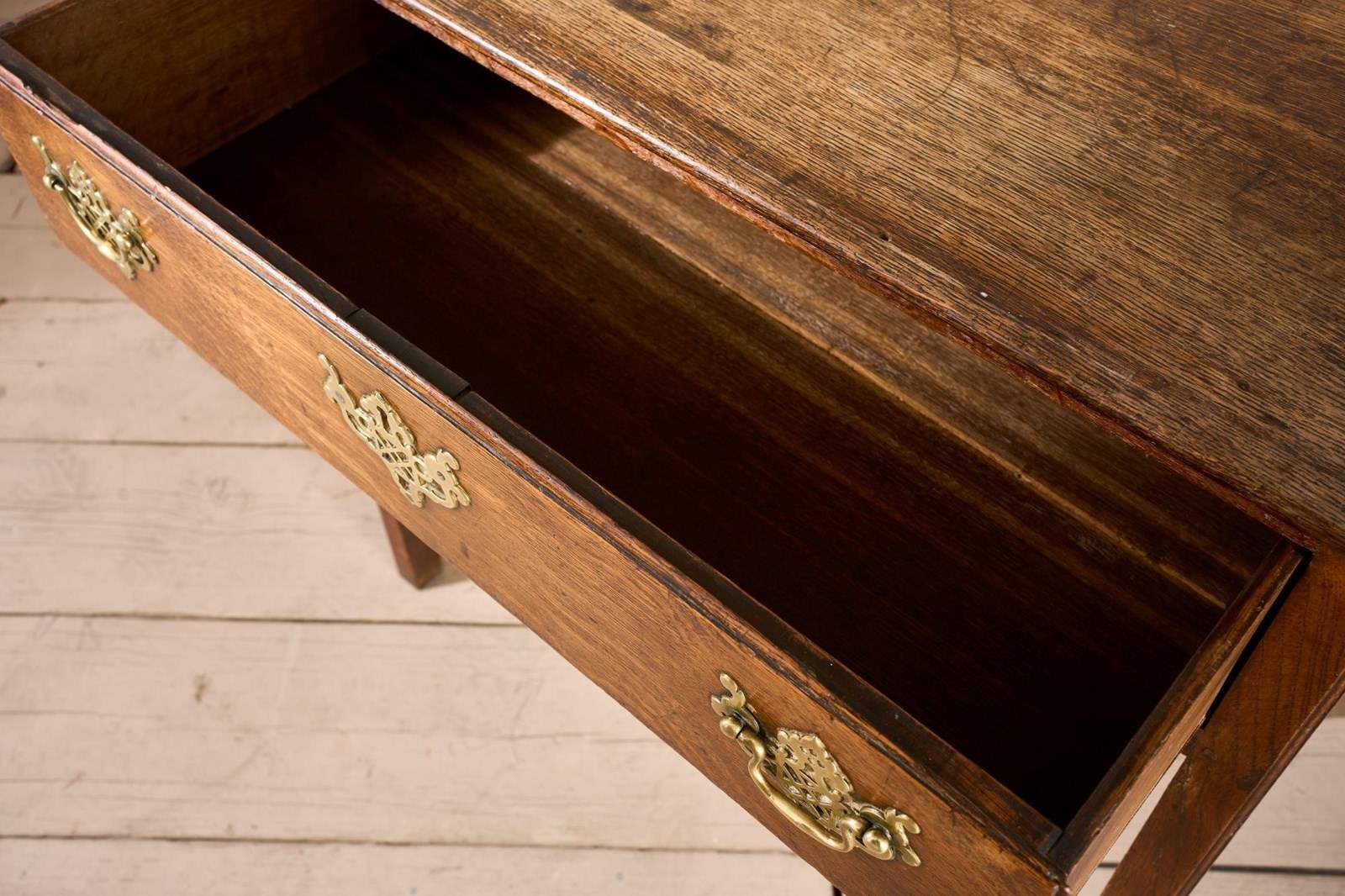 This is rare and unusual 18th century oak artists table. Really smart design and totally original condition. When not in use this looks like a nice quality 18th century Low boy making it very decorative. But for those that know this turns into a rare surviving piece of furniture with a fully adjustable top and oak rail as well as two pull out stands, one at each side originally for brushes and water. Lovely interesting piece of furniture that is also practical as the drawer is very generous.