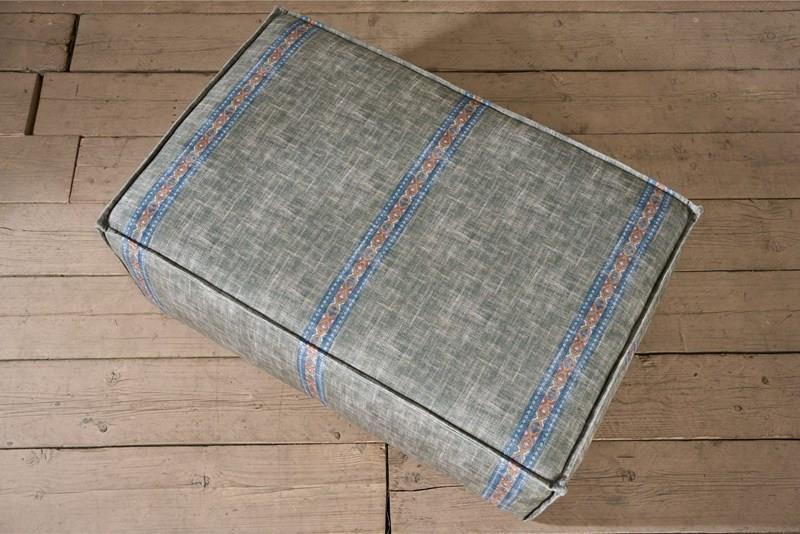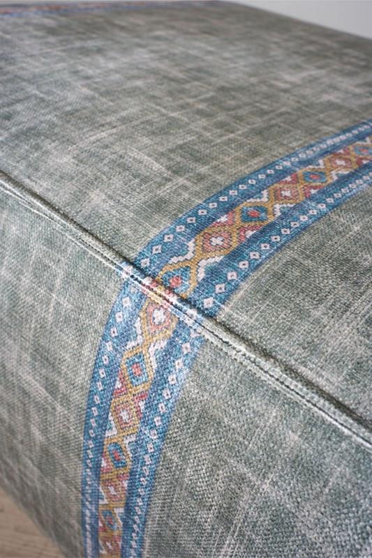 The original stools were often covered in worn Kilim fabric which is what inspired this fabric choice.