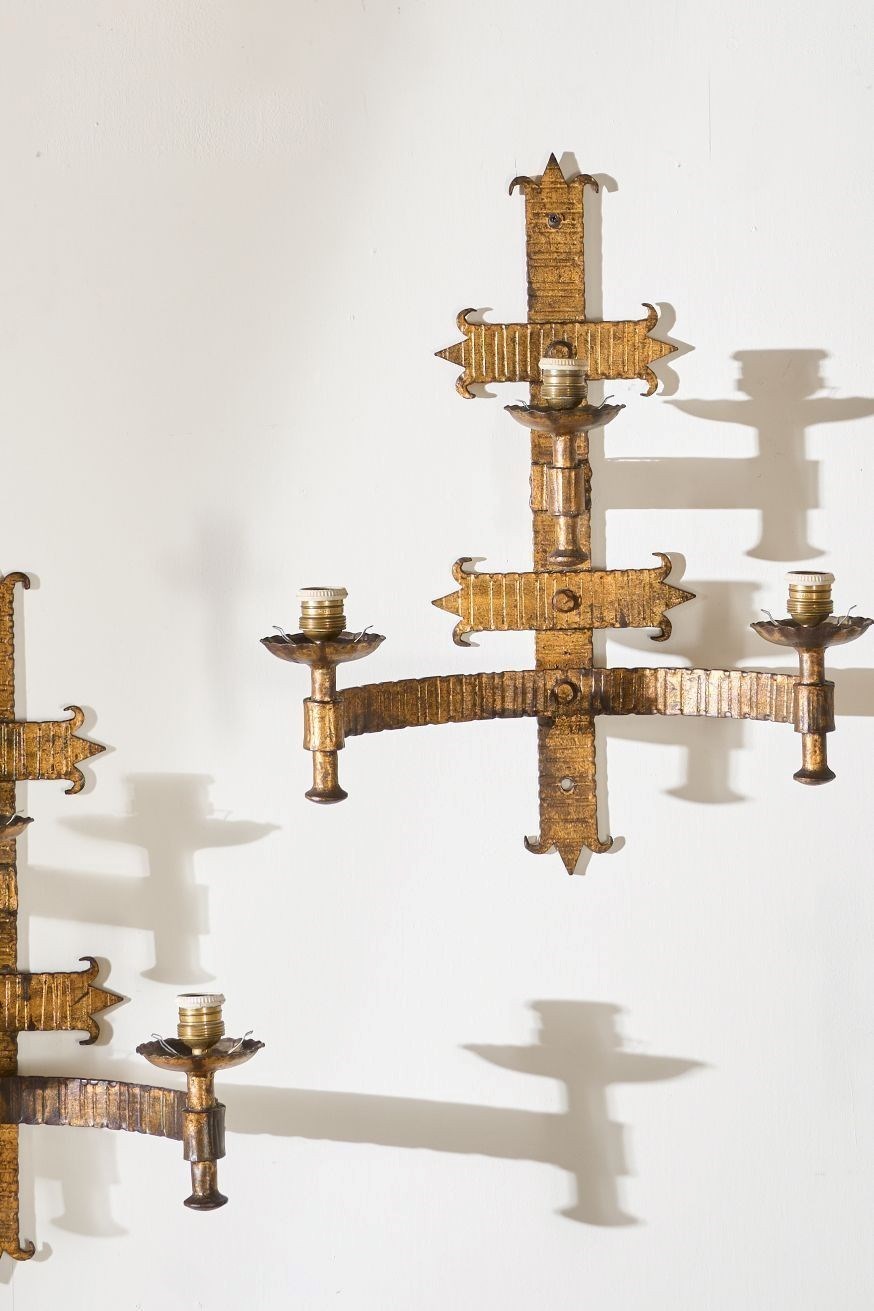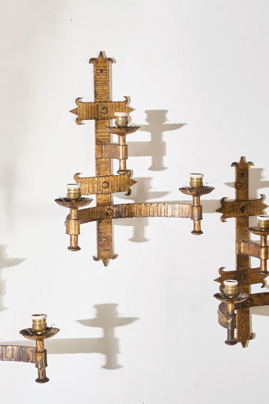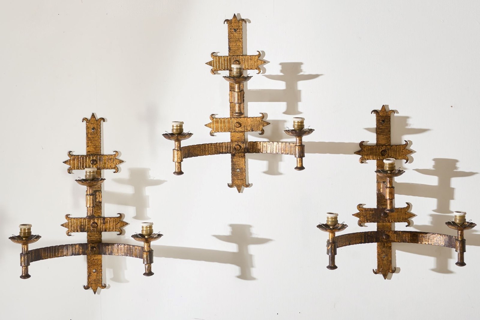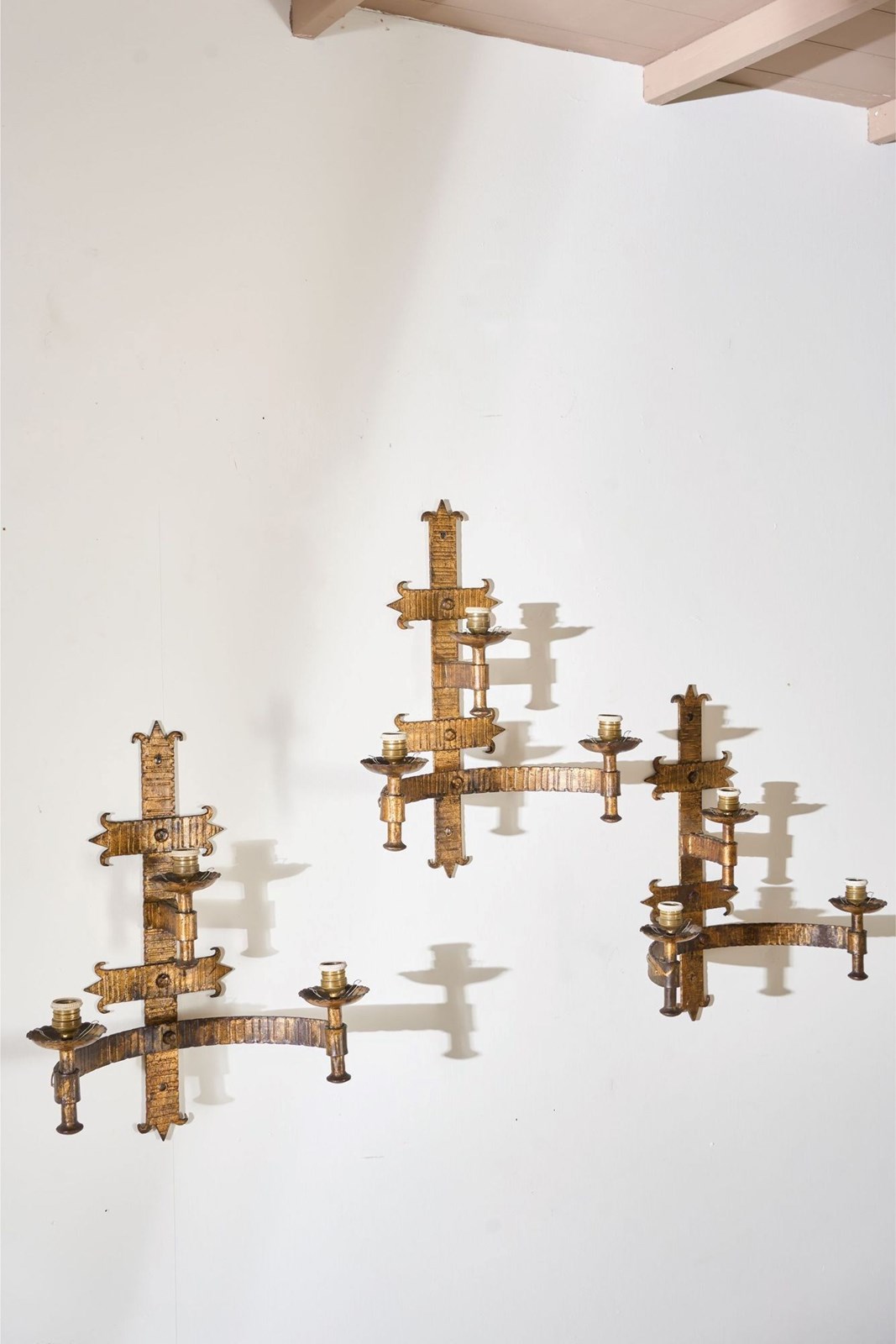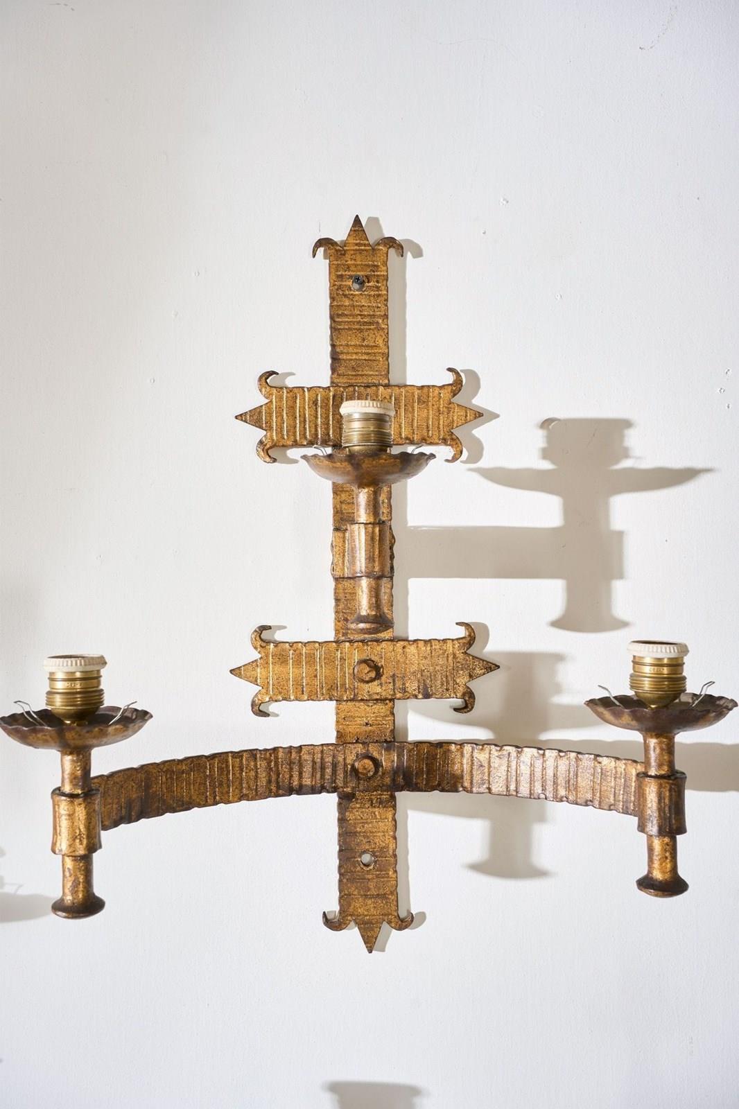 Trio Of Mid Century Spanish Gilt Metal Wall Lights