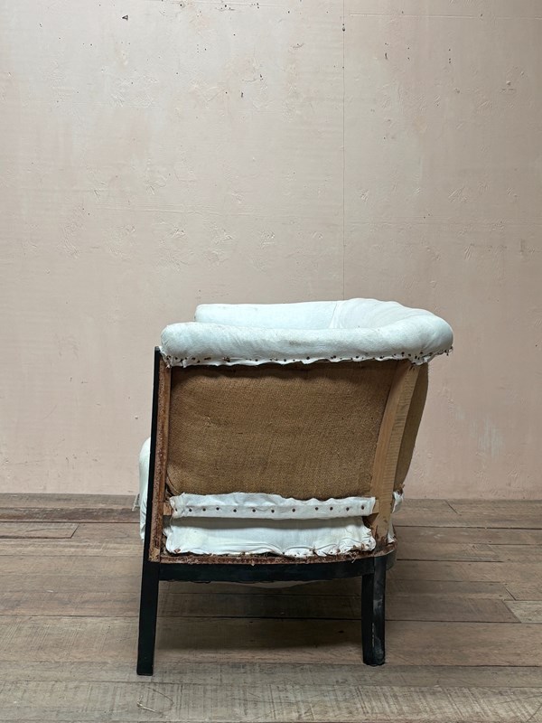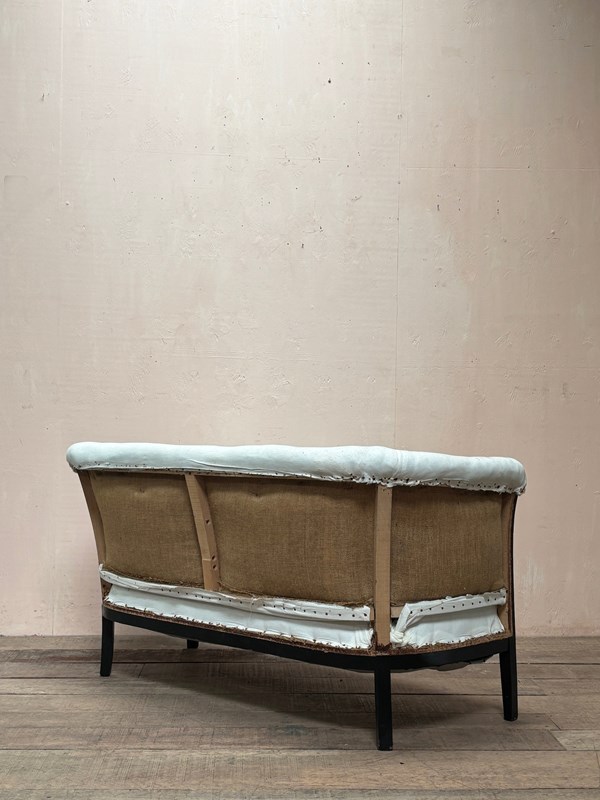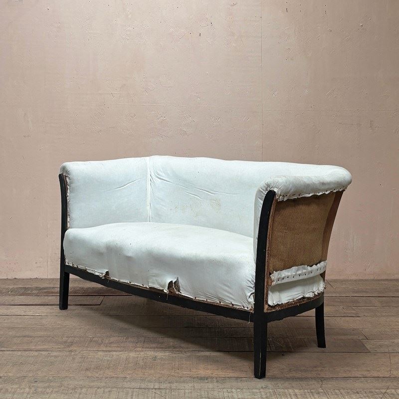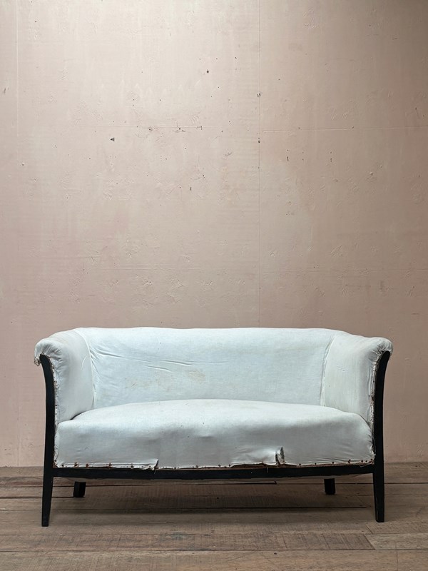Compact 1920’s settee with ebonised frame, for re-upholstery.
