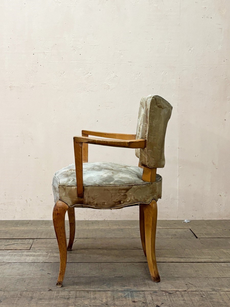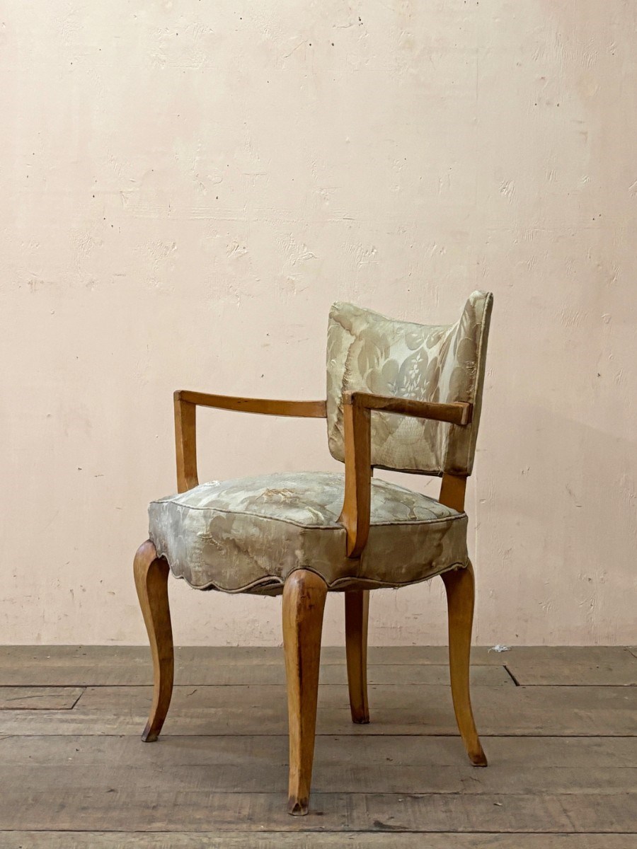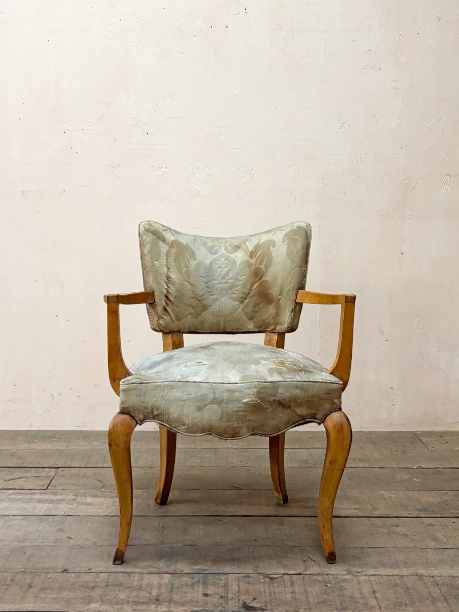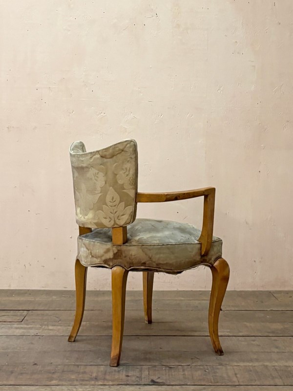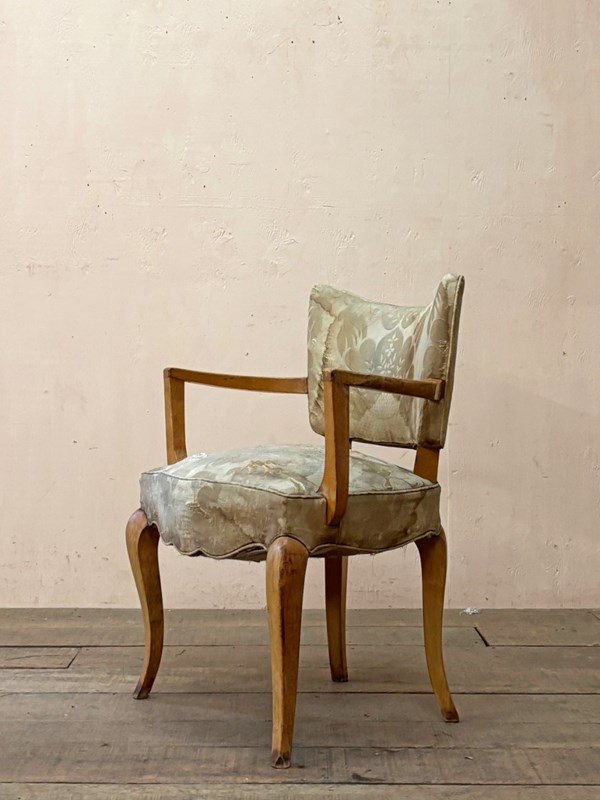 Very good quality 1950’s salon, desk or occasional chair on long cabriole legs, shaped undersides to seat rails and sculpted back.
