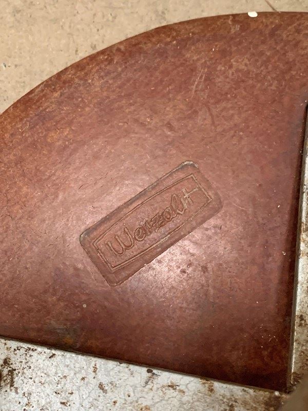 The manufacturer's name, Werzalit, is carved on the underside of the seat.