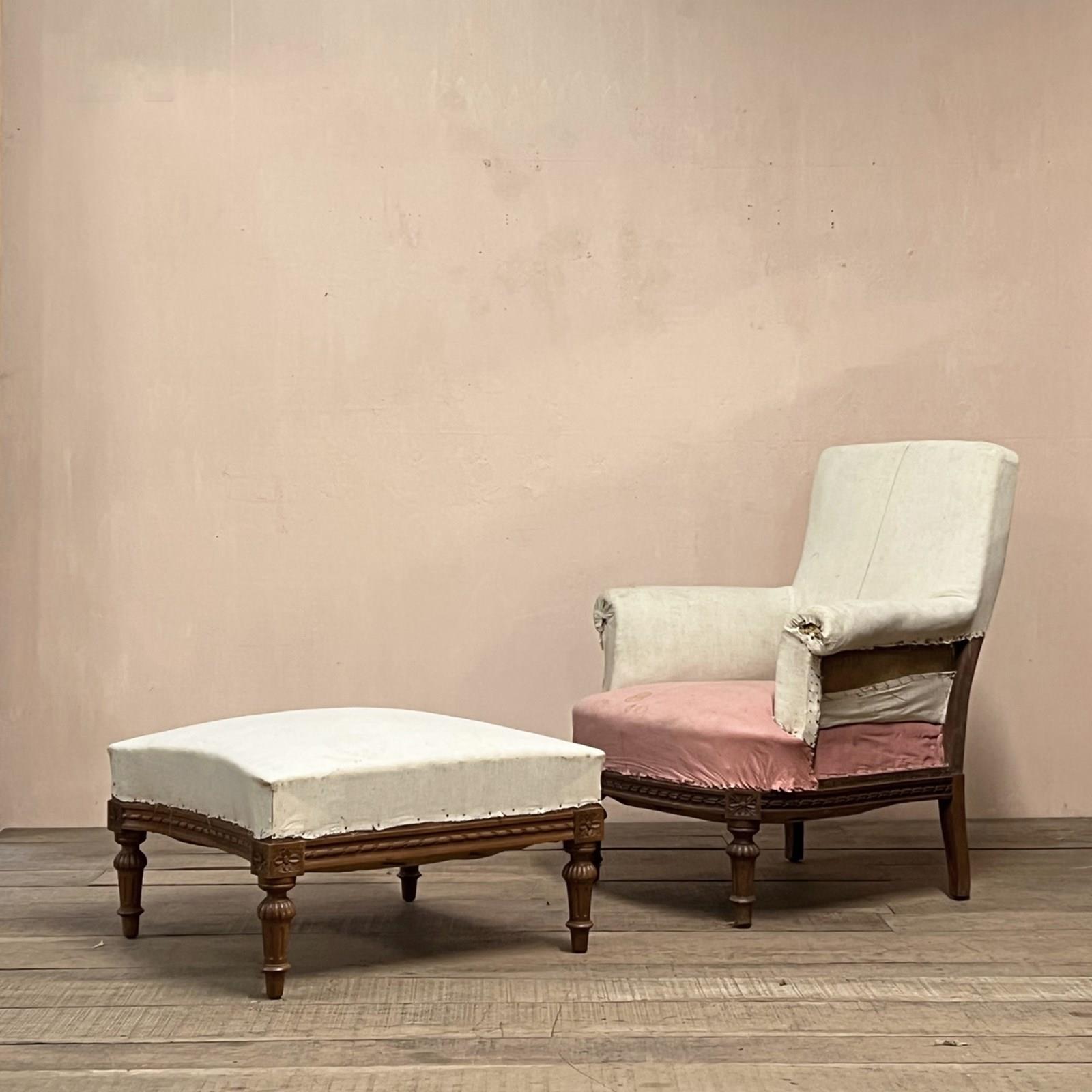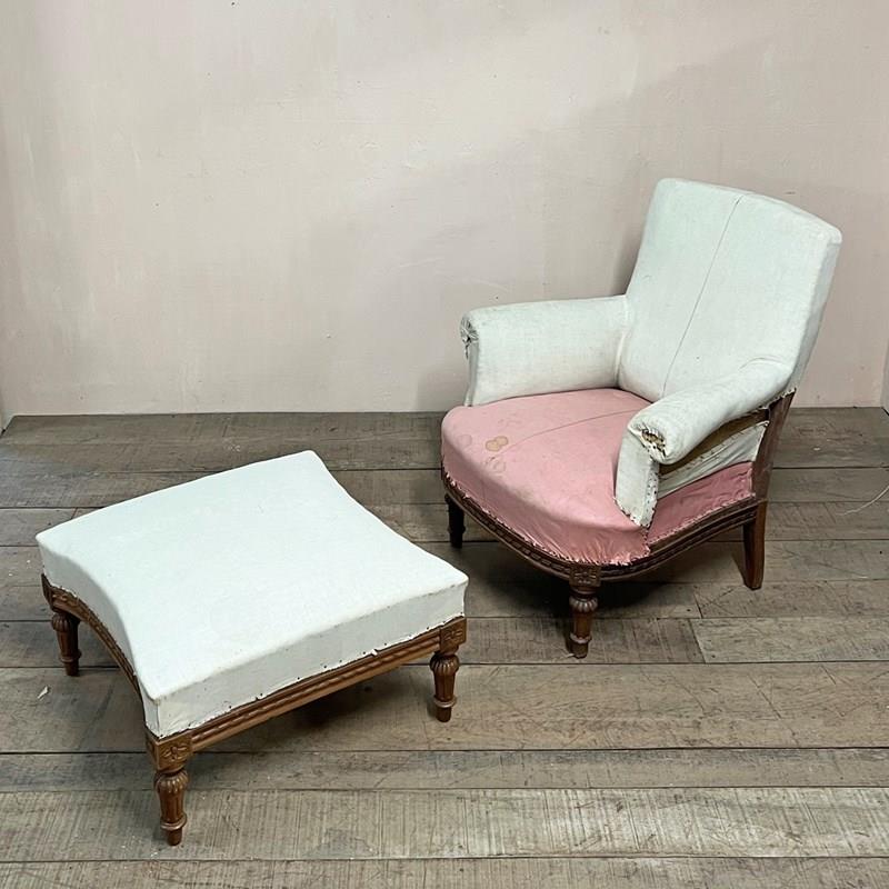 Armchair and footstool (inc. re-upholstery, ex. fabric)