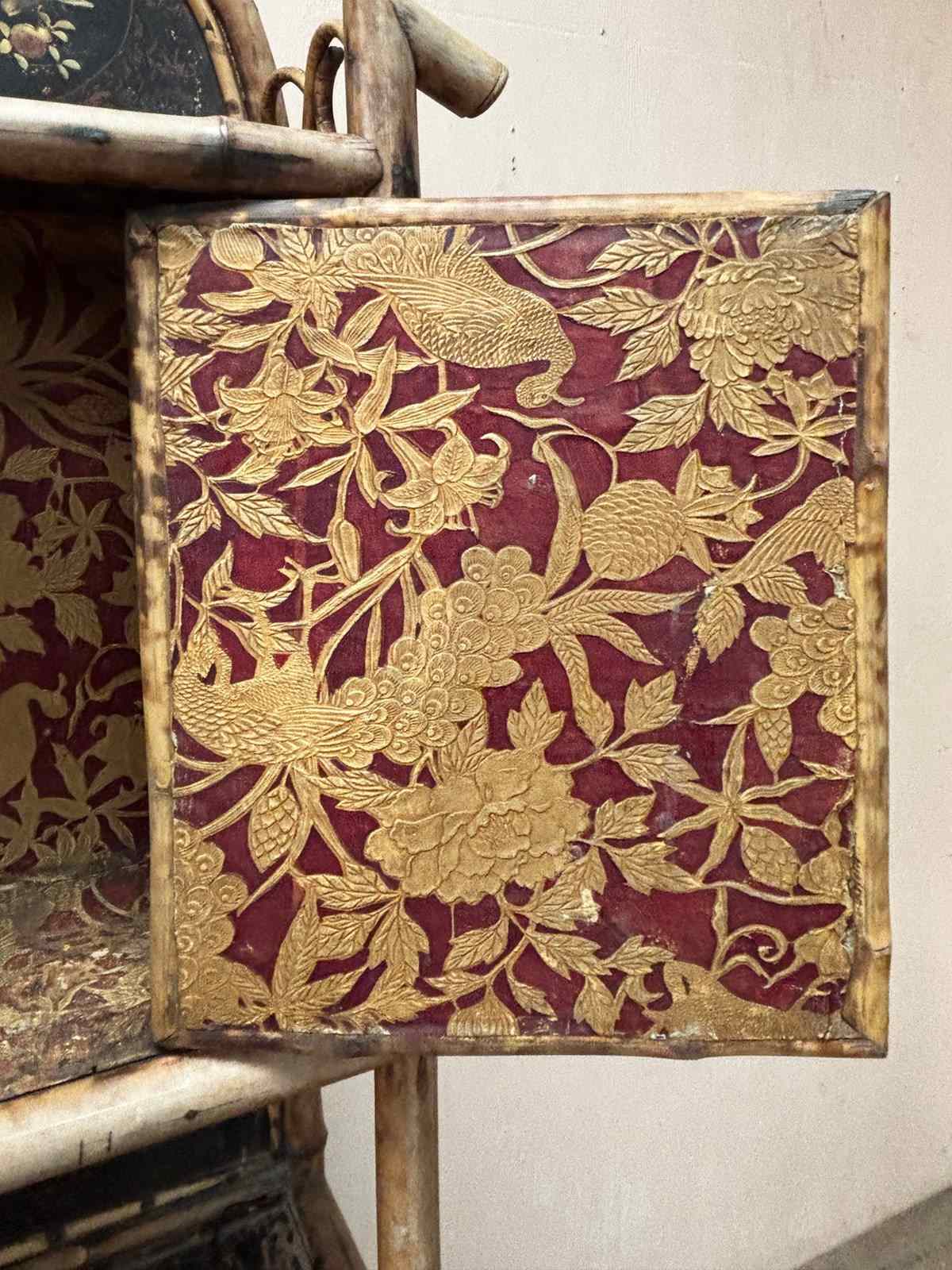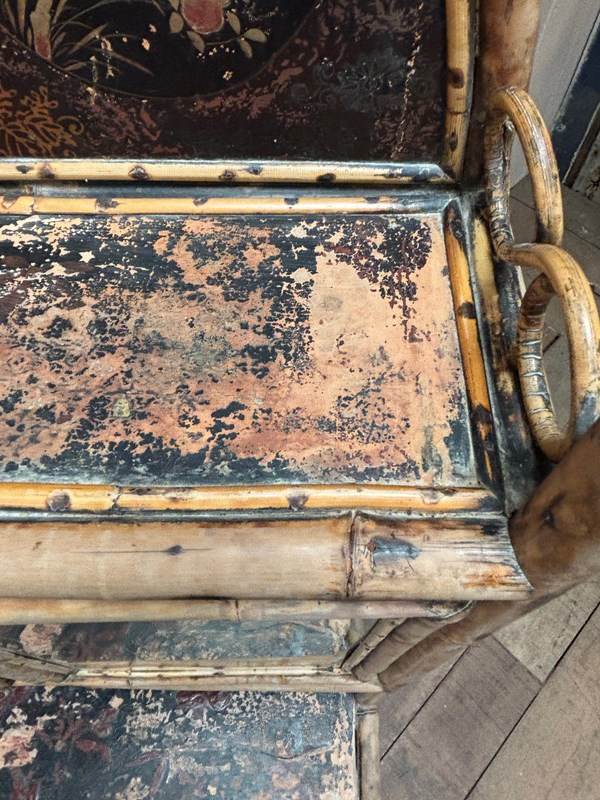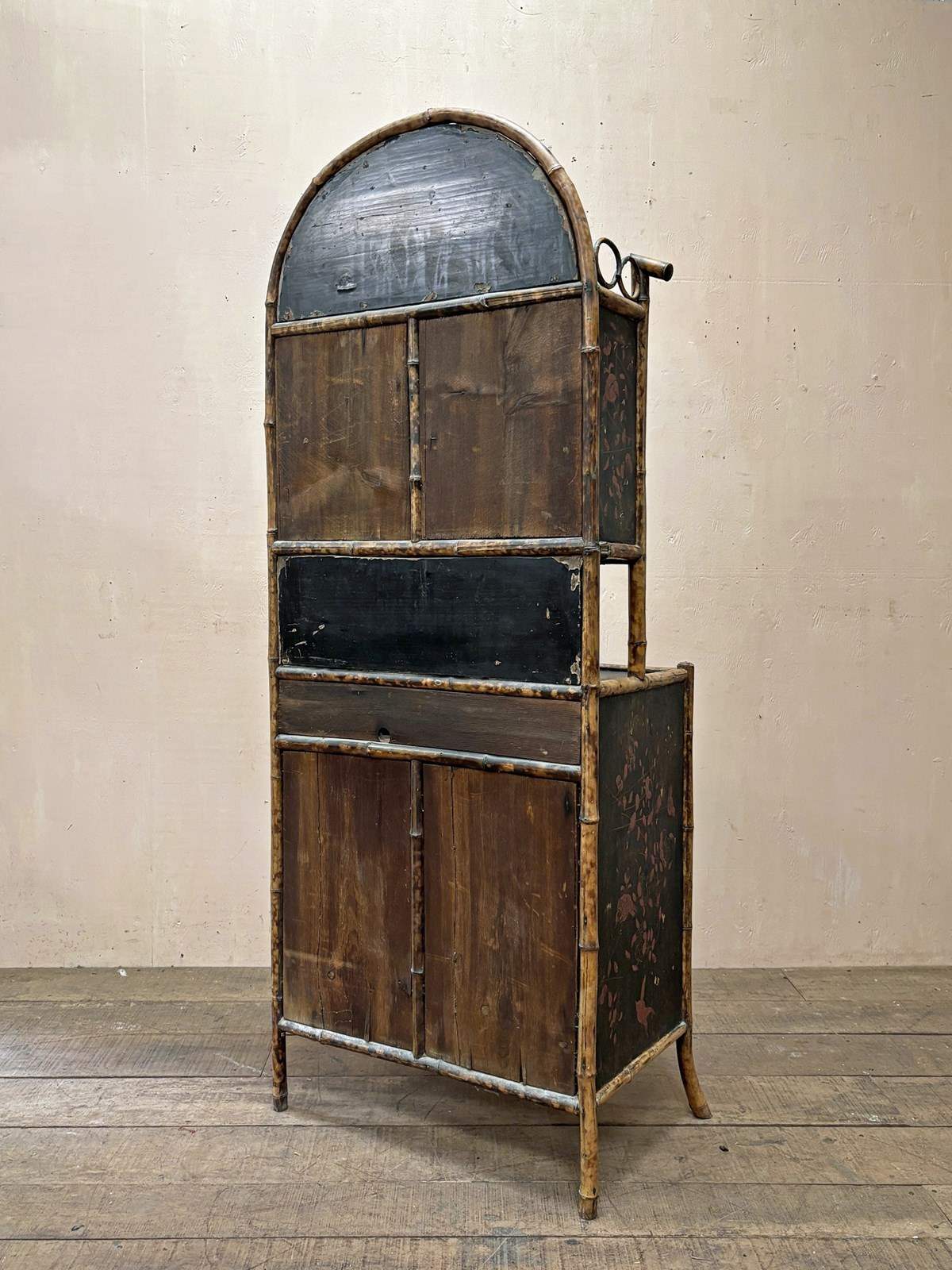 It retains its original metal work and foxed bevelled mirror plates, with interiors lined in beautiful embossed paper.