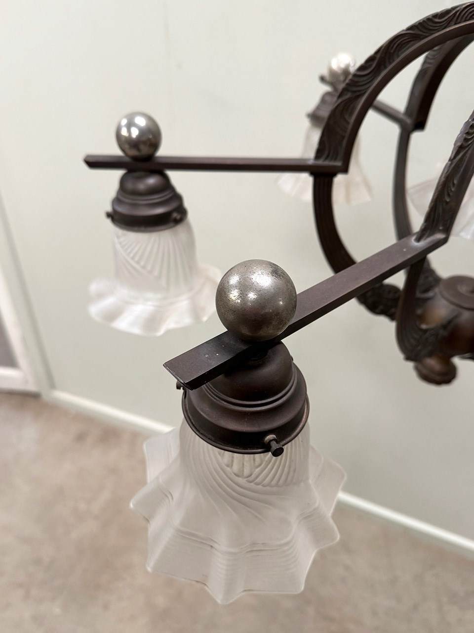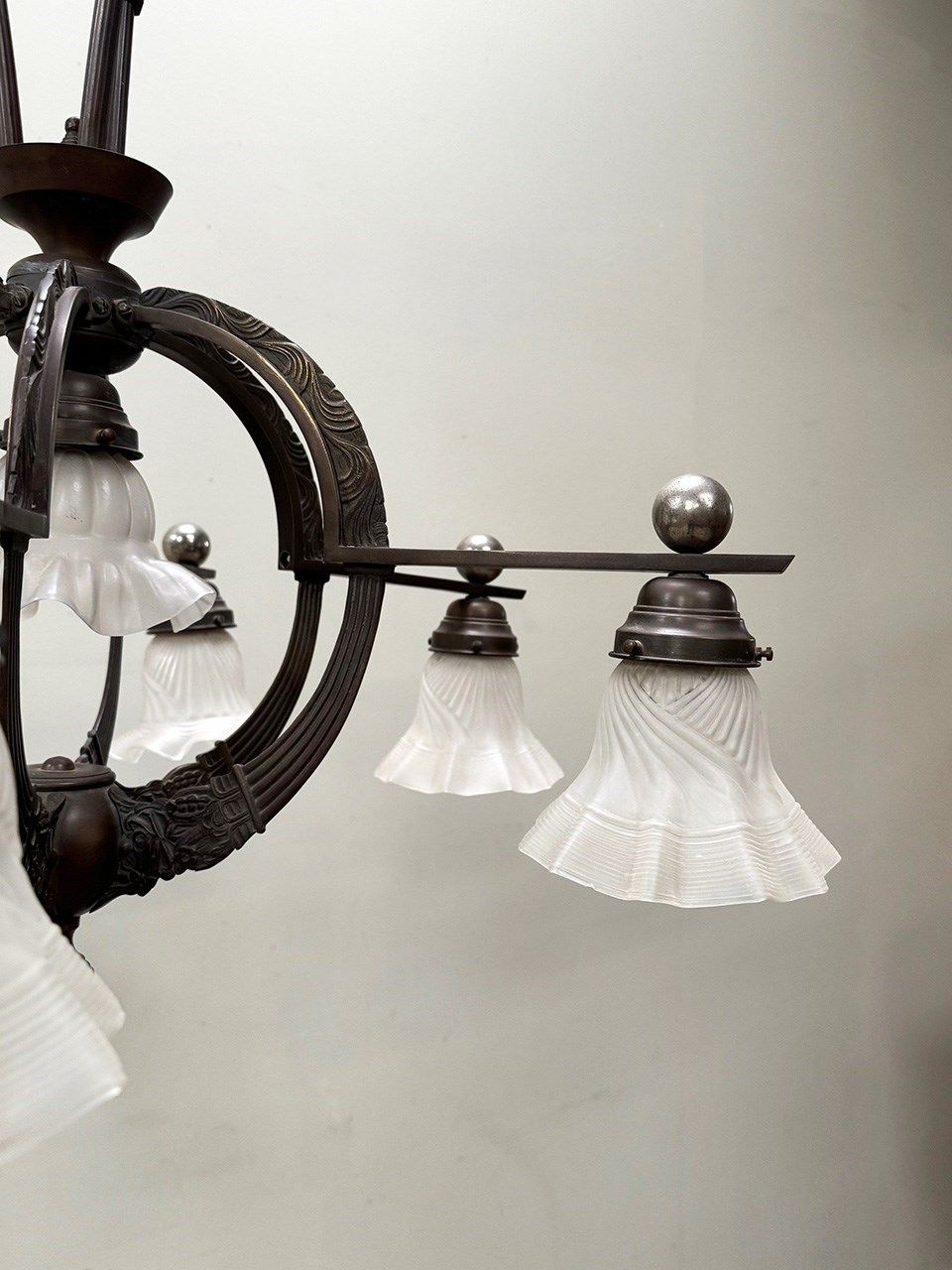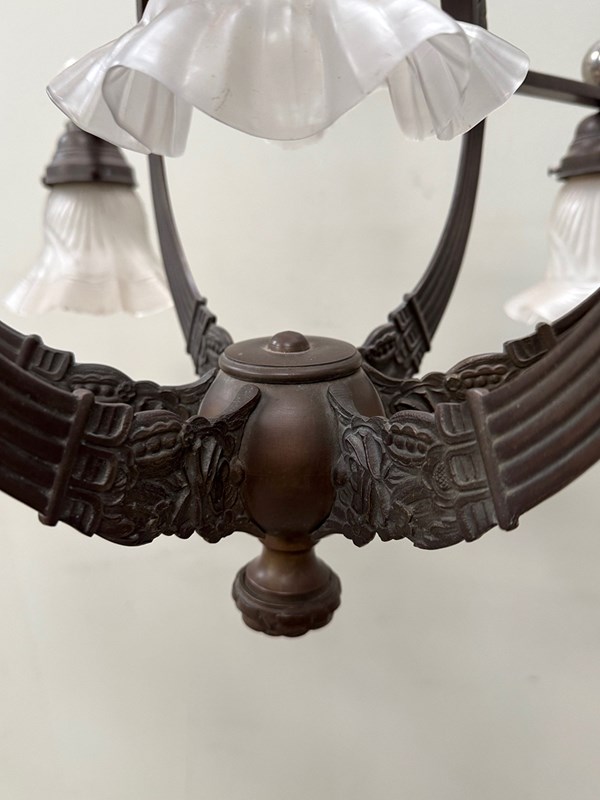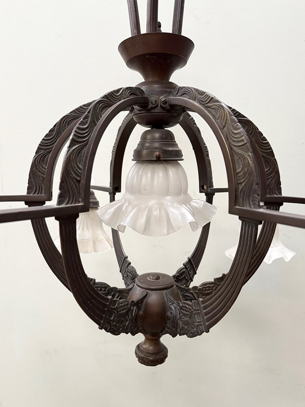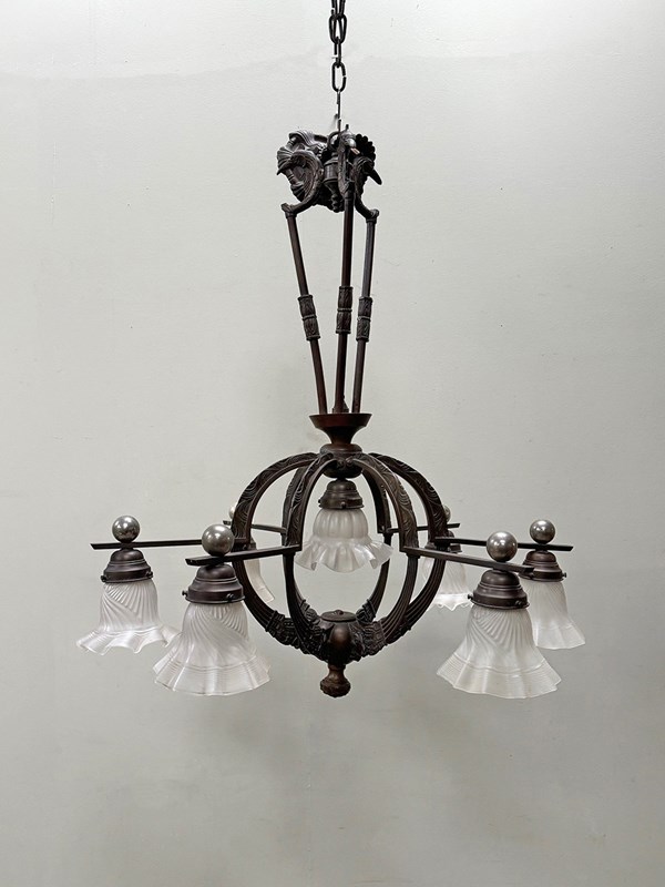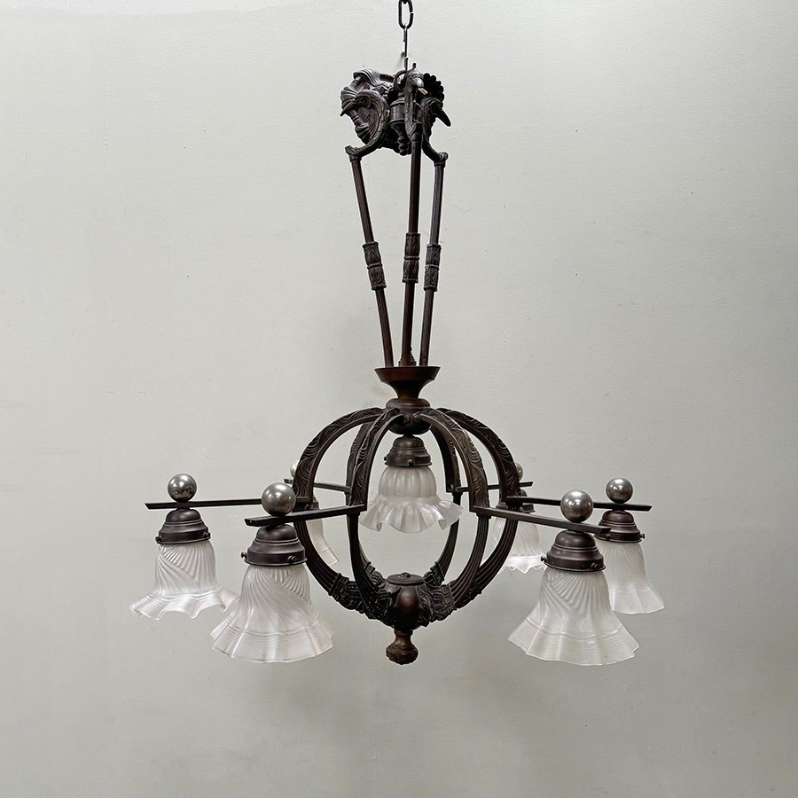 An exceptional 19th century bronze 6-arm ceiling light.