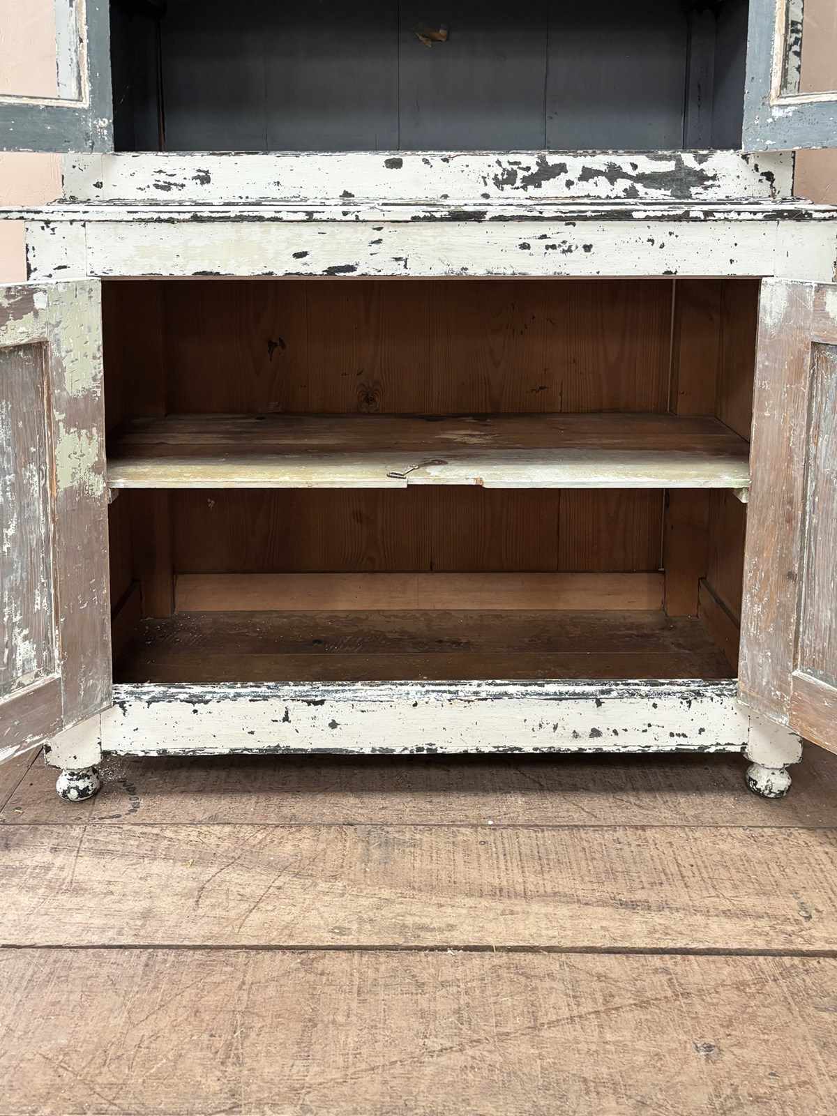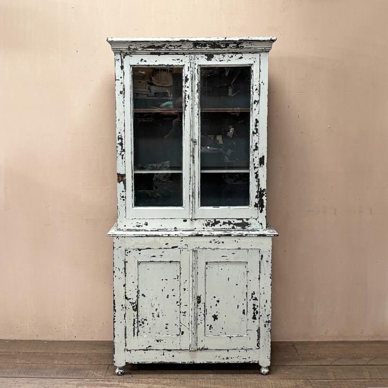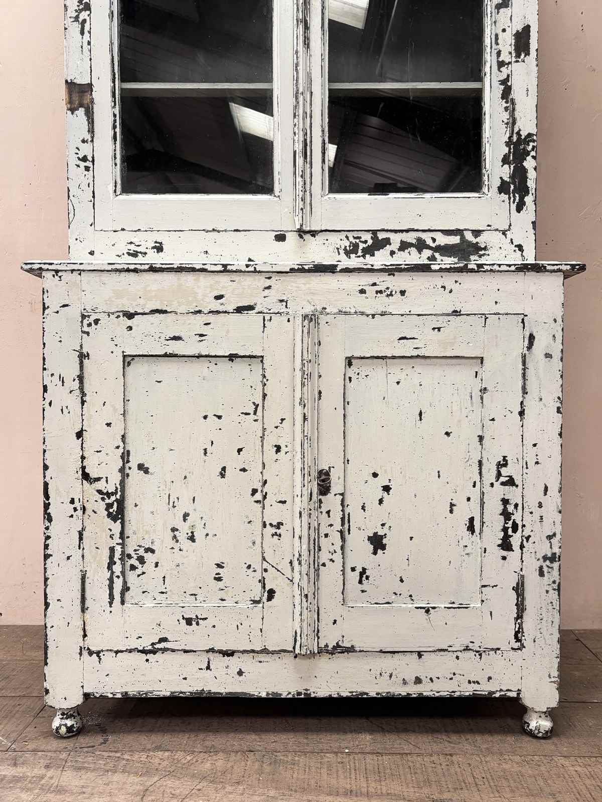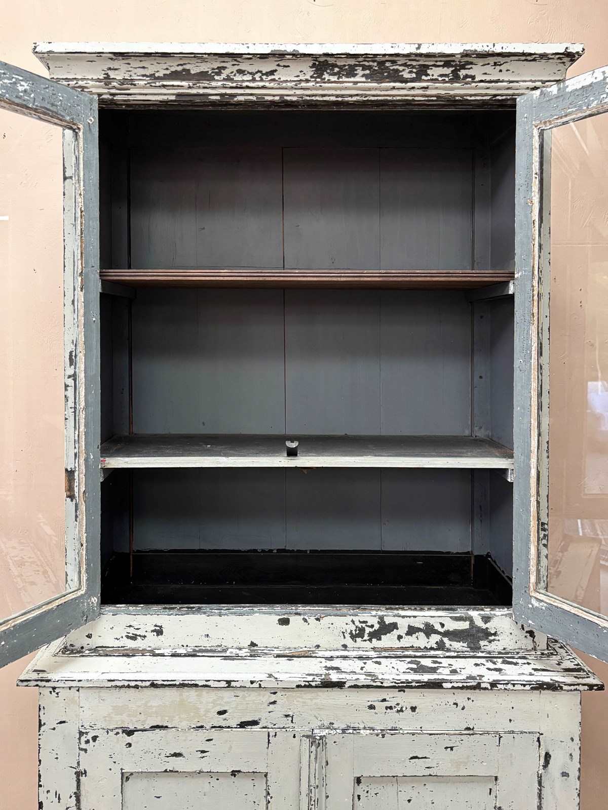 1840’s 2 heights French cupboard with shelved interior, original glass and retaining its original keys.