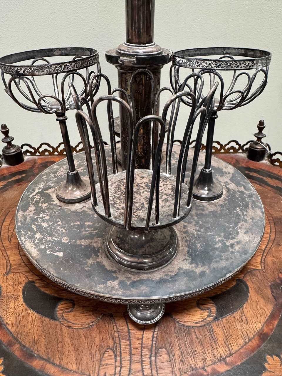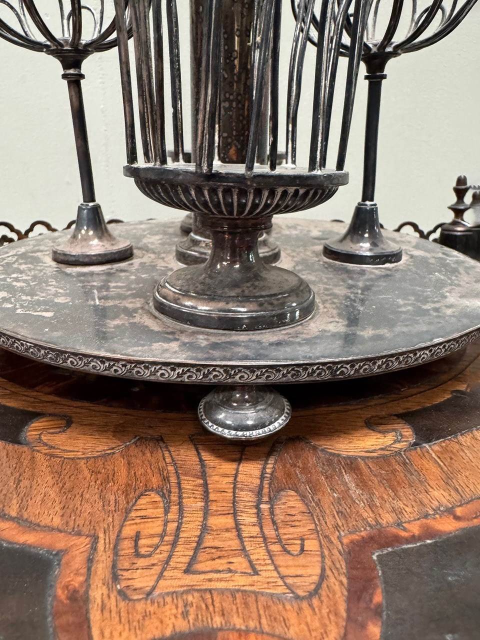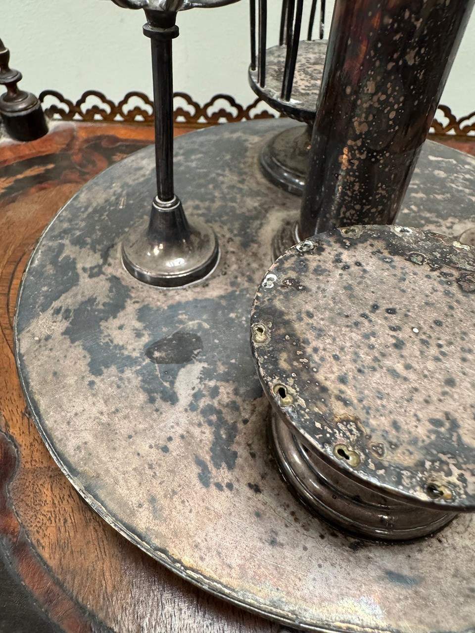 The silver has largely blackened over making for a very striking finish.