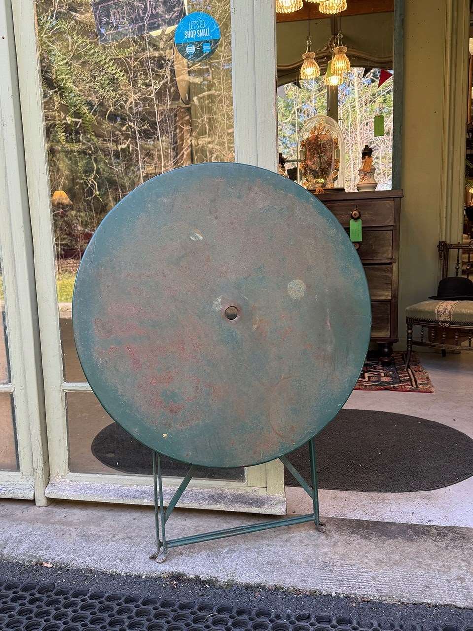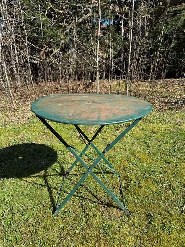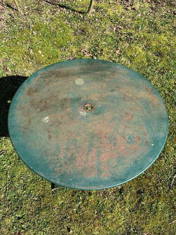 Classic French garden table painted in a lovely green shade.
