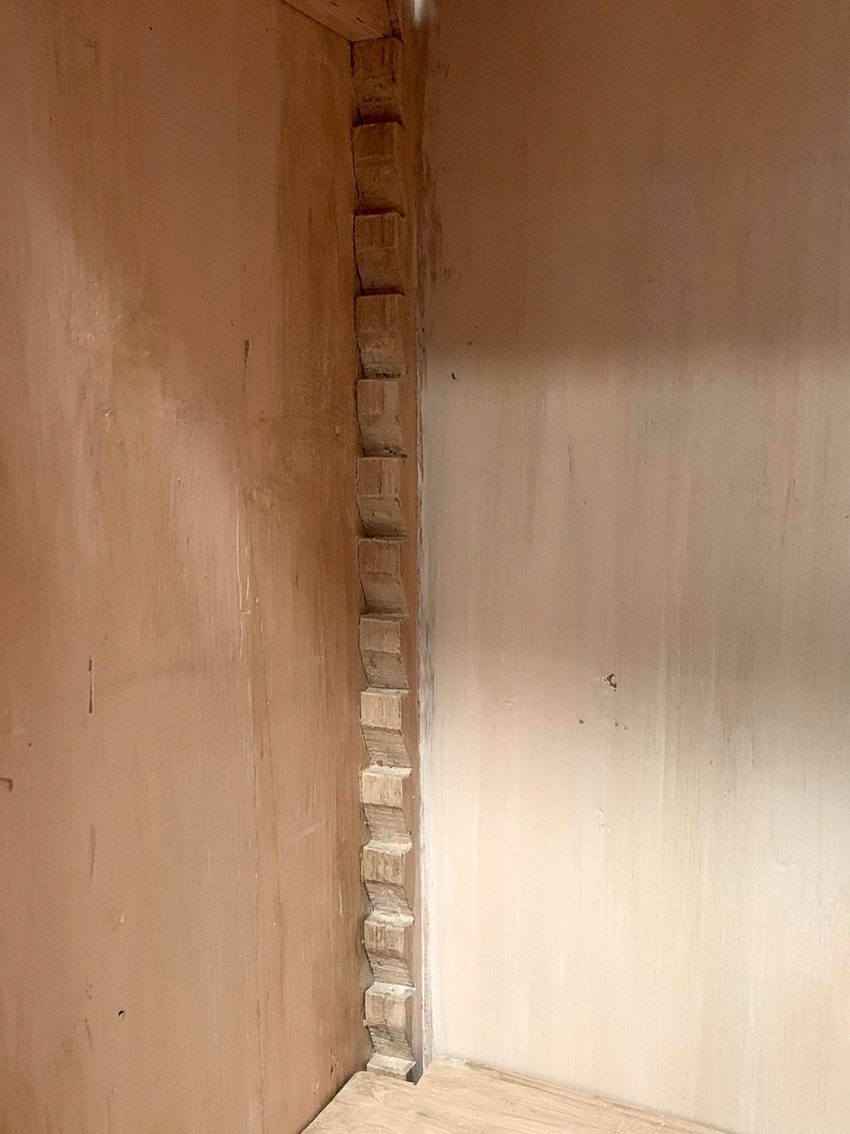 Inside is finished in a contrasting pink coloured paint and there are 3 shelves which can be moved as required.