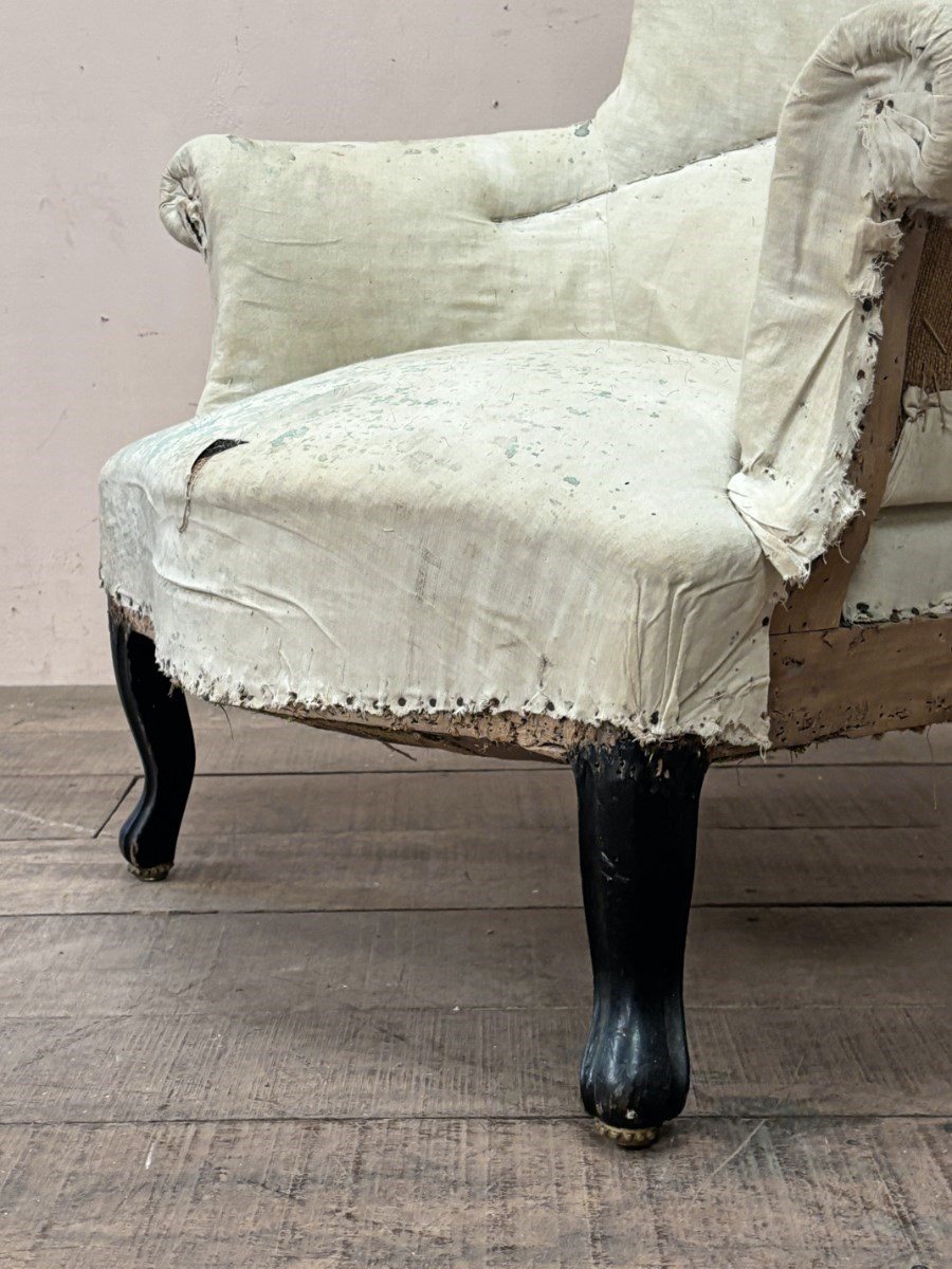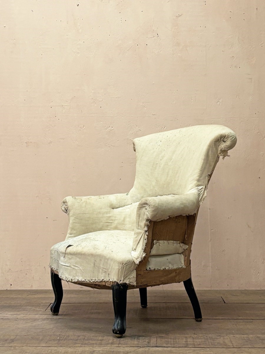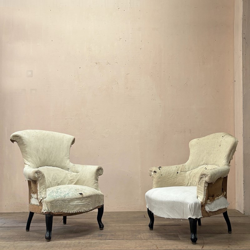 Hard to find ‘pair’ of armchairs, possibly made as a ‘his and hers’, definitely by the same frame maker and upholsterer, (the frame quality on these chairs is noteworthy).