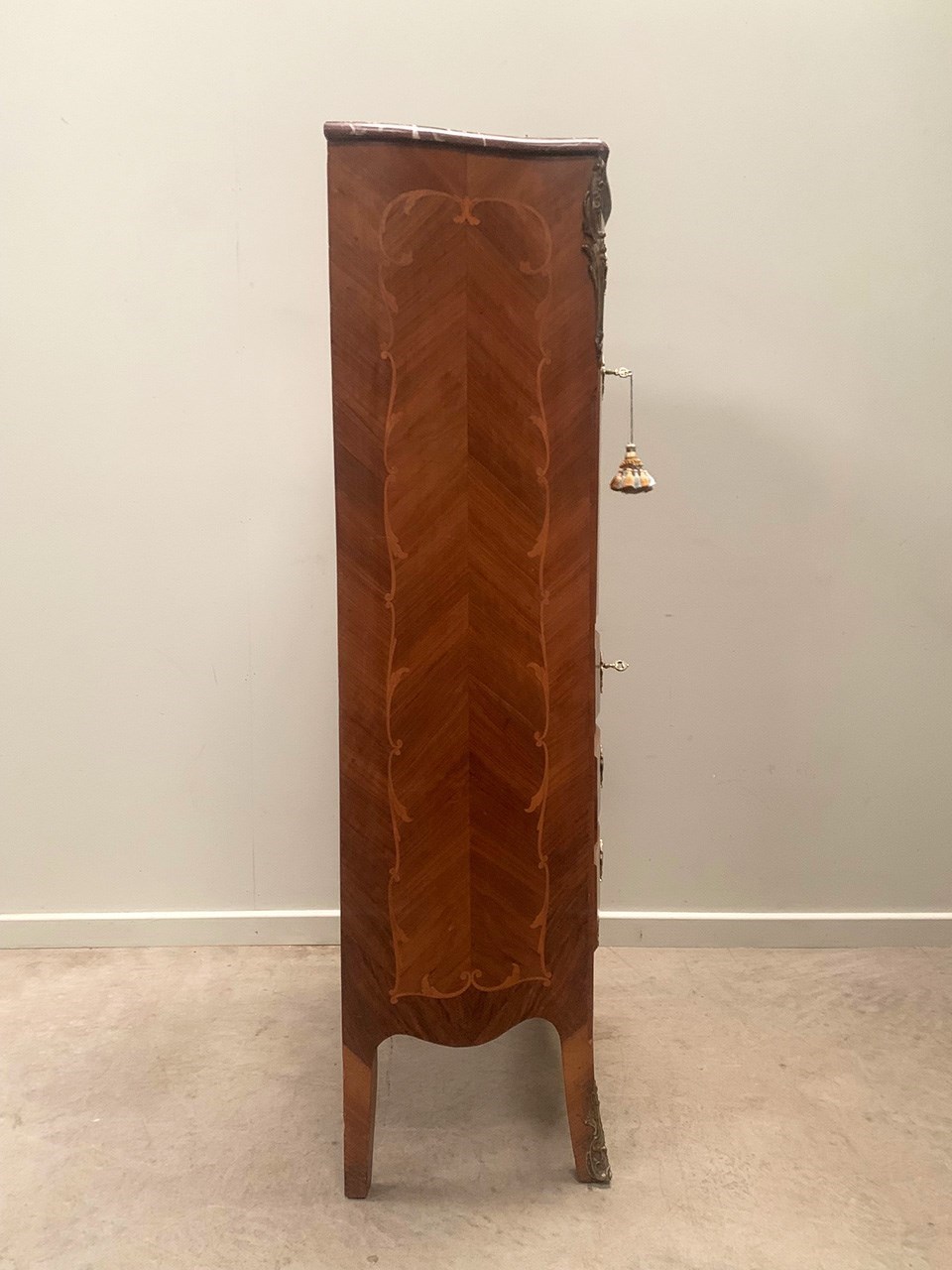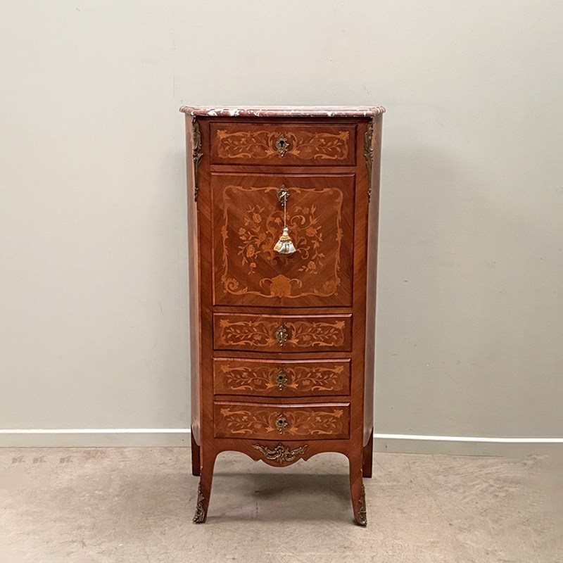 An elegant lady's secretaire with ornate marquetry to the front and sides.