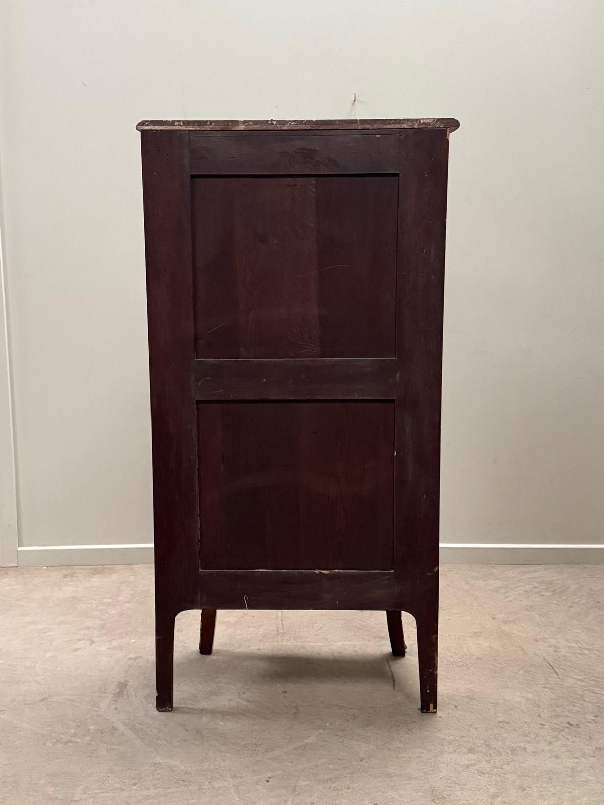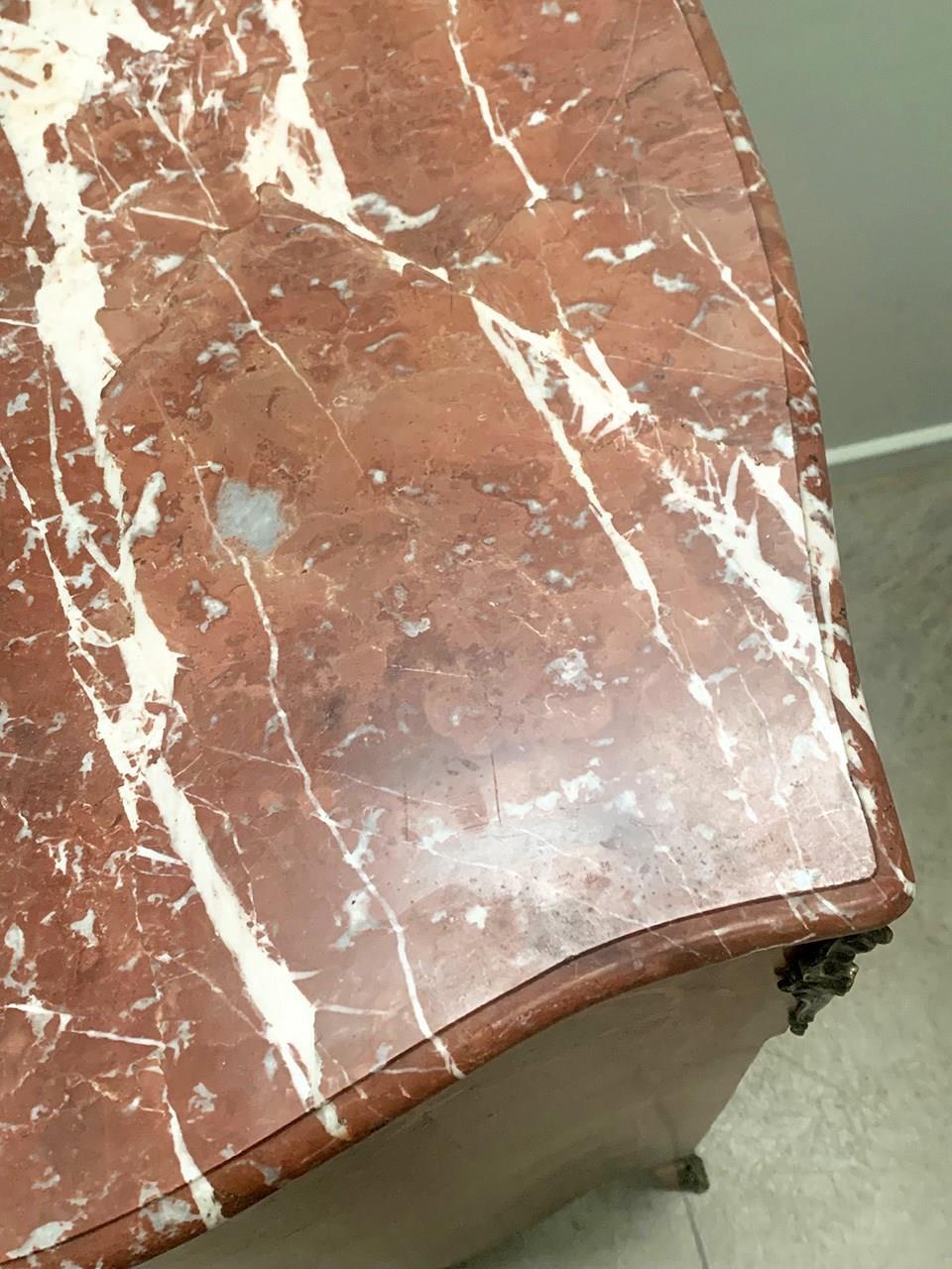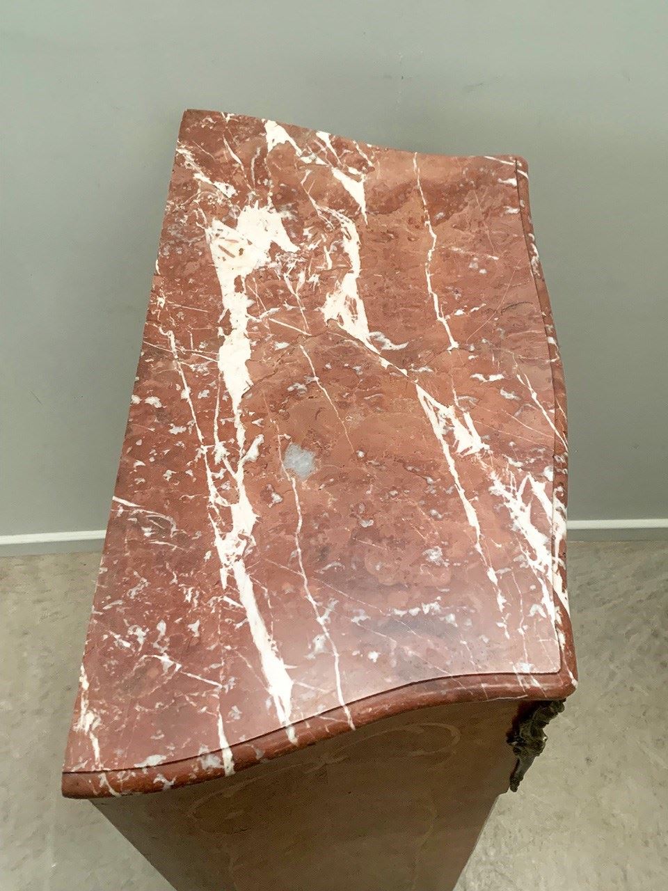 With a lightly curved red and white veined marble top.