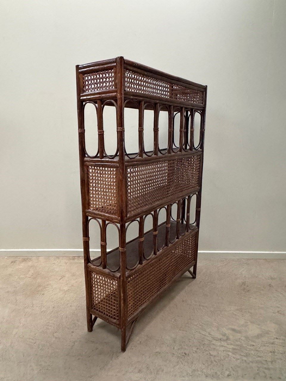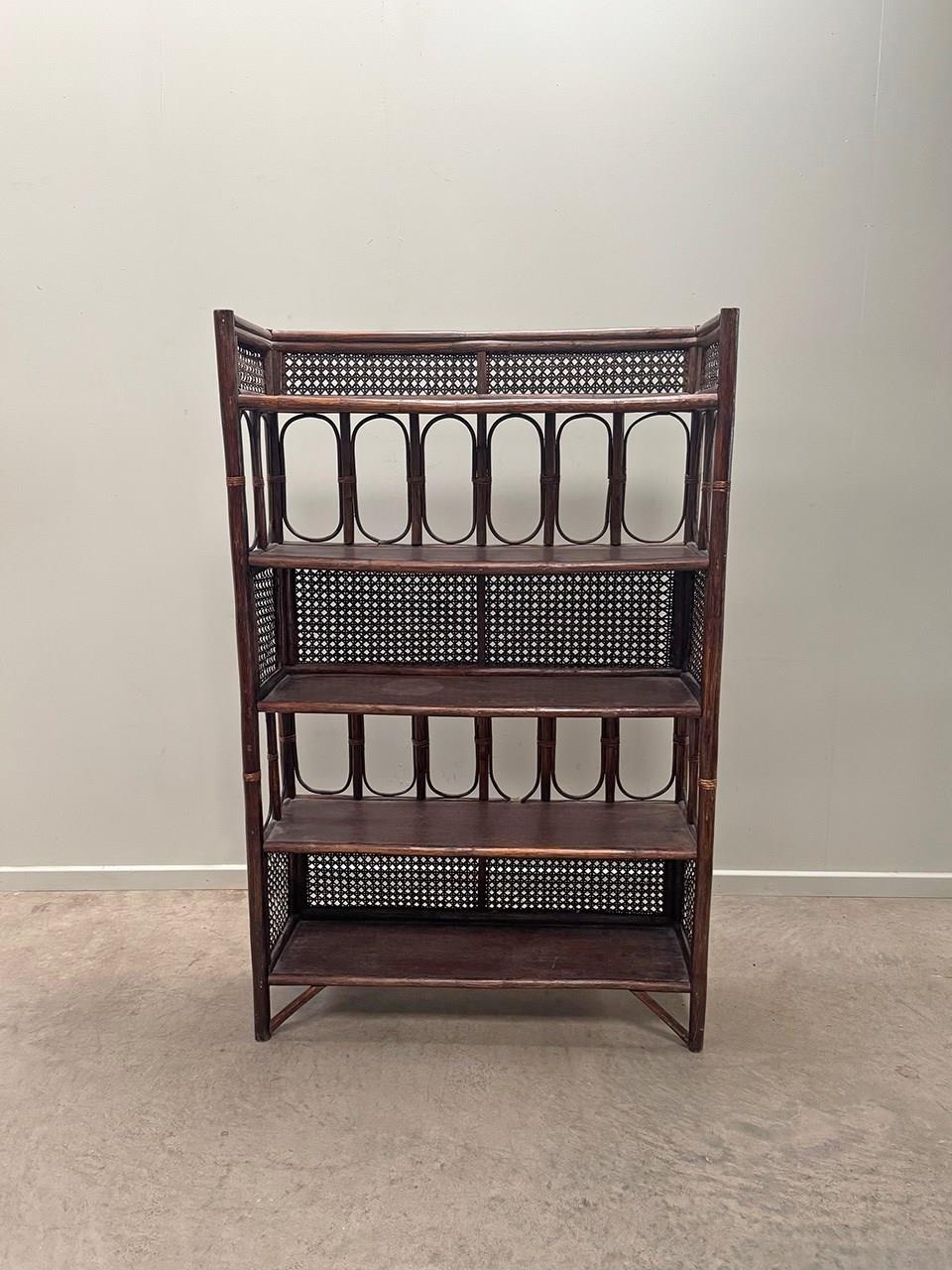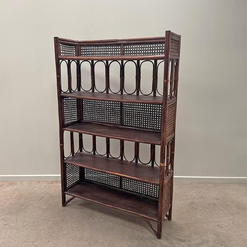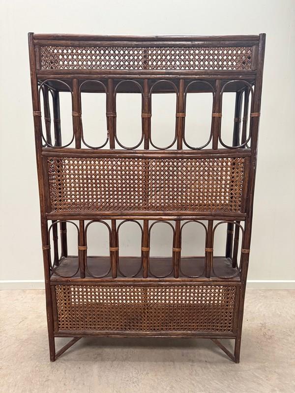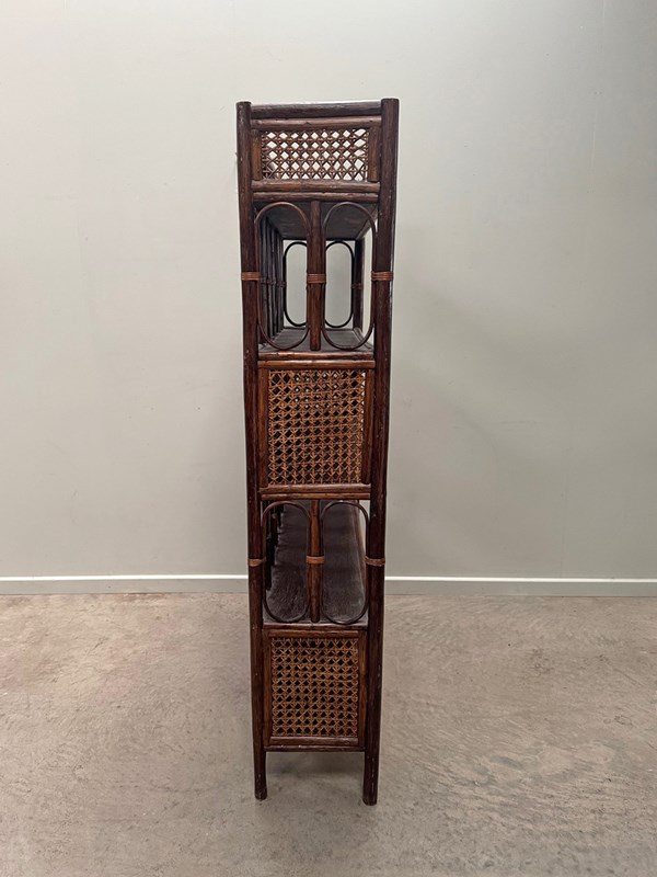 An imposing and sturdy mid 20th century caned unit with five shelves.