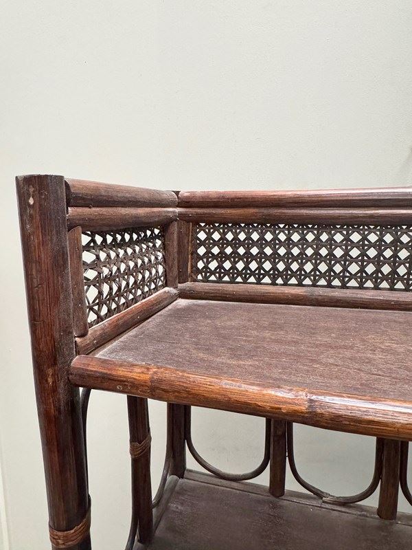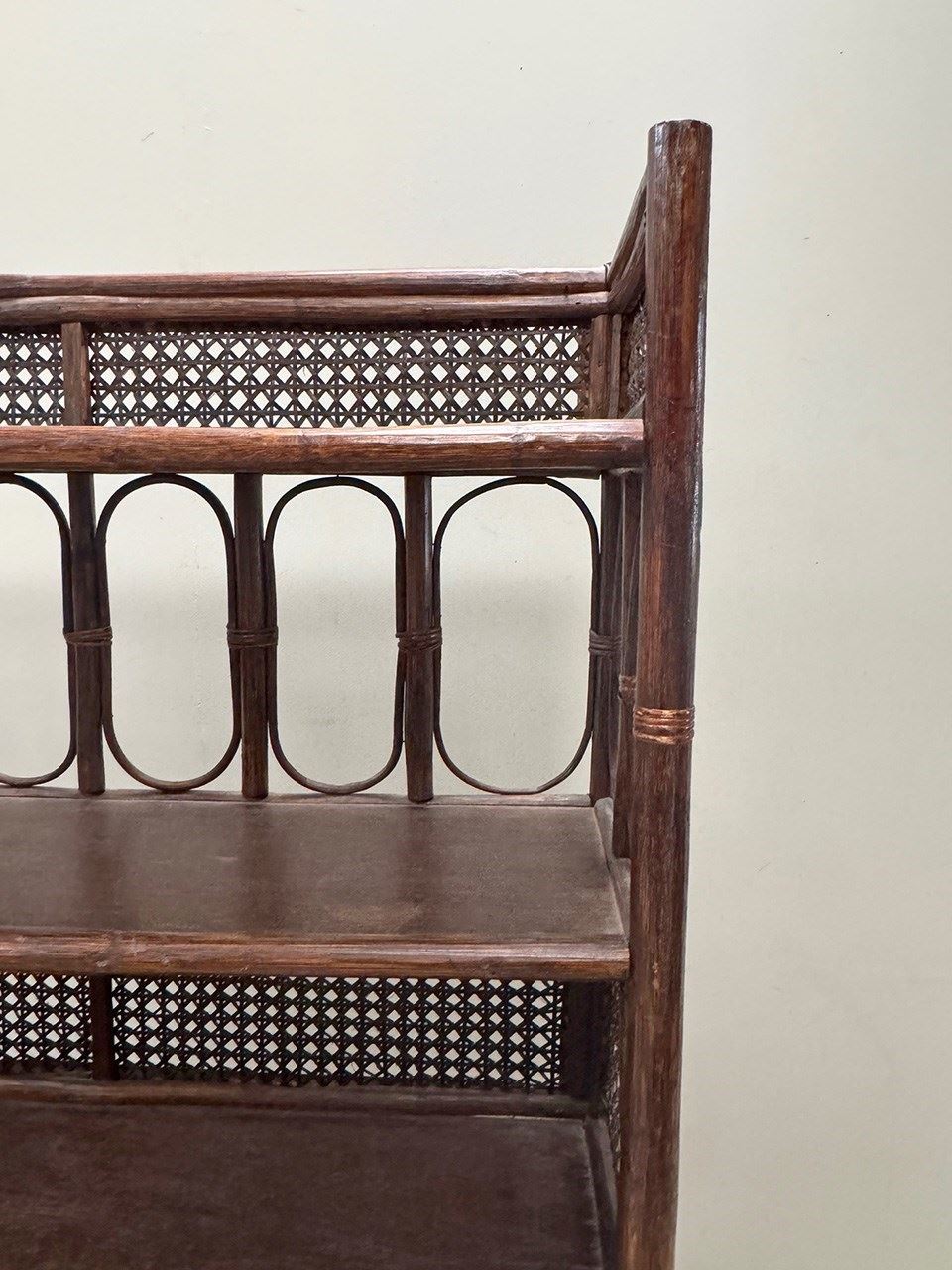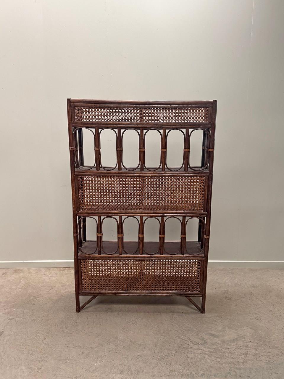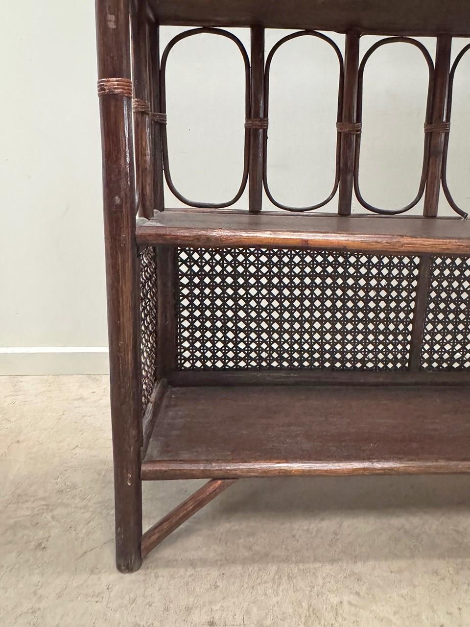 An imposing and sturdy mid 20th century caned unit with five shelves.