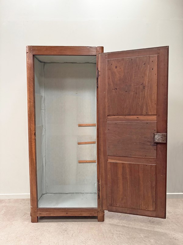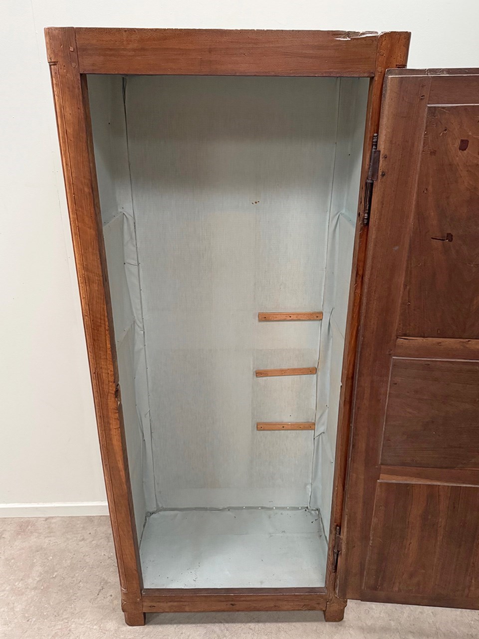This cupboard has a large single door, and can accommodate 3 large shelves; we have one of the original shelves and can make new shelves for an additional fee. We can also fix an internal hanging rail, should you wish.