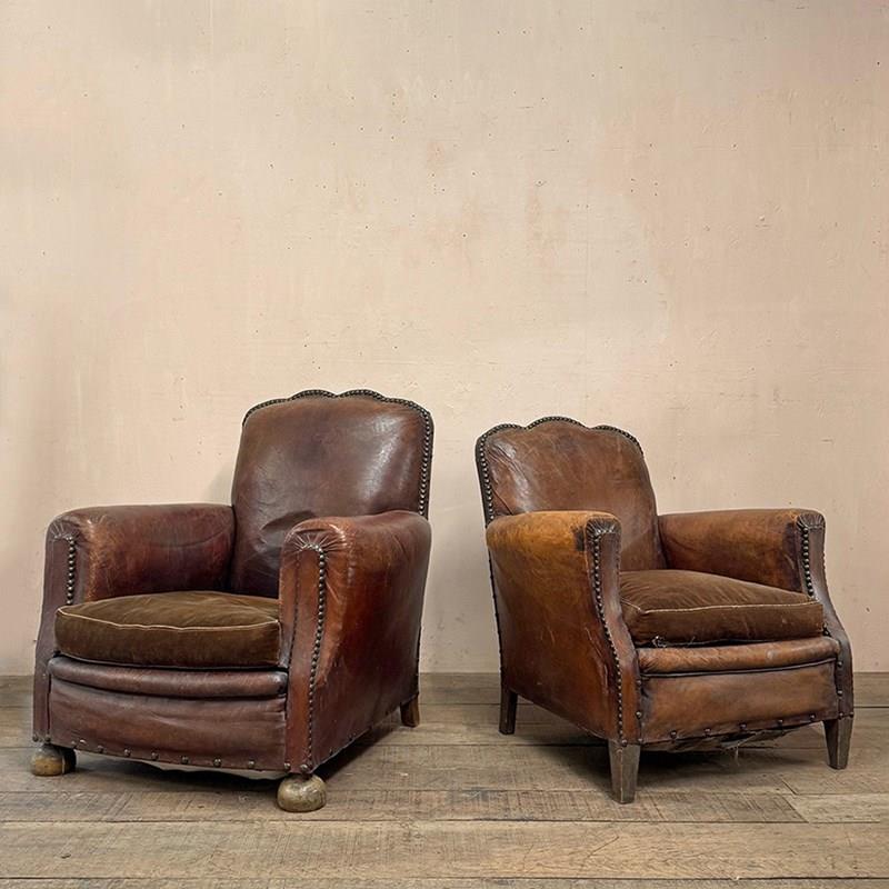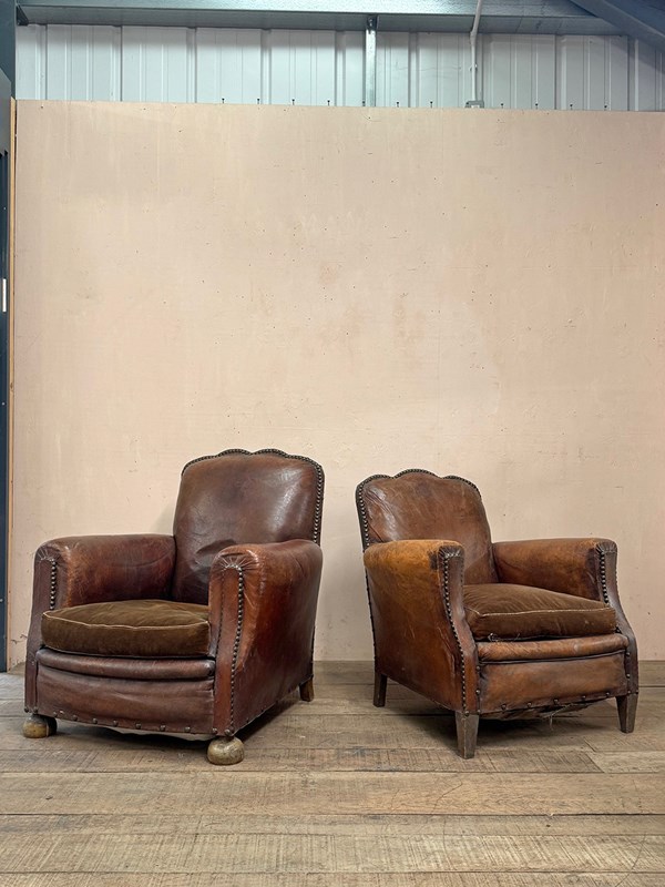 Leather Studded Club Armchairs