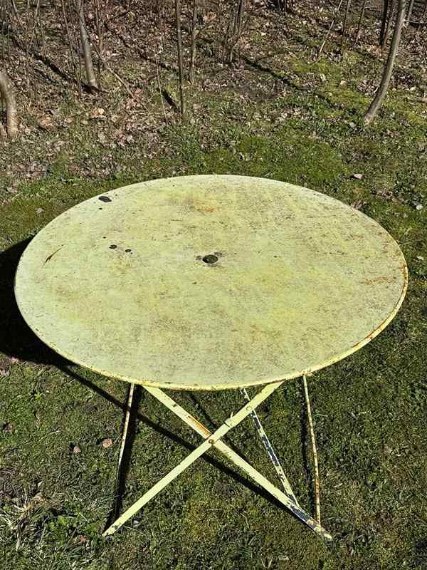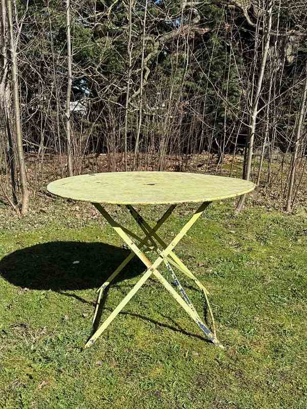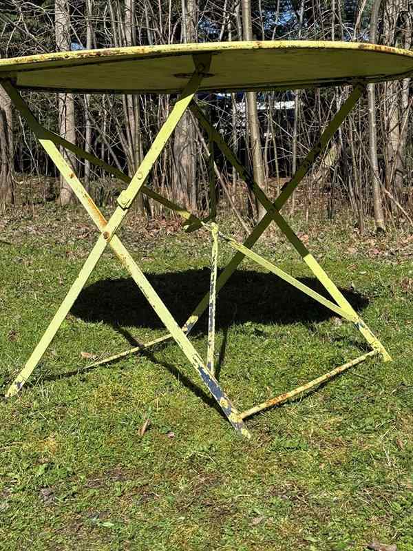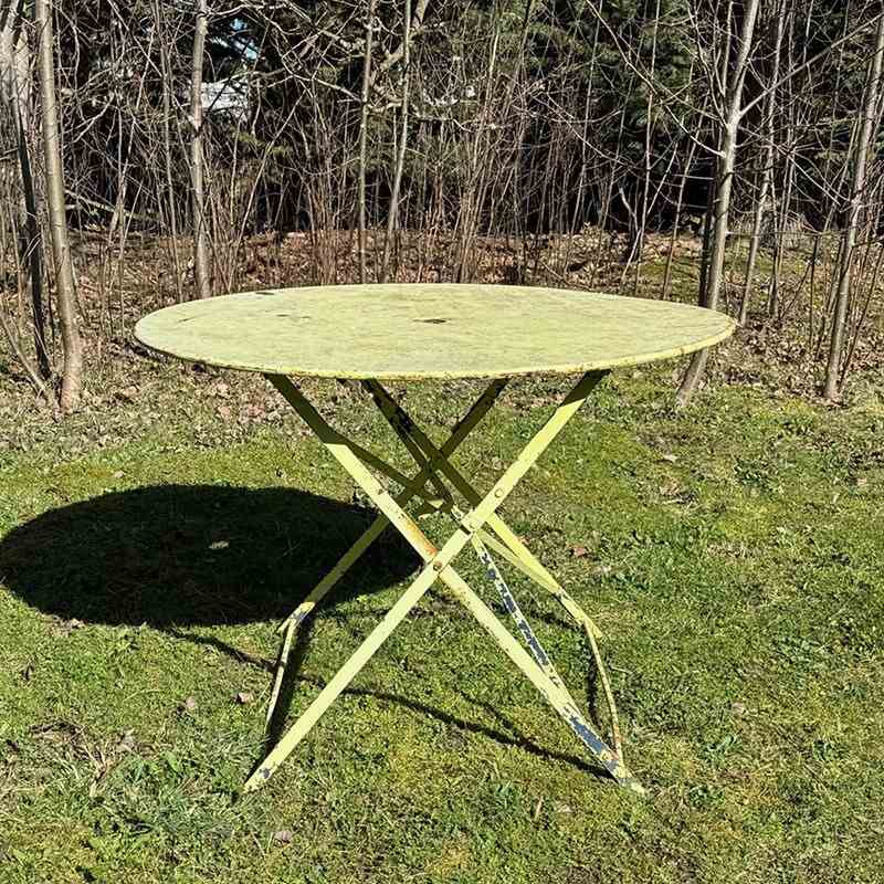 Circa 1920's heavy folding garden table of a generous size.