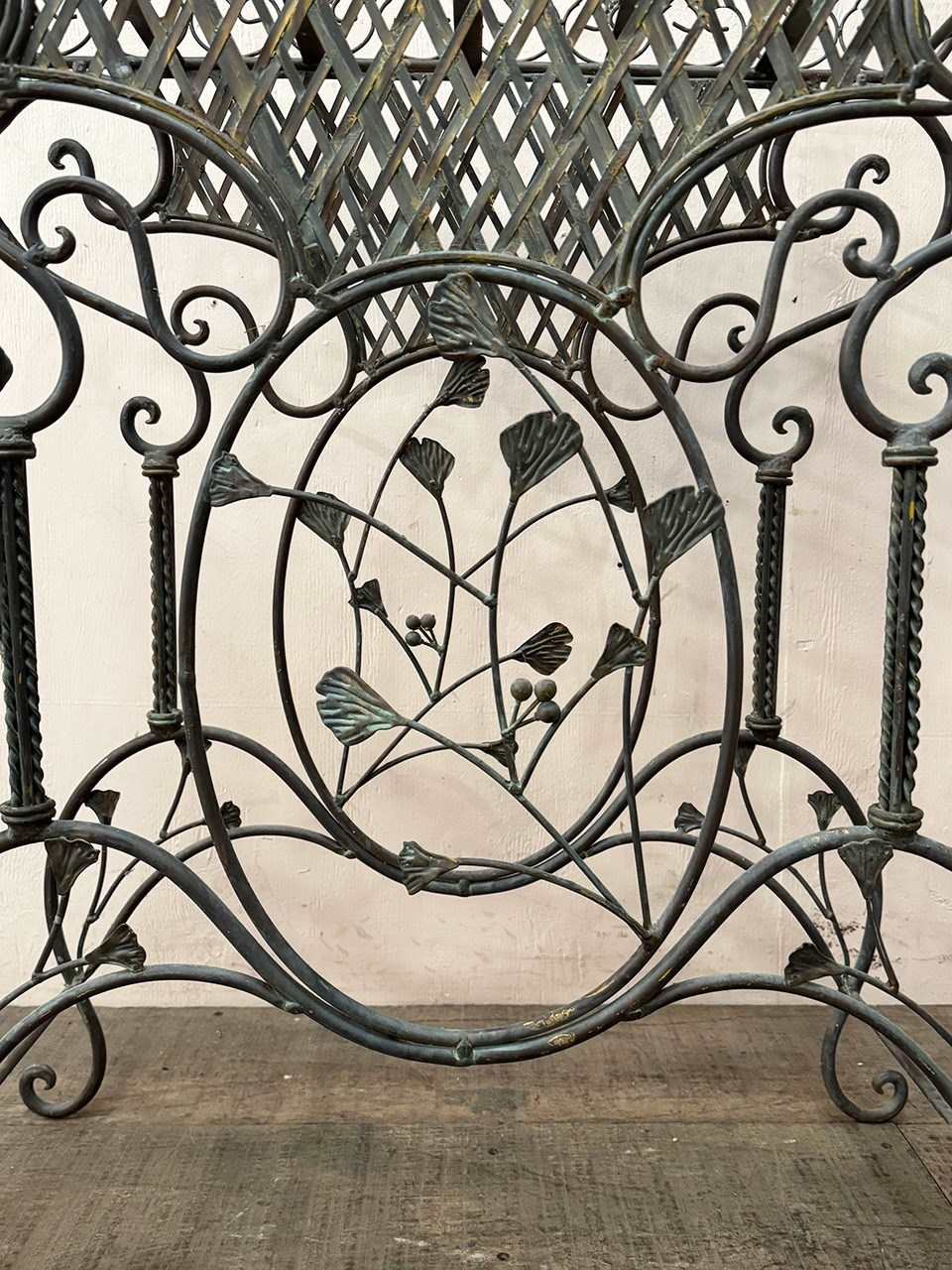 Beautiful 1930's/40's metalwork planter with curved lines, lattice decorations and a stylised oval leaf feature.