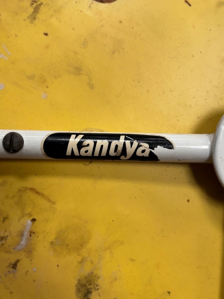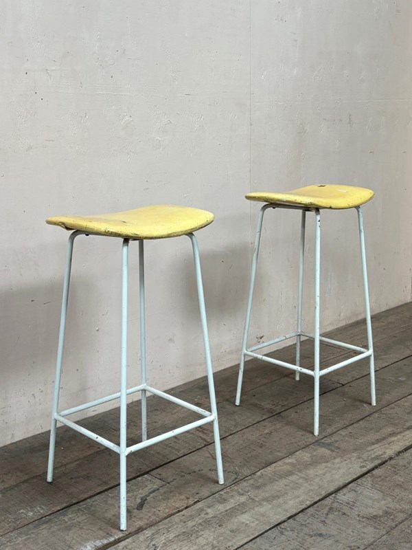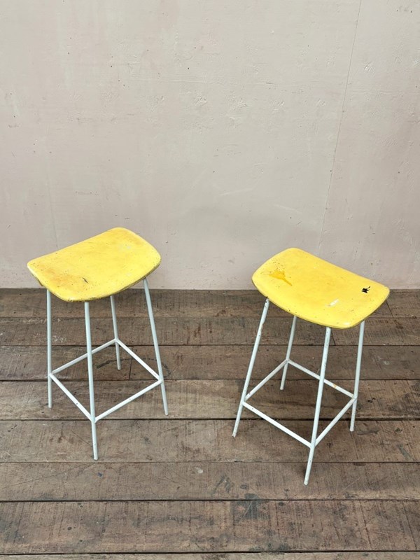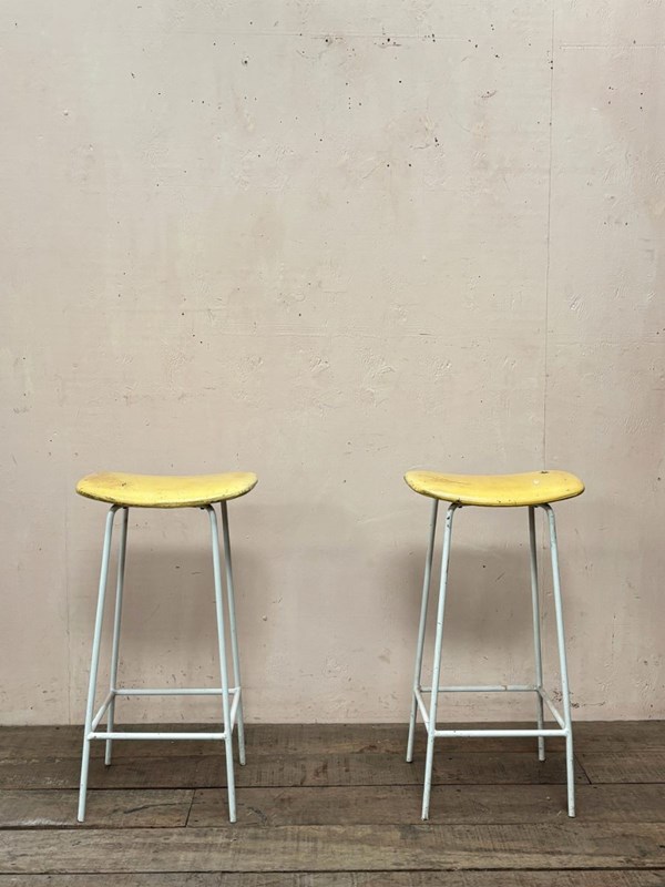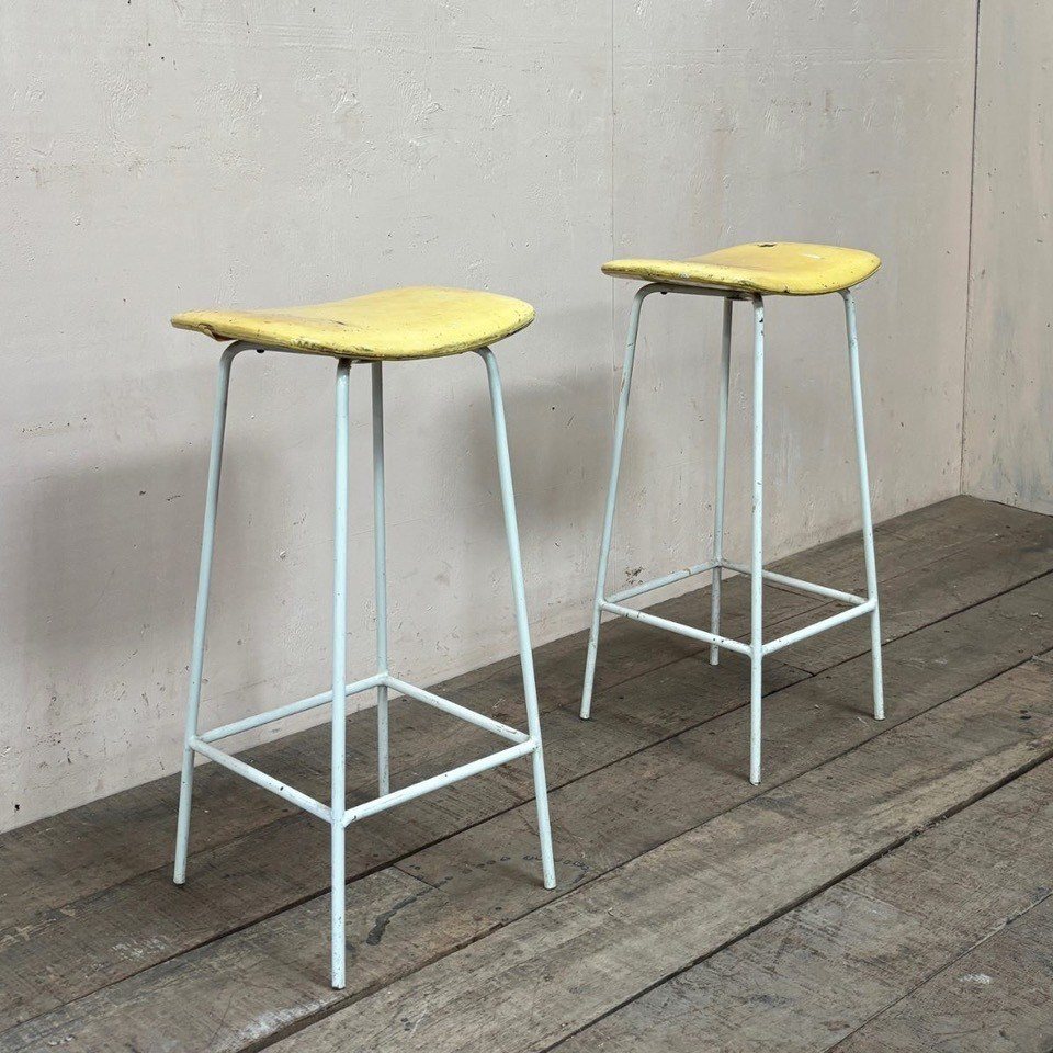 Pair of 1950’s ‘Kandya’ stools retaining their original yellow vinyl upholstery.