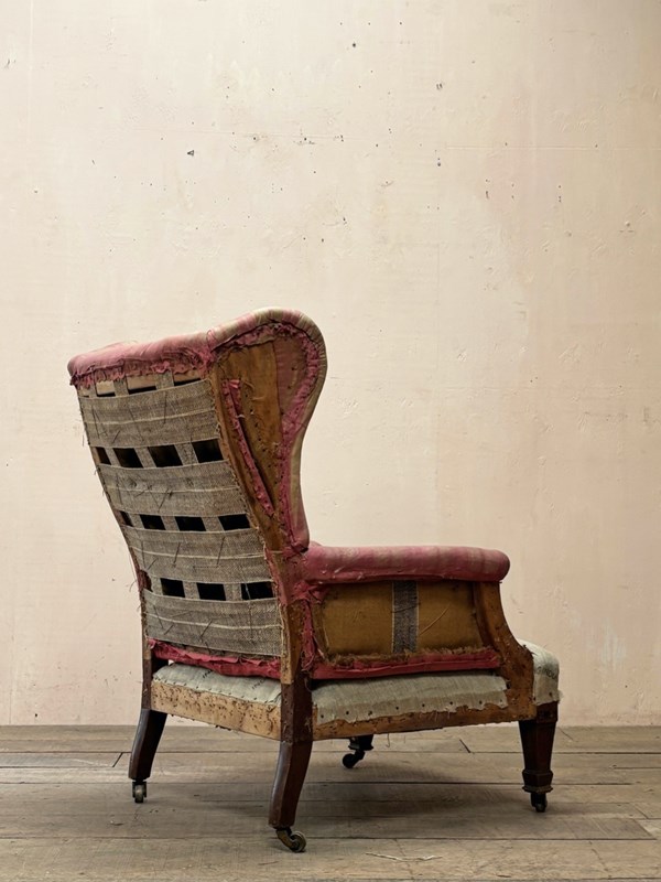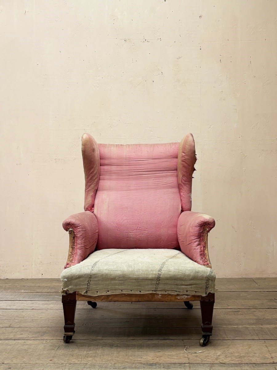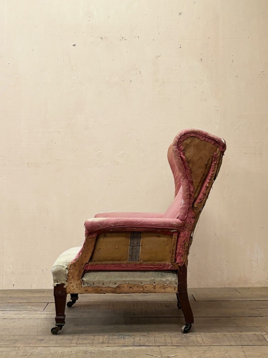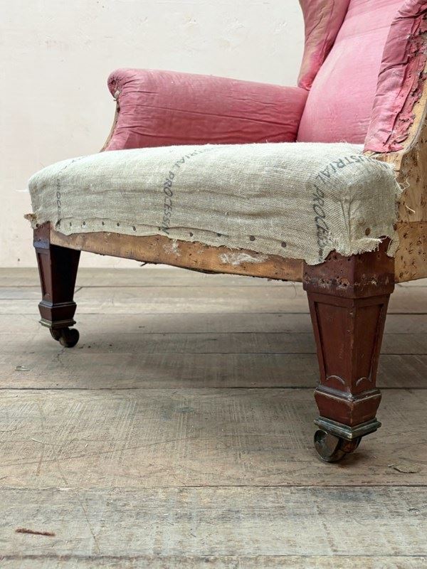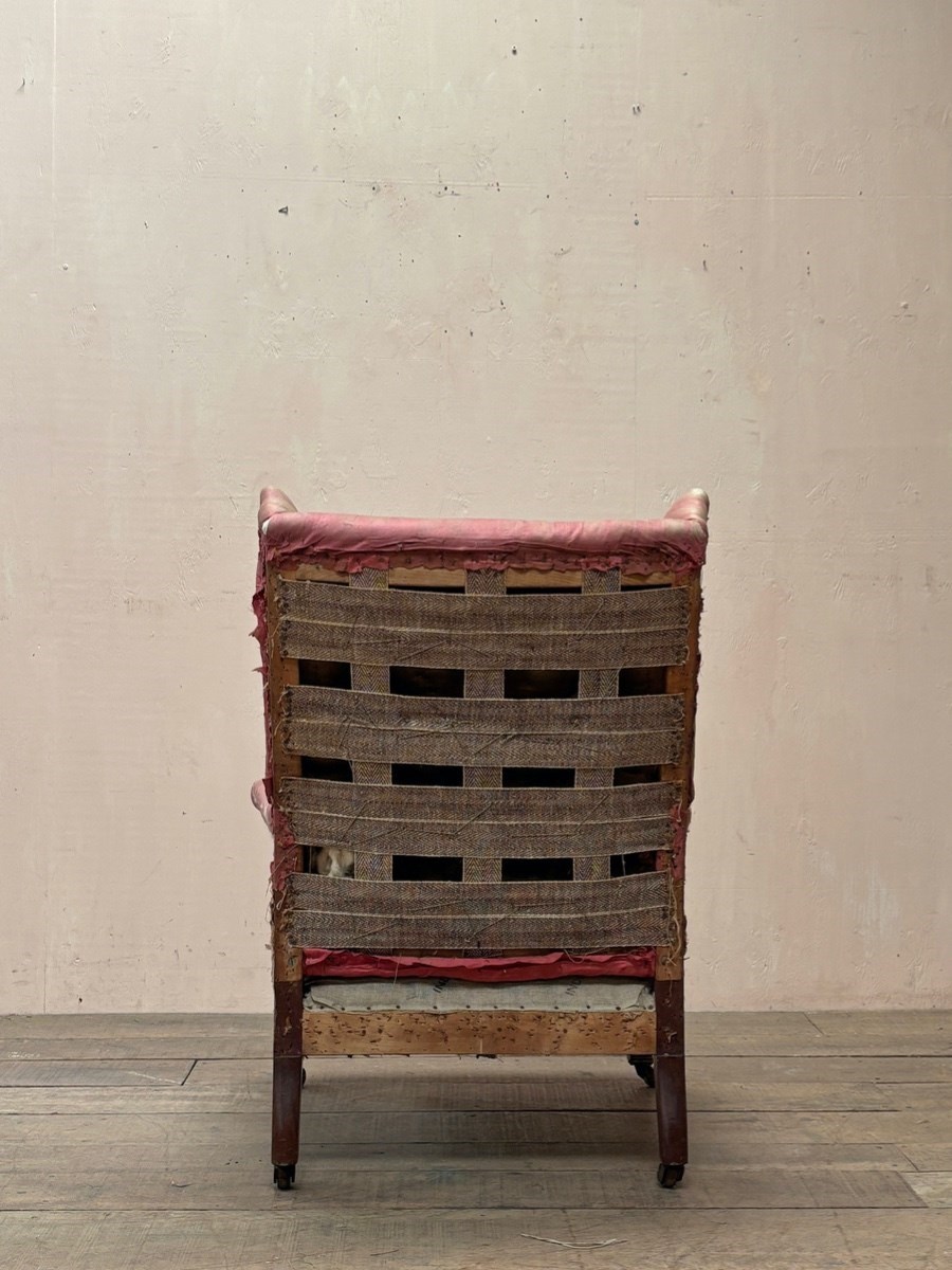 Fine quality late 19th/early 20th century armchair by Morison & Co of Edinburgh, standing on mahogany legs with original castors.