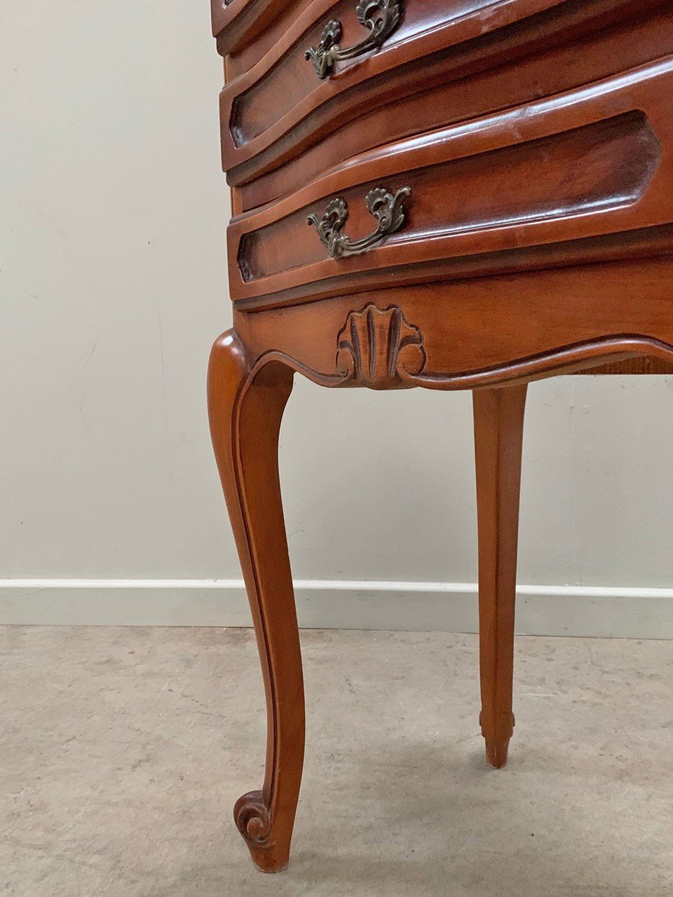 They sit on cabriole legs with scrolled feet. Early 20th century, fruitwood.