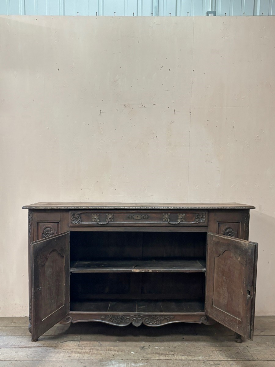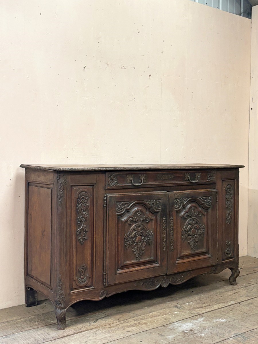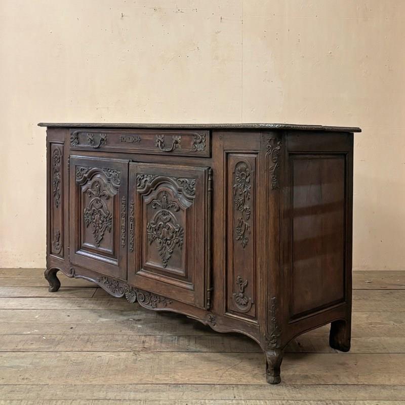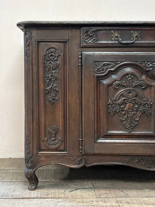 Great quality and condition late 18th century solid oak carved cupboard with drawer, standing on short cabriole legs.