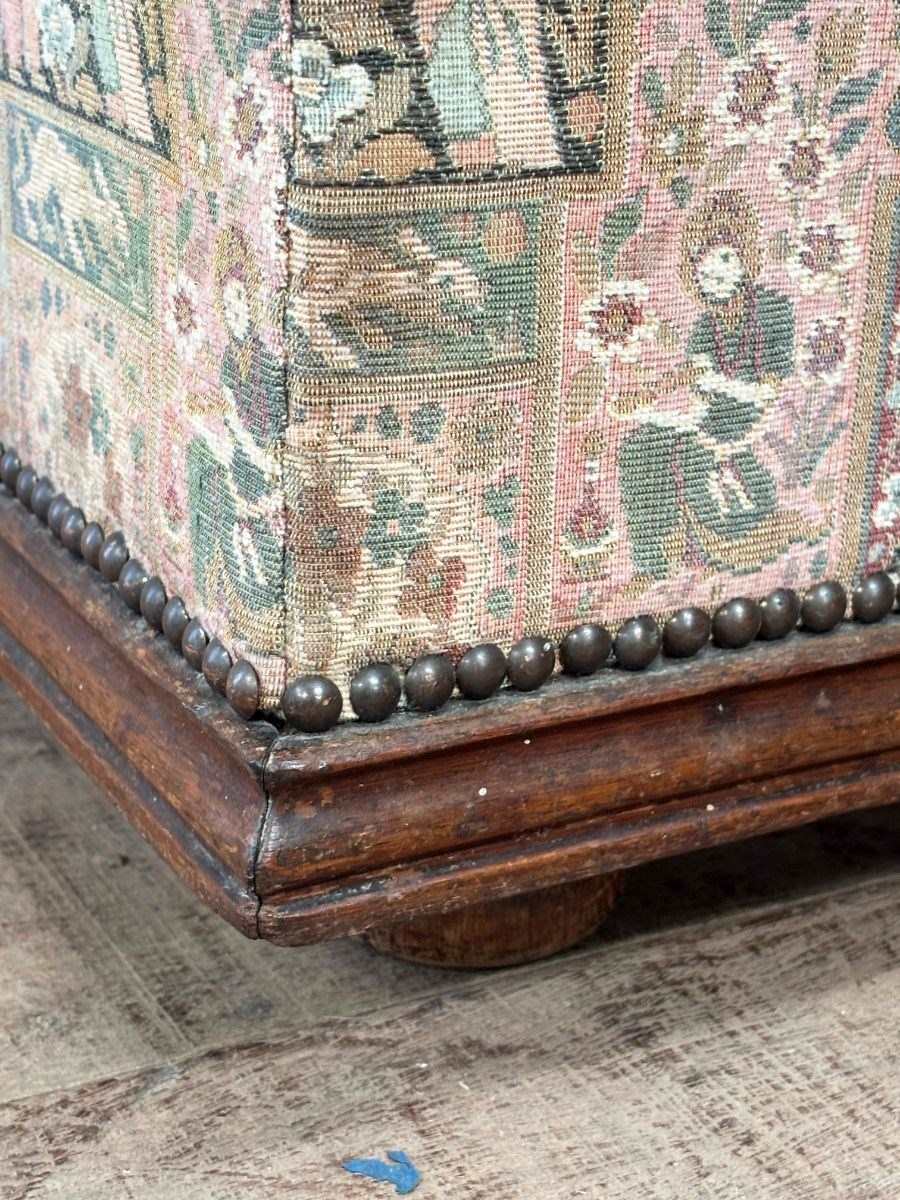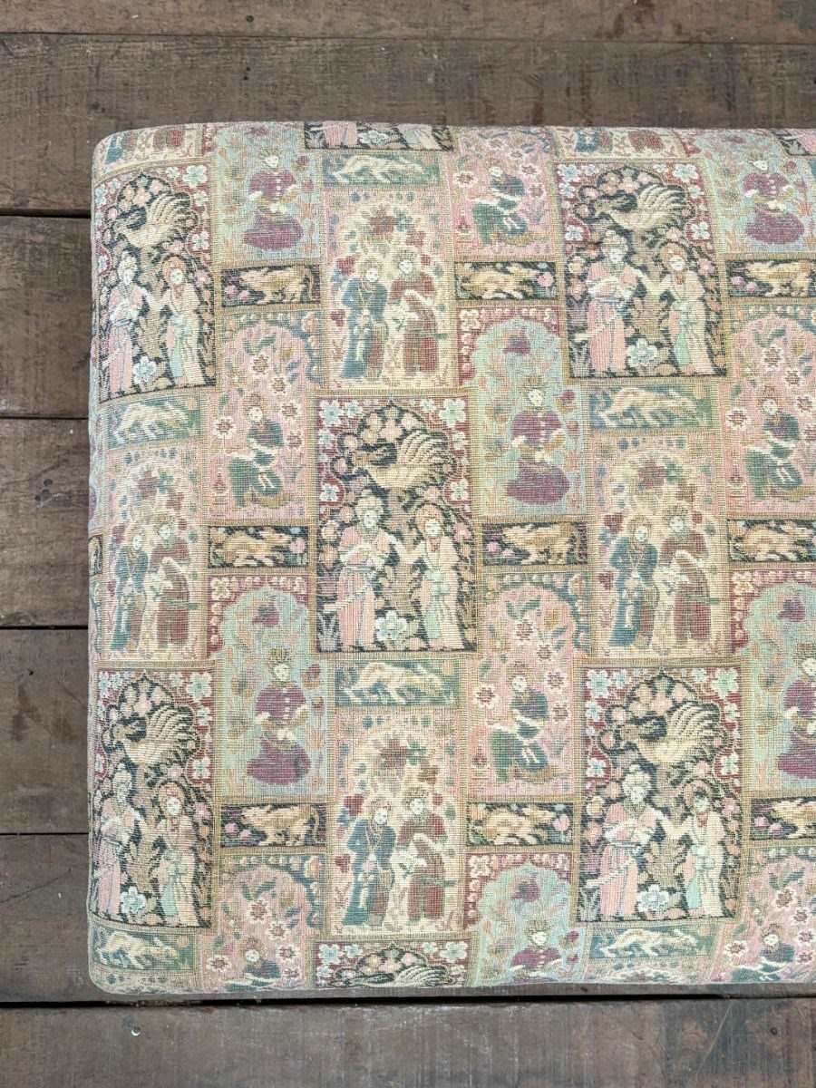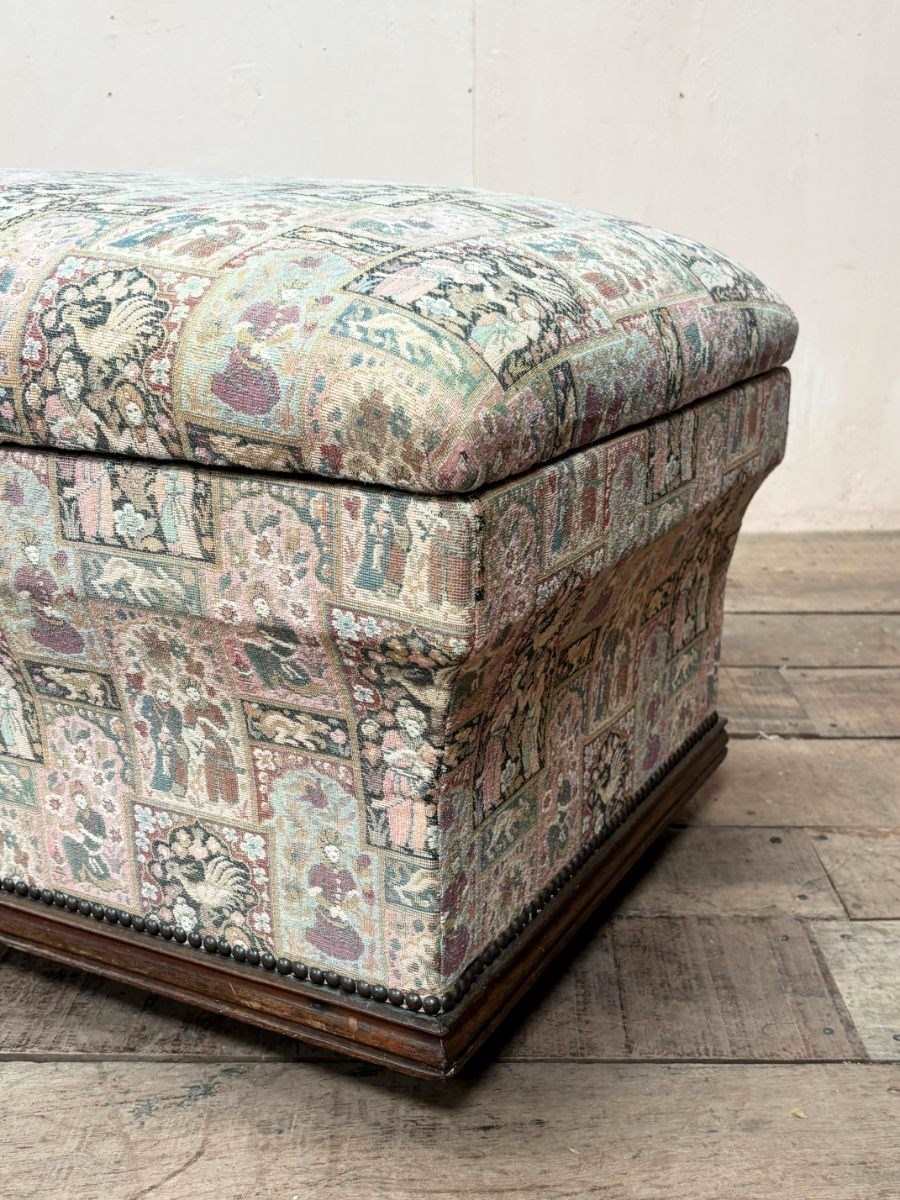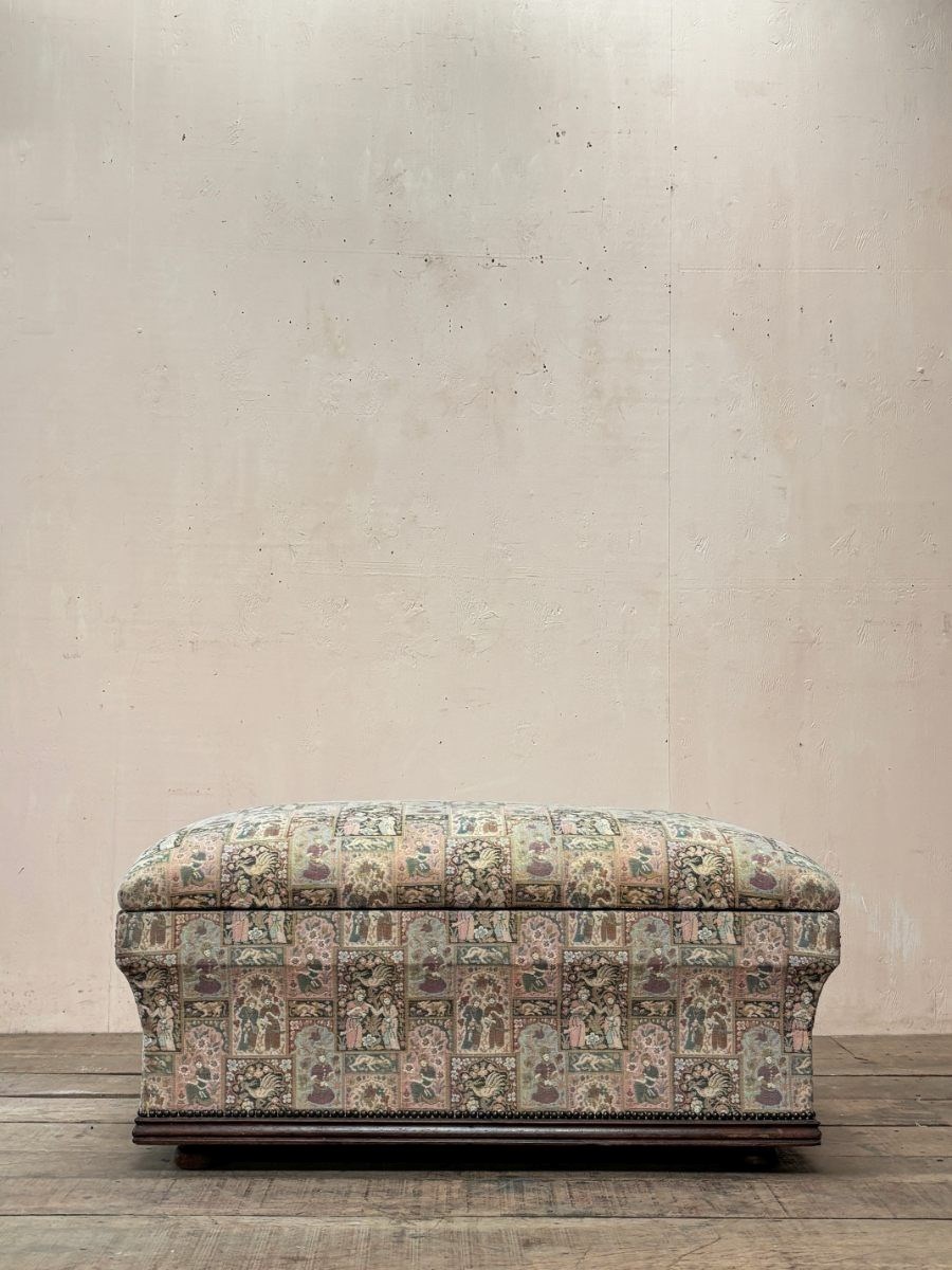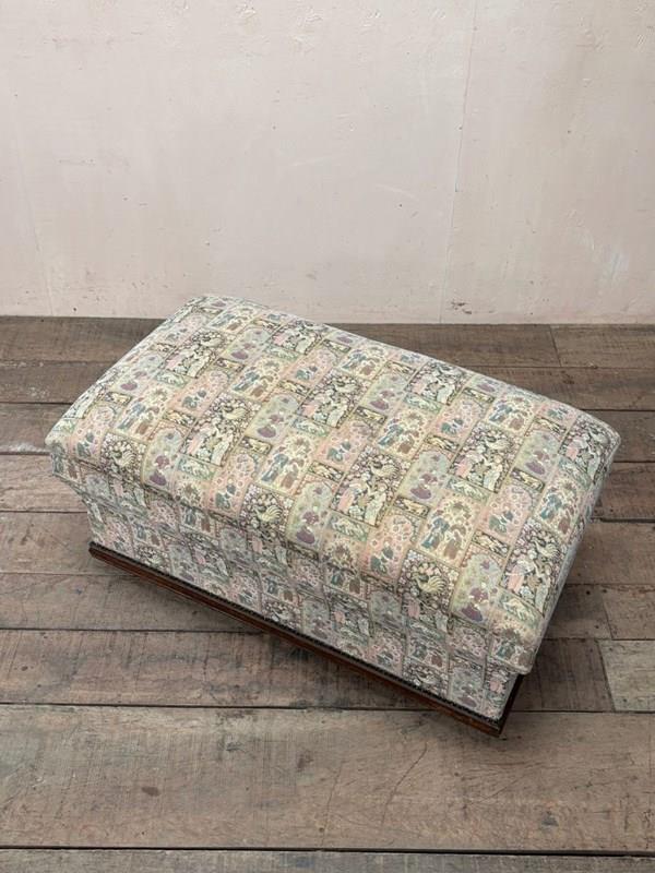 Large early 20th century ottoman with moulded oak detail to the bottom edge.