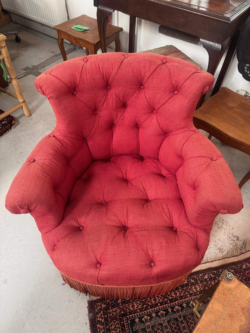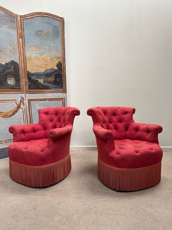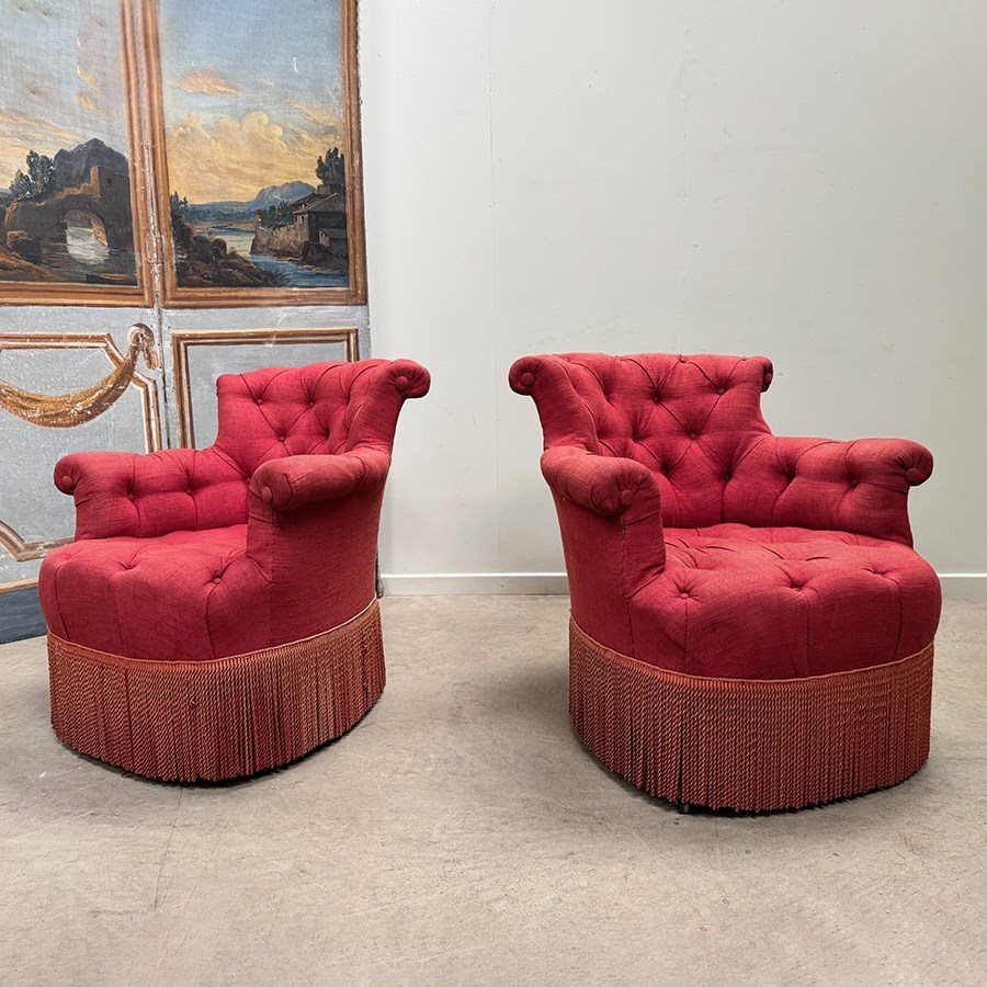 Pair Of Deep Buttoned Chapeau De Gendarme Armchairs