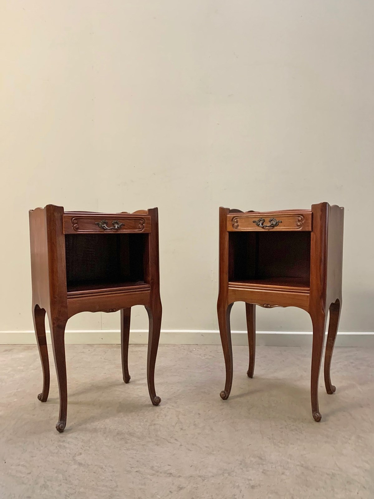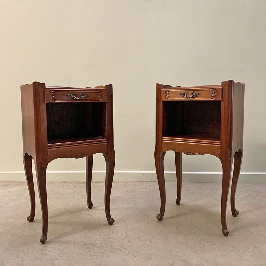Each has a single drawer with brass pull handle, and an open storage area at the front.