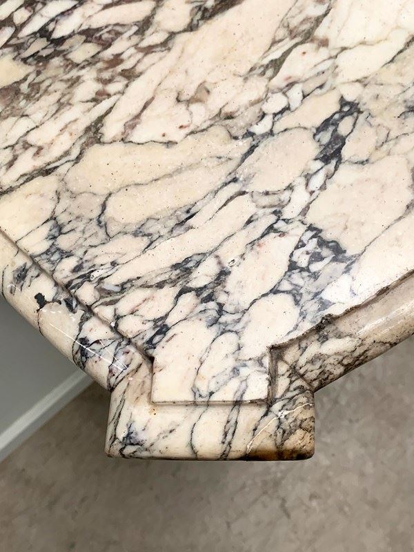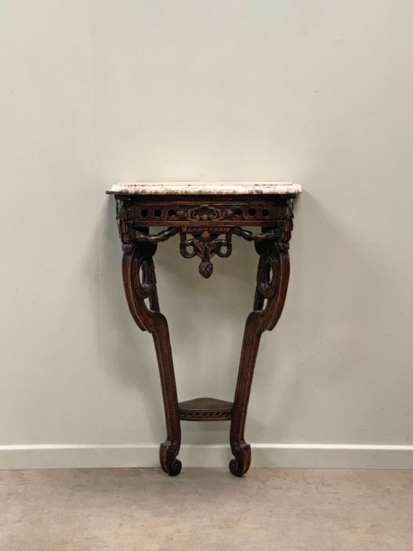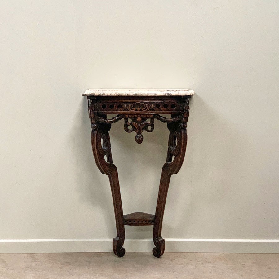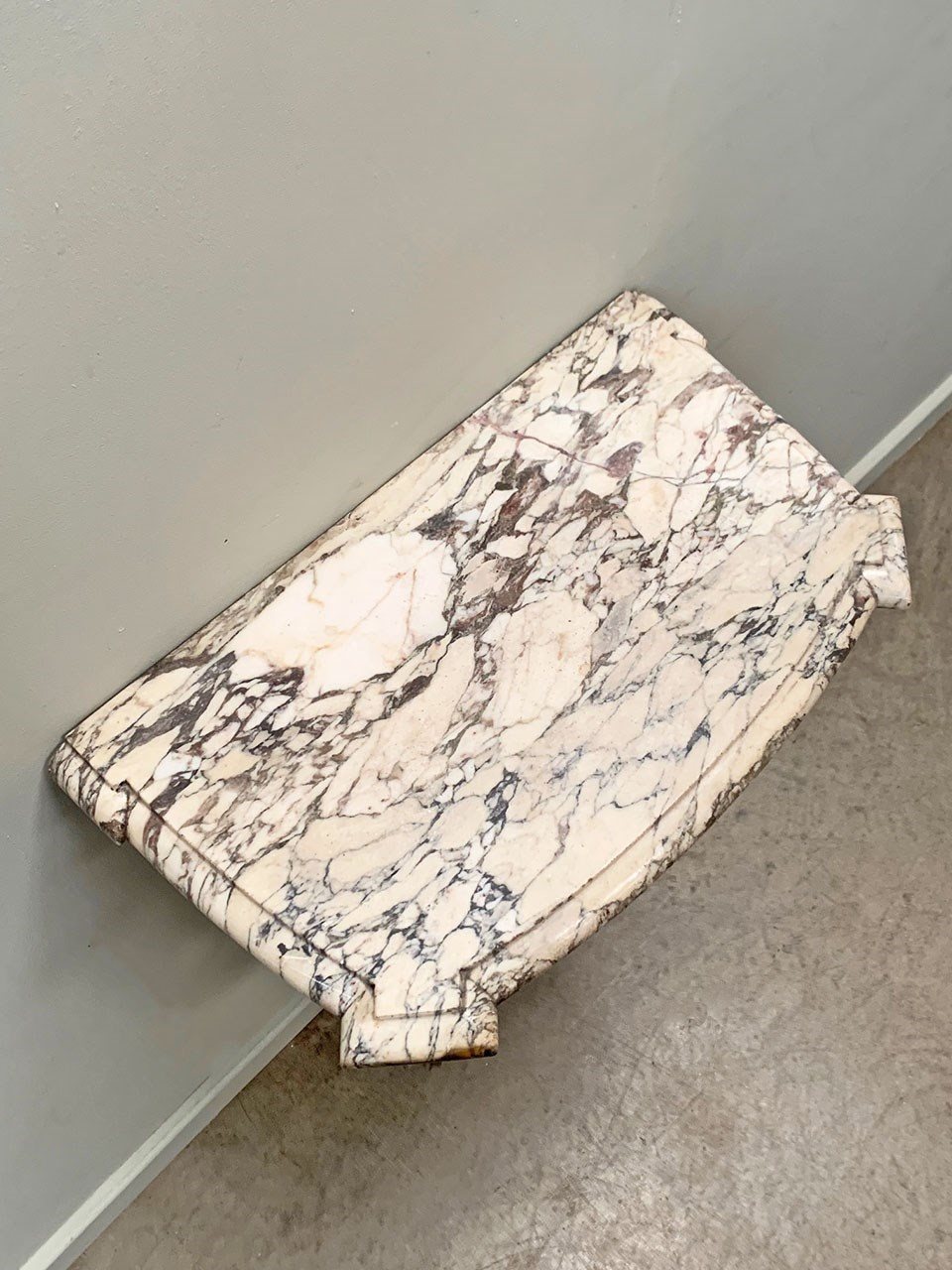 A pretty and small late 1800s white and grey marble top console table, from a chateau in the Loire Valley.