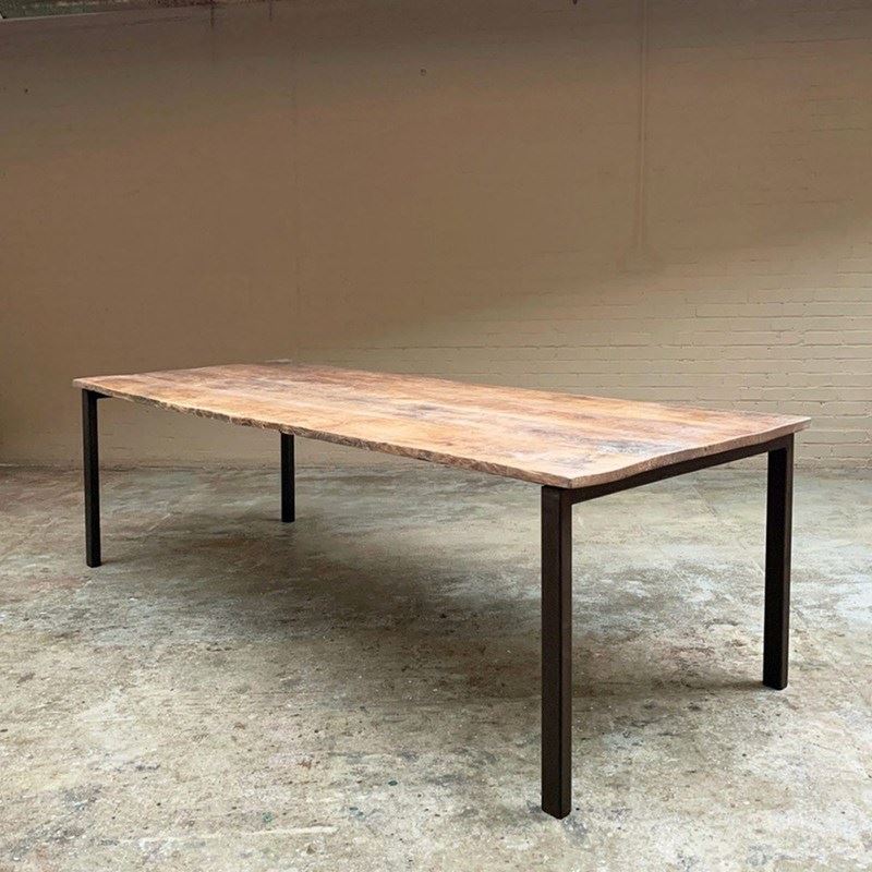 Shown here on a simple steel base which provides maximum leg room, whilst not competing with the ancient top.