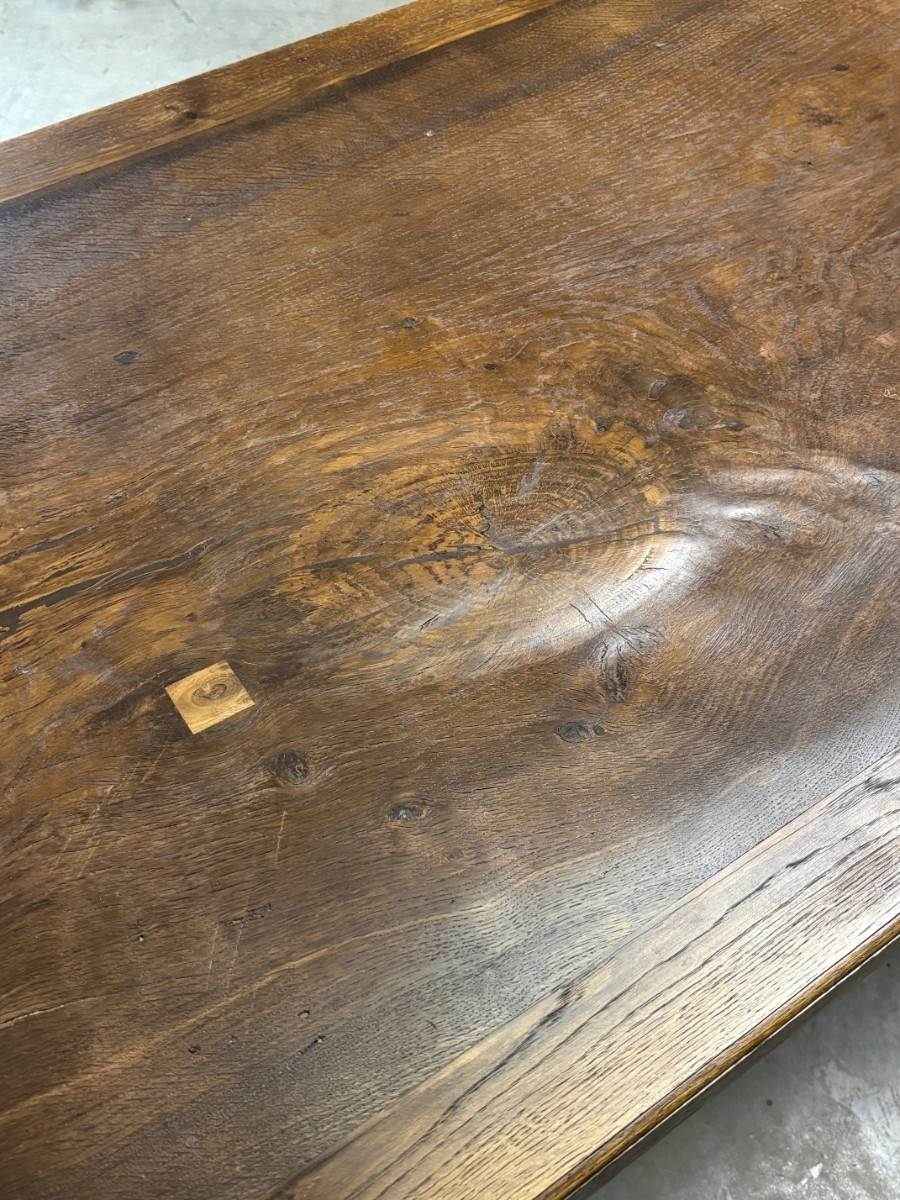 Bespoke table made in-house using entirely reclaimed oak, featuring an amazing, single board of oak for the top.