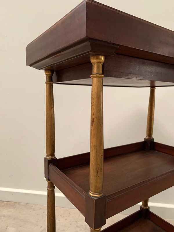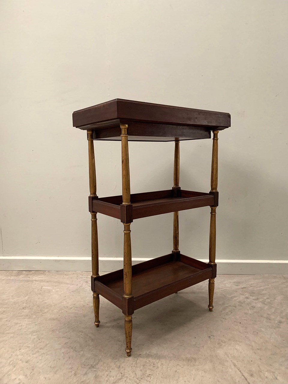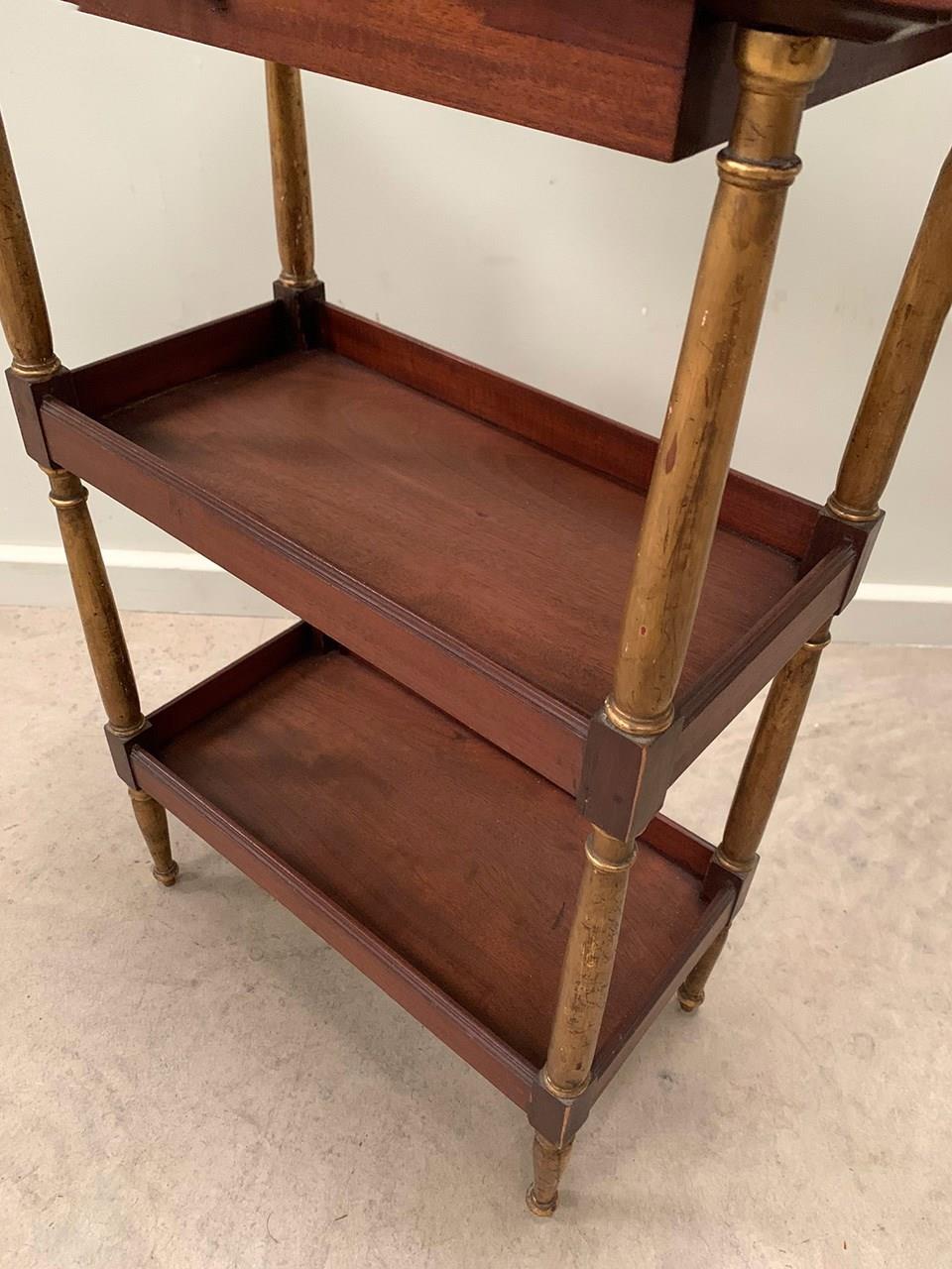 Compact 19th century tiered console table with a single top drawer and galleried shelves.