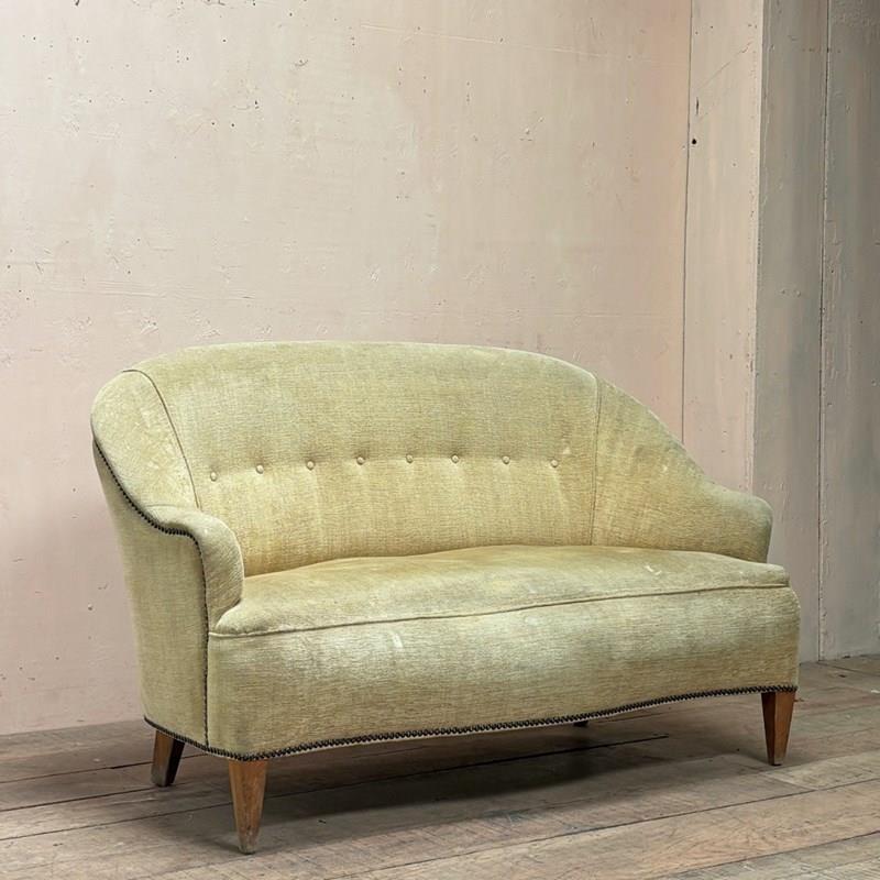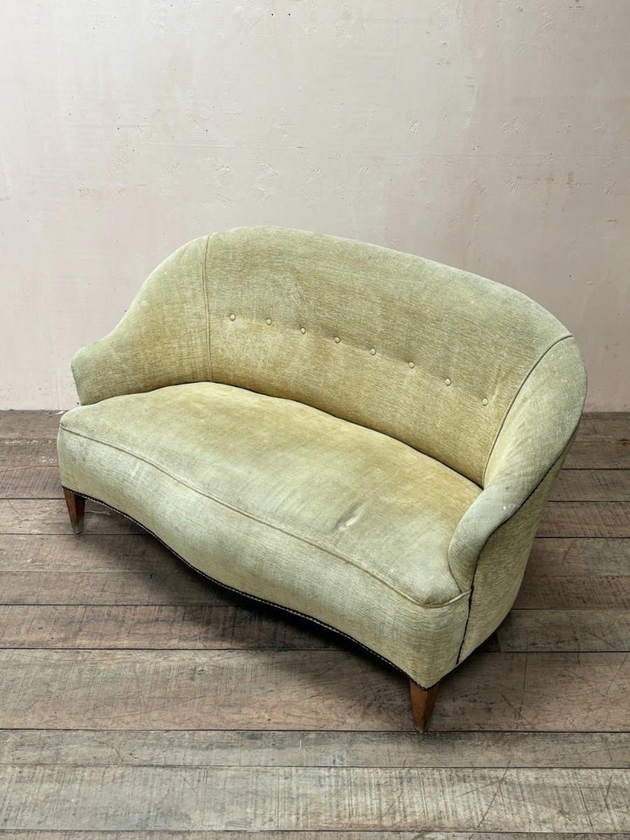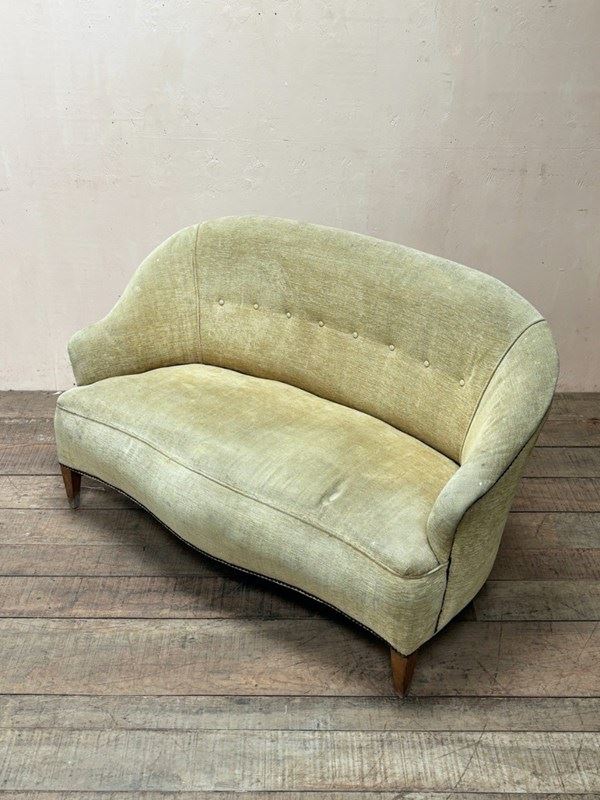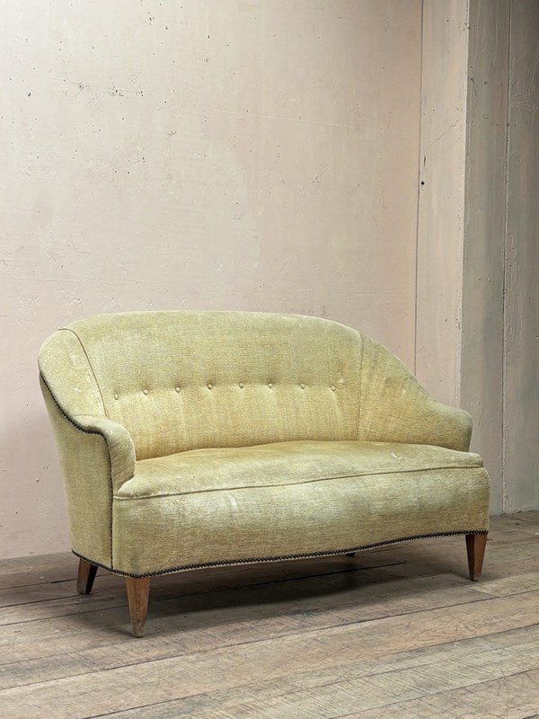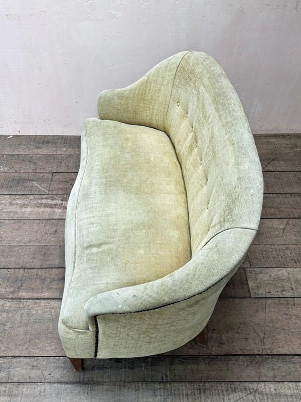 Good quality and solidly built German sofa c.1900 with serpentine front and standing on tapered hardwood legs. If re-upholstery is required the additional cost will be £1,560 and 7 meters of fabric will be required. W147cm x H (seat) 47cm / (back) 90cm x D80cm Delivery: please send us an enquiry with your delivery postcode & we shall obtain a quote from our courier for you. This piece is available to view in our York showroom, YO32 9SU.