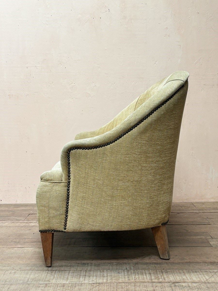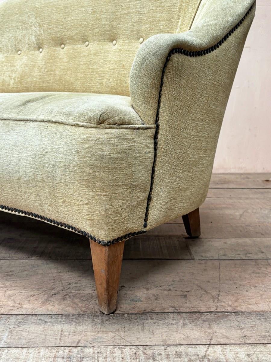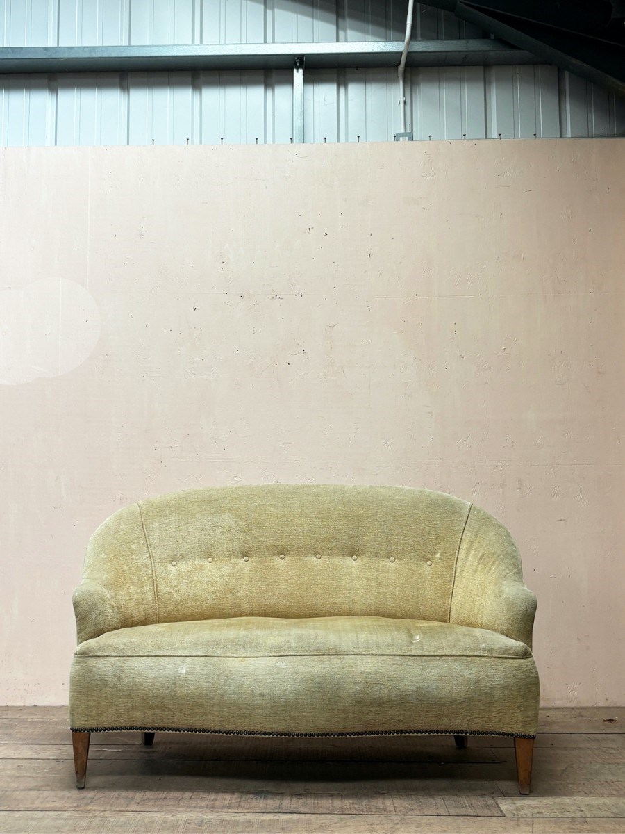 Good quality and solidly built German sofa c.1900 with serpentine front and standing on tapered hardwood legs. If re-upholstery is required the additional cost will be £1,560 and 7 meters of fabric will be required. W147cm x H (seat) 47cm / (back) 90cm x D80cm Delivery: please send us an enquiry with your delivery postcode & we shall obtain a quote from our courier for you. This piece is available to view in our York showroom, YO32 9SU.