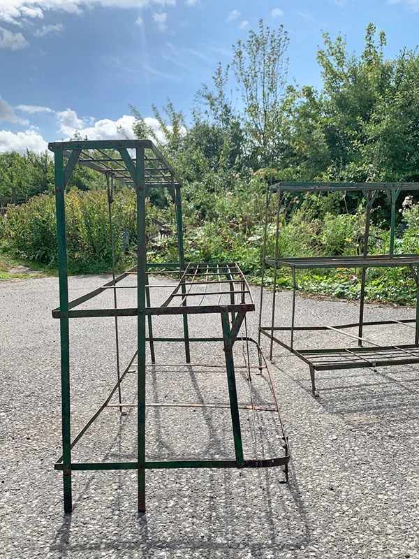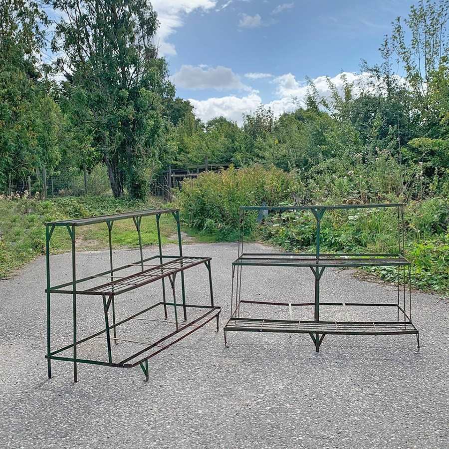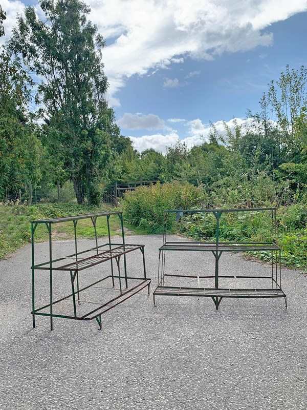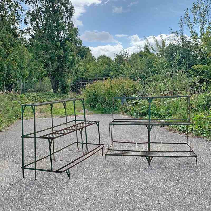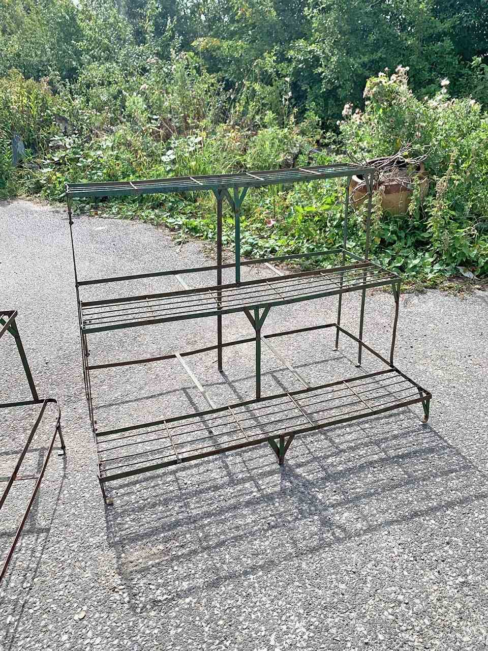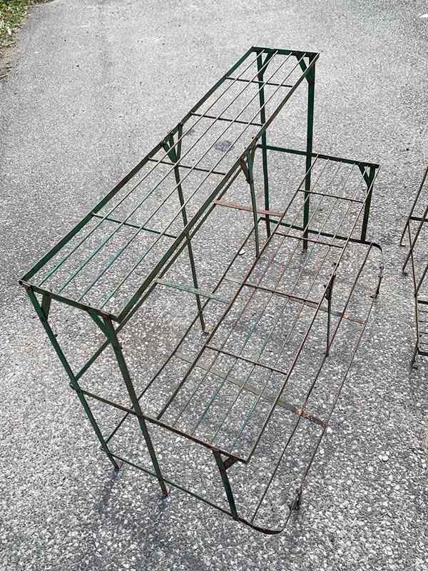 Each has 3 tiers. The bottom tier of the stand on the left has had some damage historically and the repair it's had has reduced its depth.