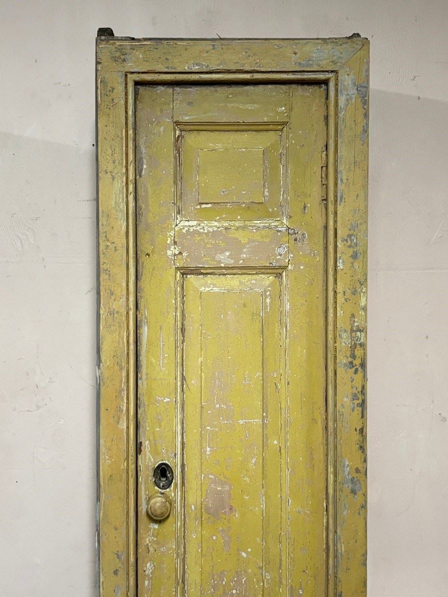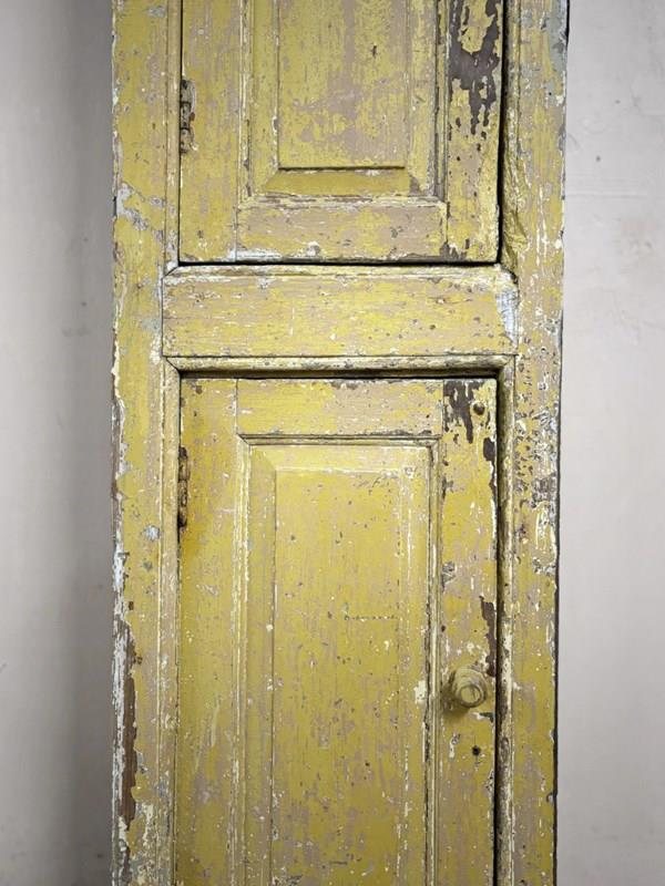 Very hard to find pair of 2 door shelved cupboards retaining original paint. These were removed from a house in the Scottish borders, and were originally fitted flush either side of a range, meaning only the cupboard fronts were visible, the rough cut sides hidden in the wall.