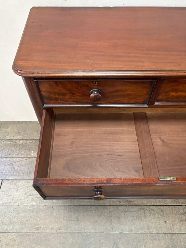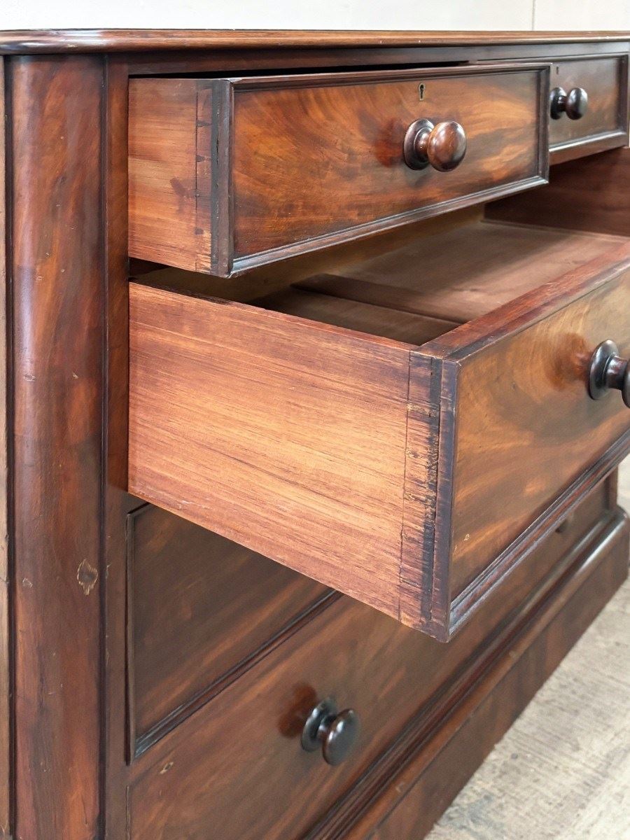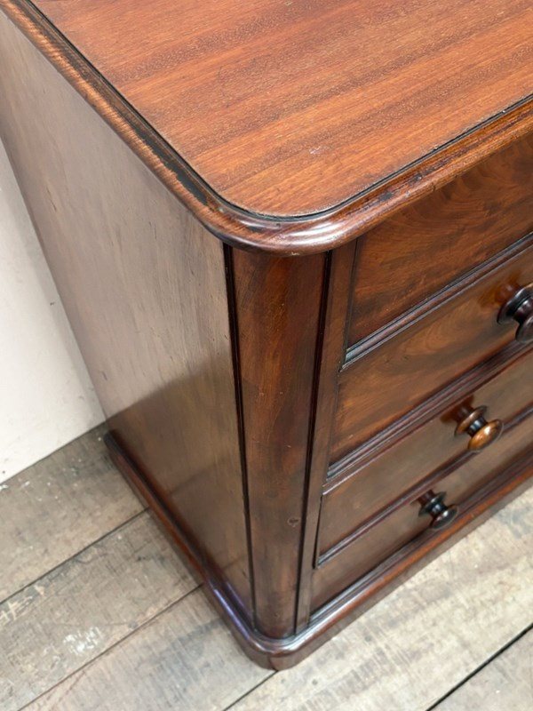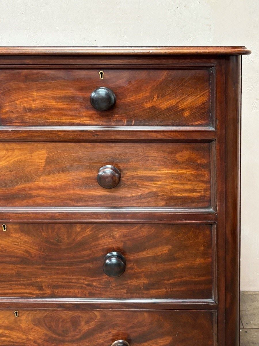 Very good quality solid mahogany 5 drawer chest on plinth base.