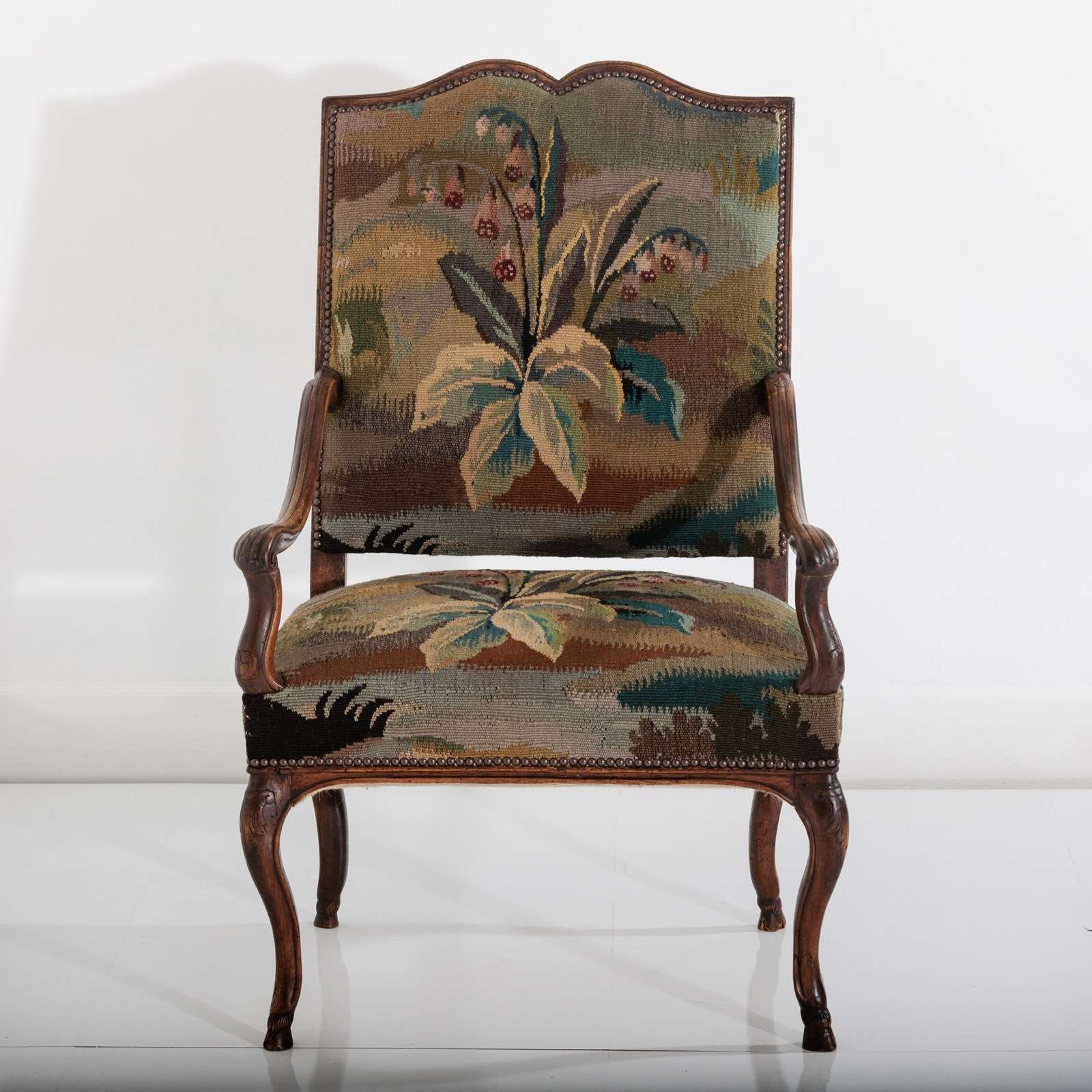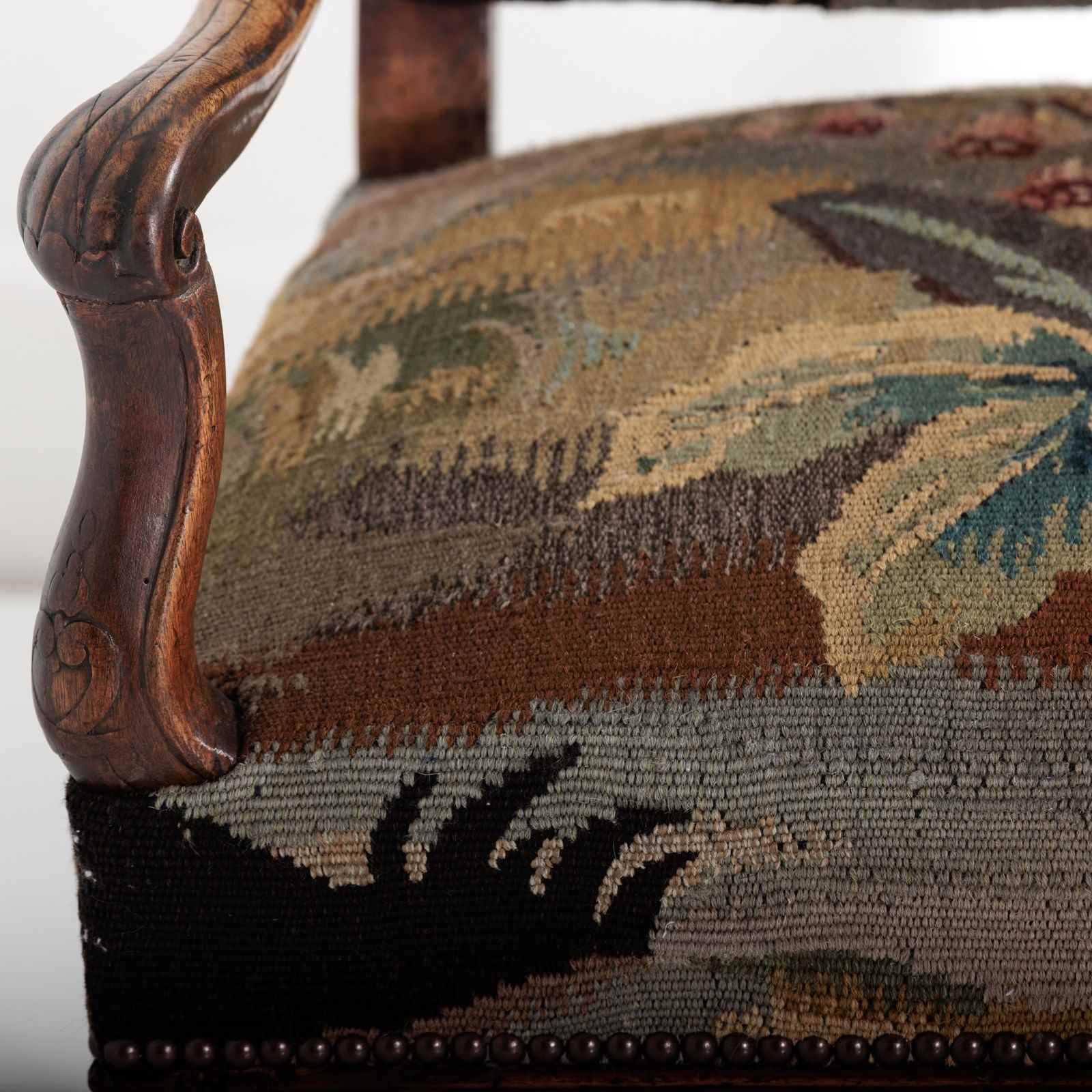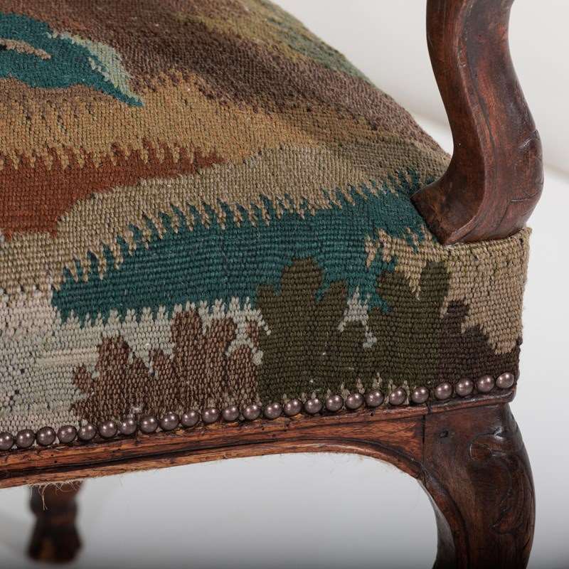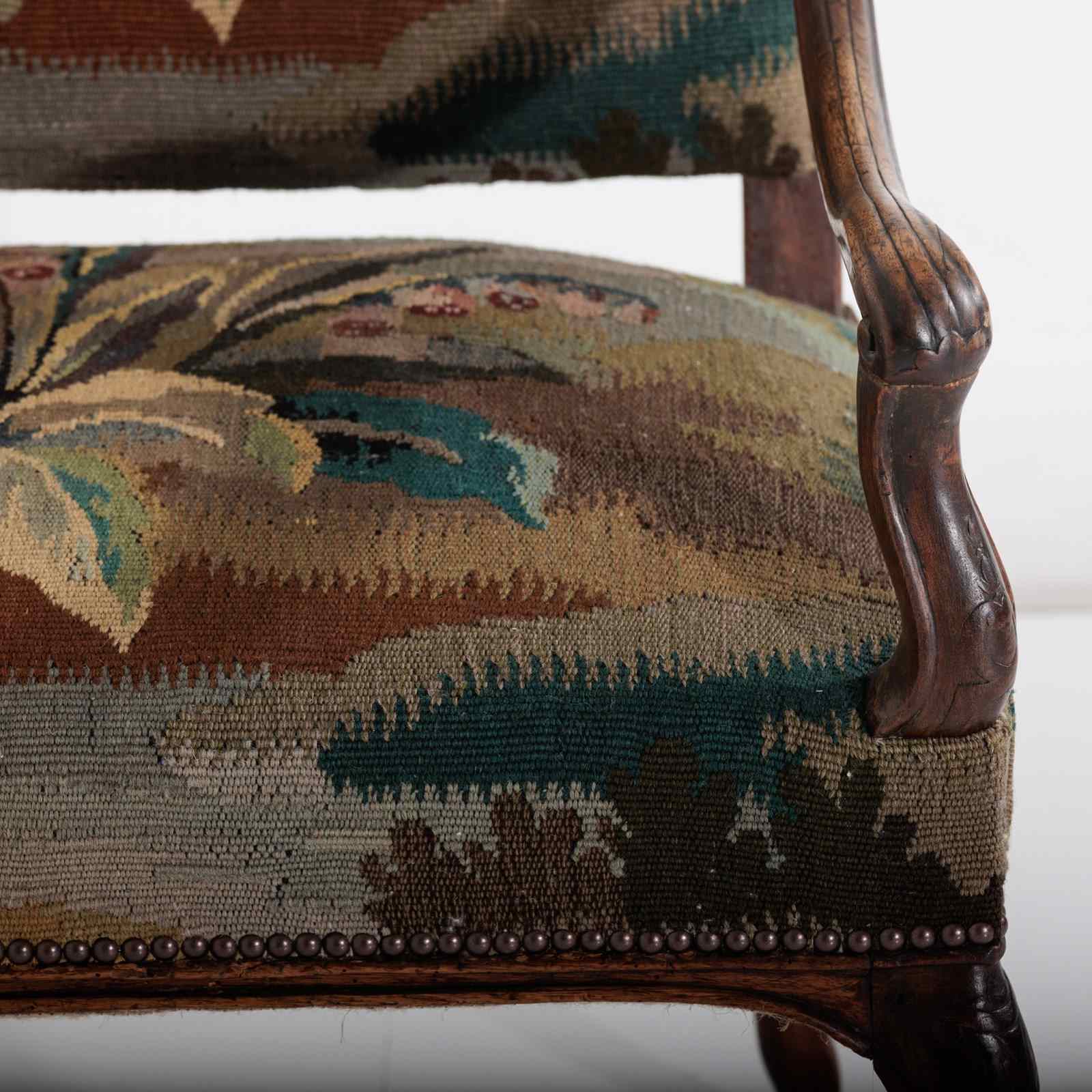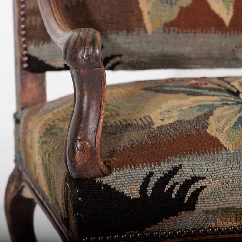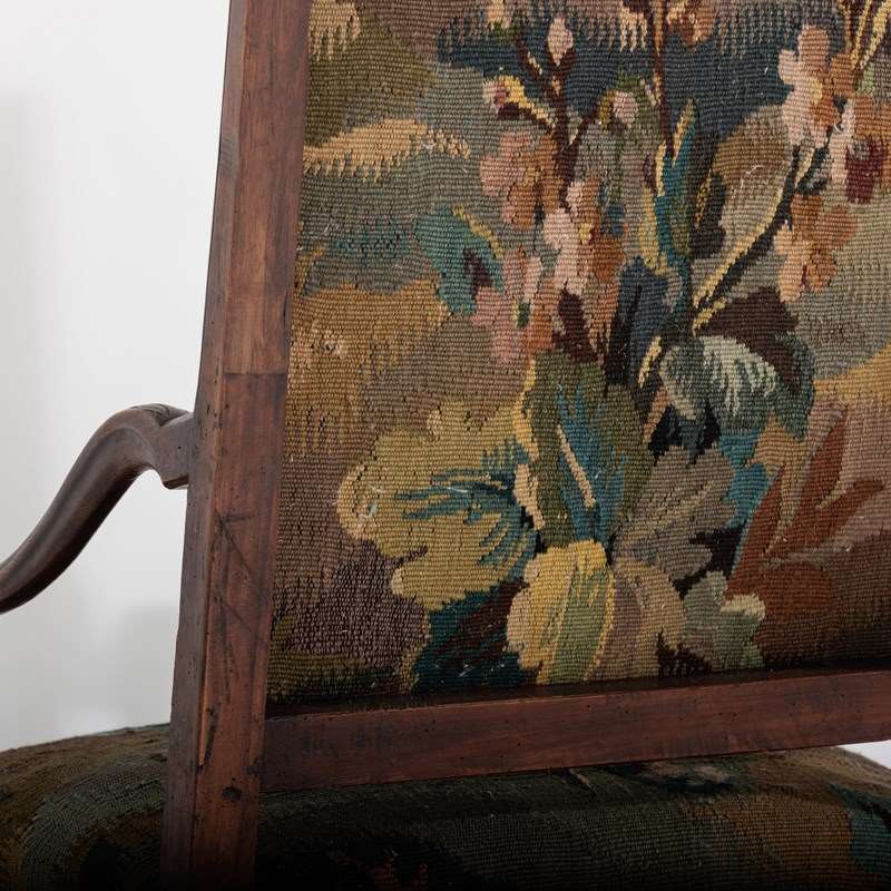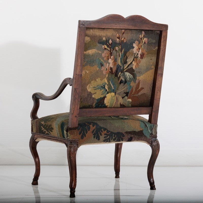 18Th Century Walnut French Open Armchair In Tapestry