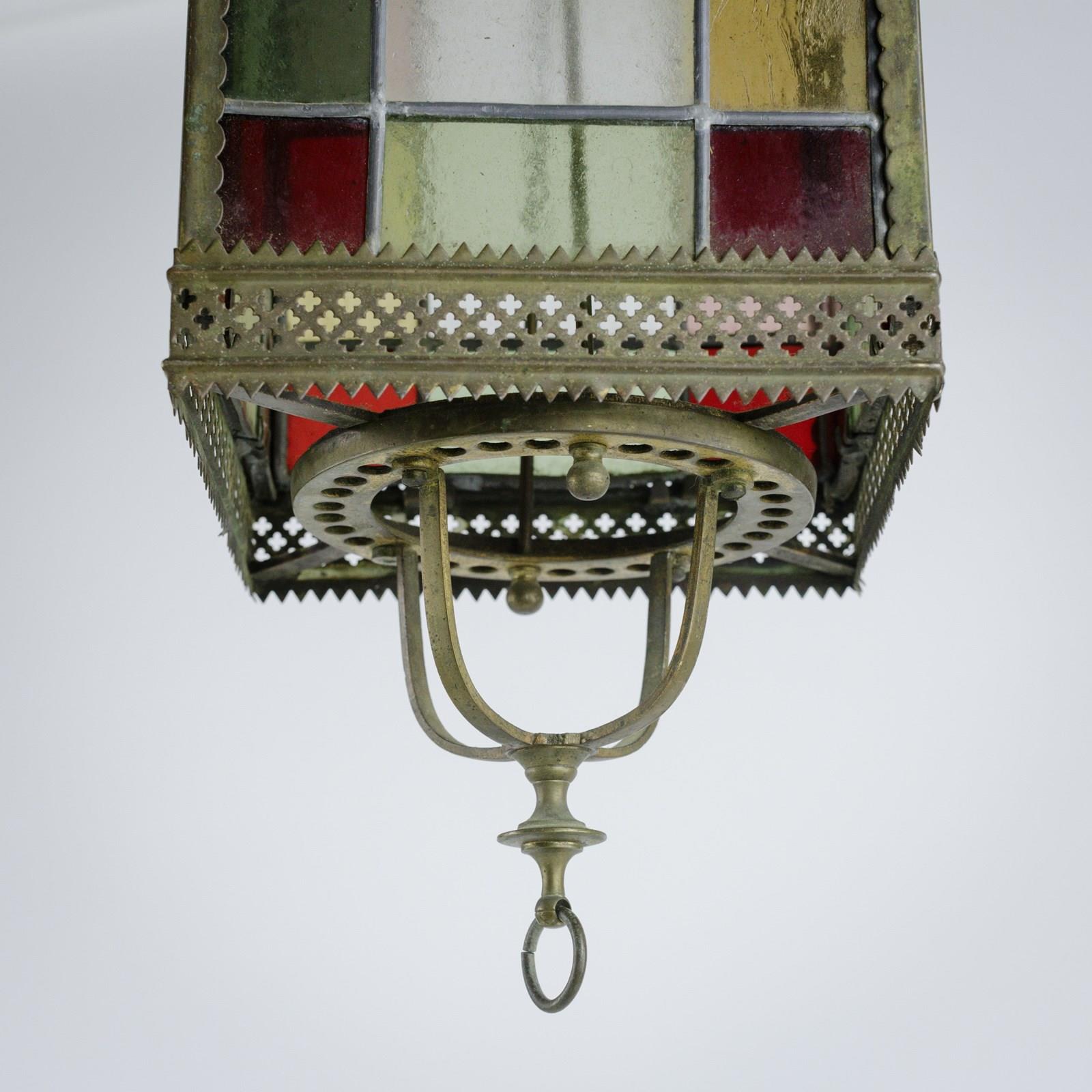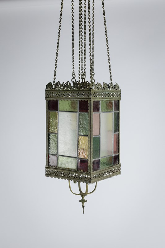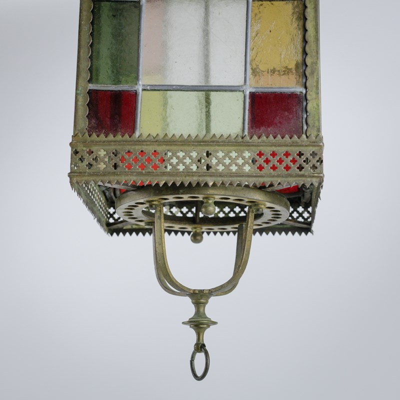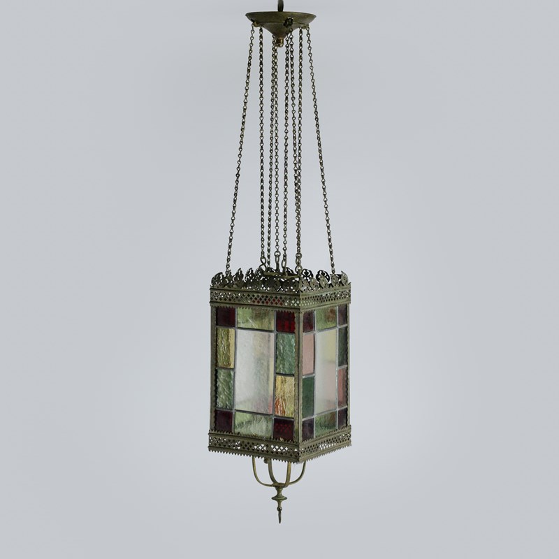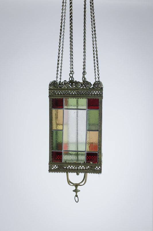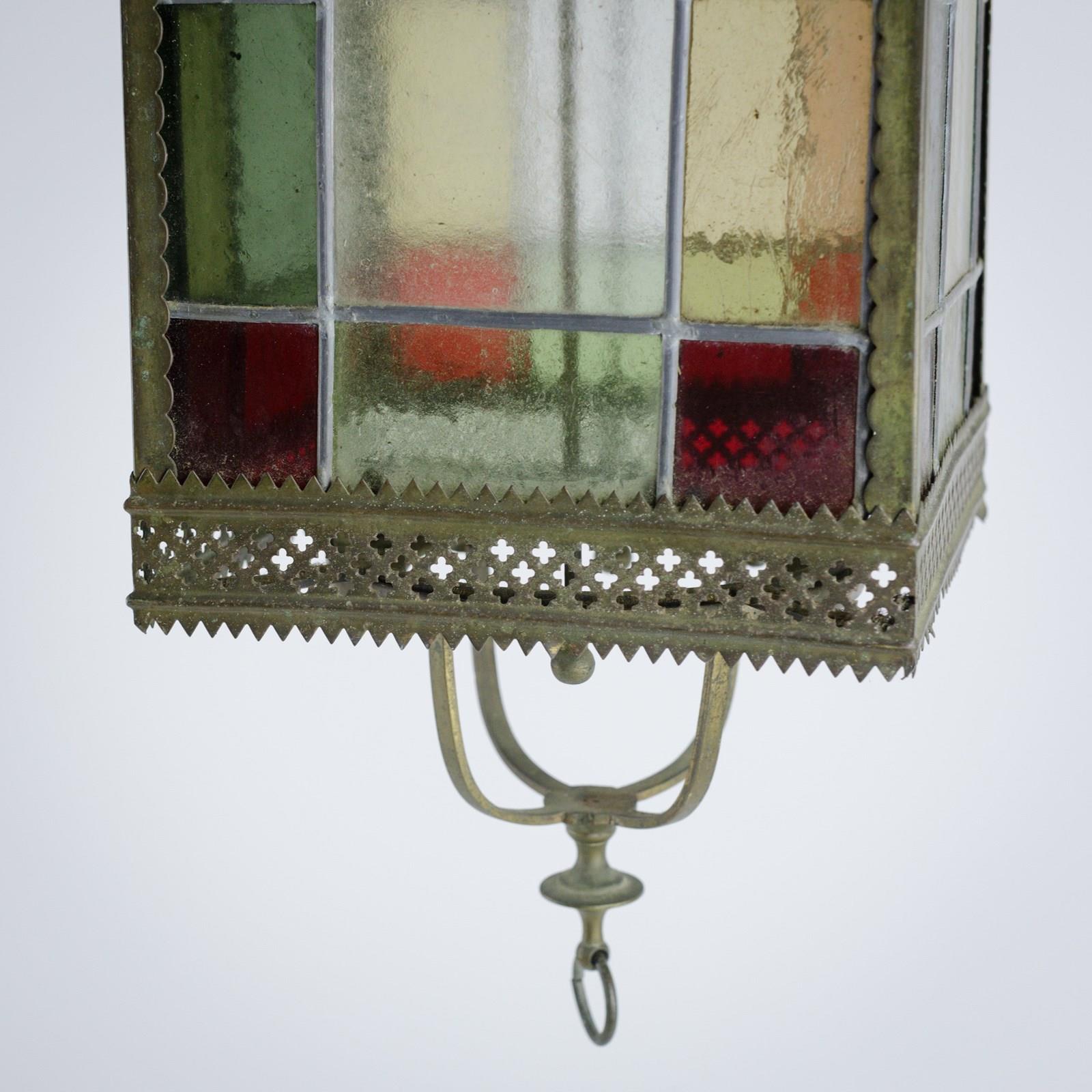 19Th Century Stained Glass Hall Lantern