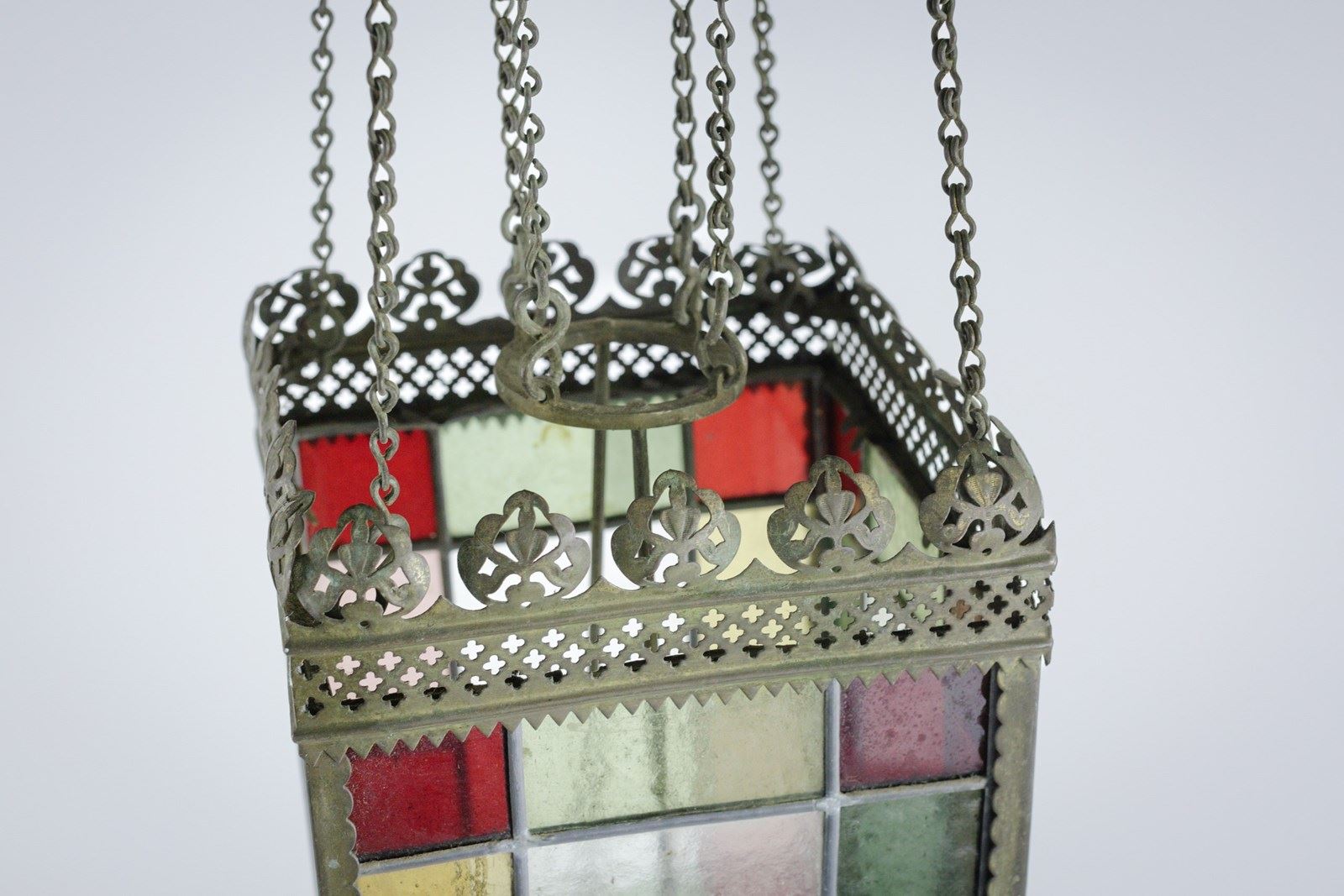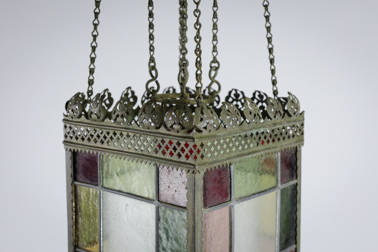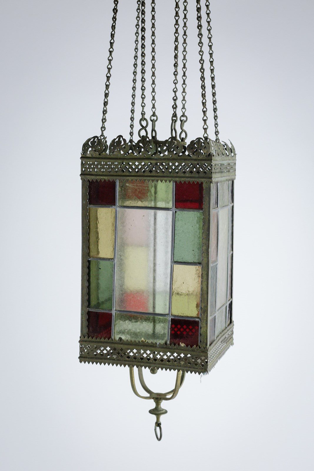 19Th Century Stained Glass Hall Lantern