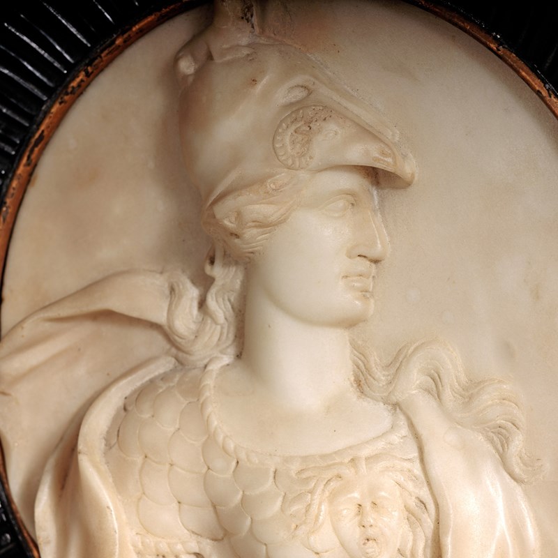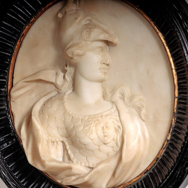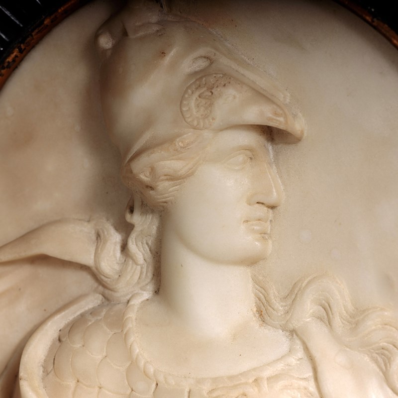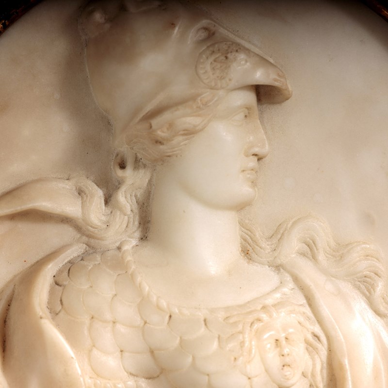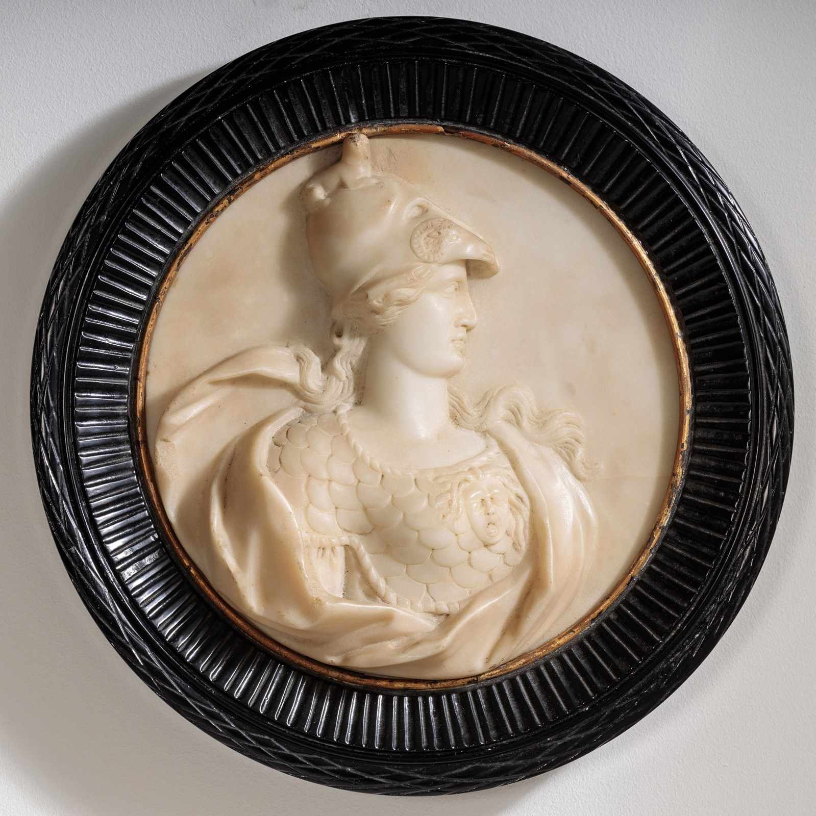 A fine late 18th Century Grand Tour marble tondo of Athena. Italy Circa 1780.