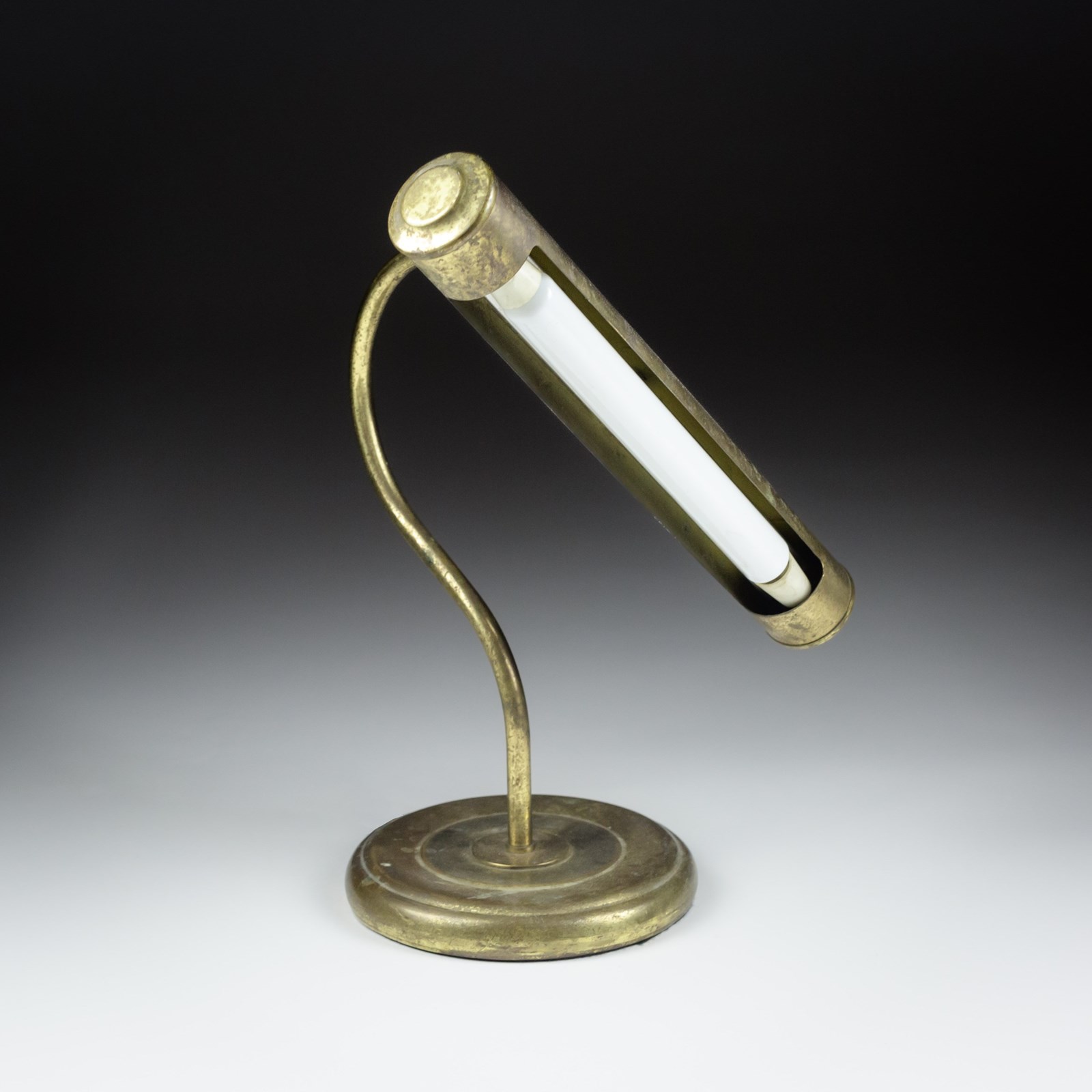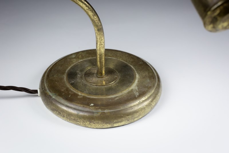 Smart Swan Neck Desk Lamp. Tarnished Brass, Newly rewired and PAT tested. England, Circa 1940.