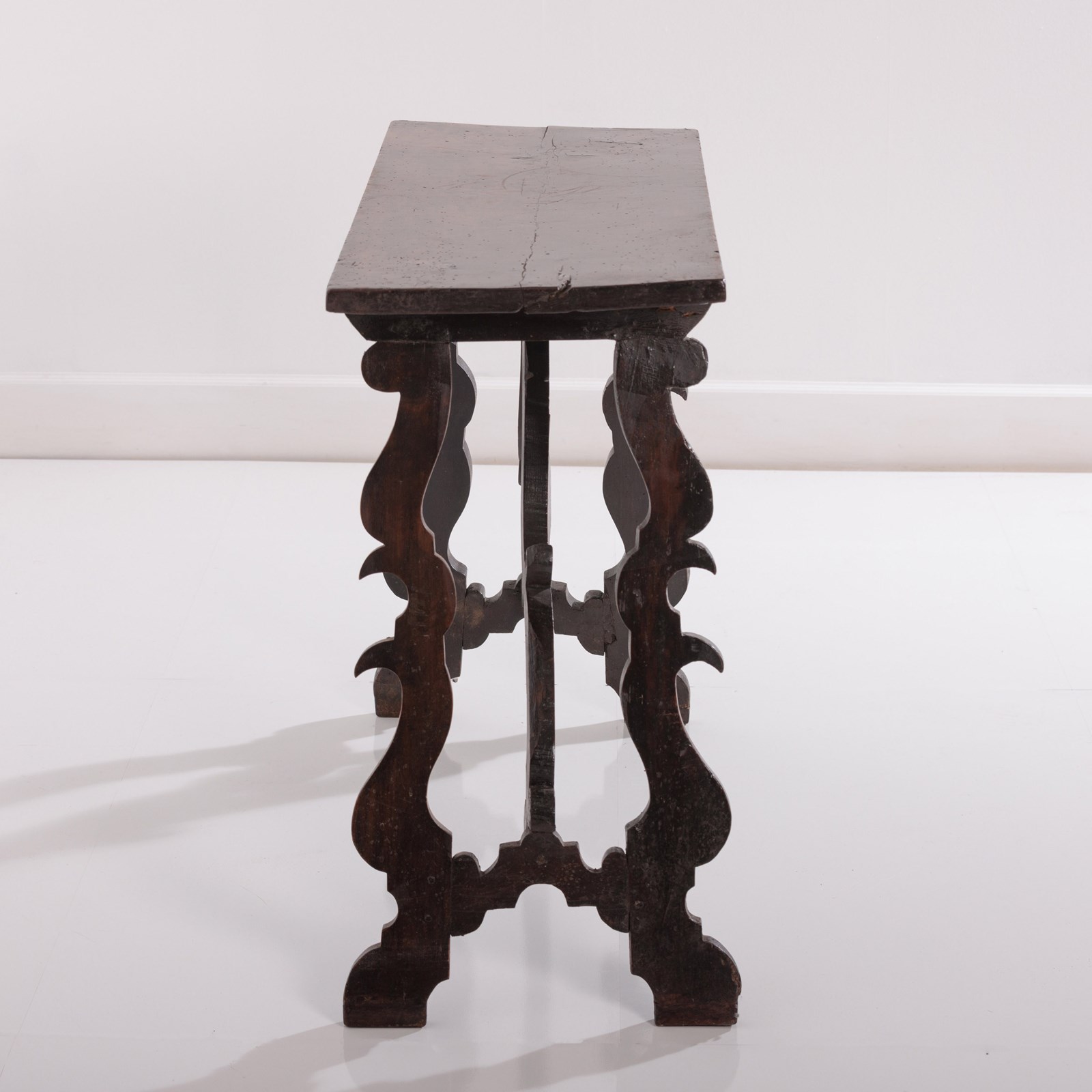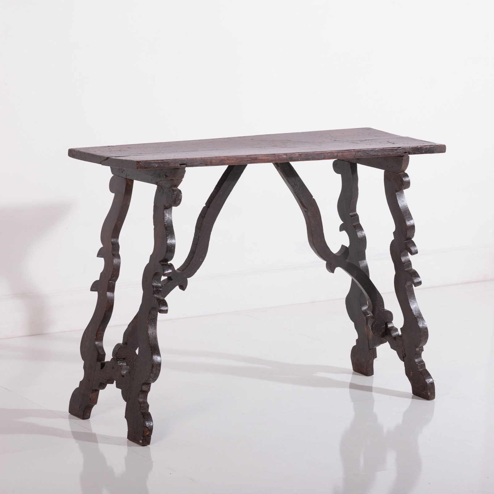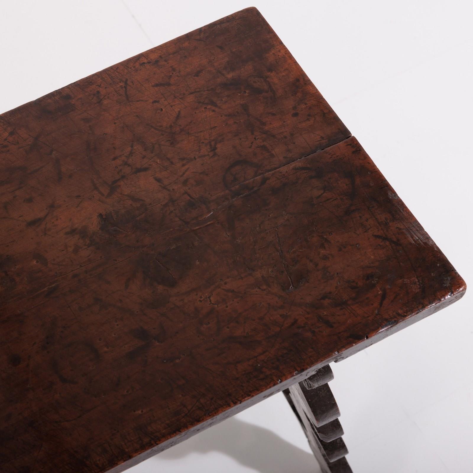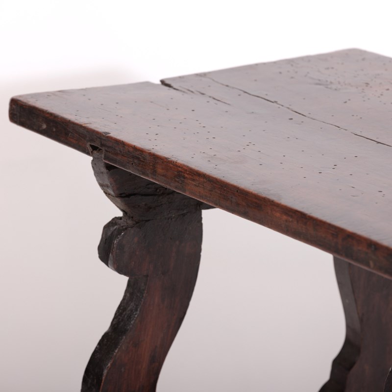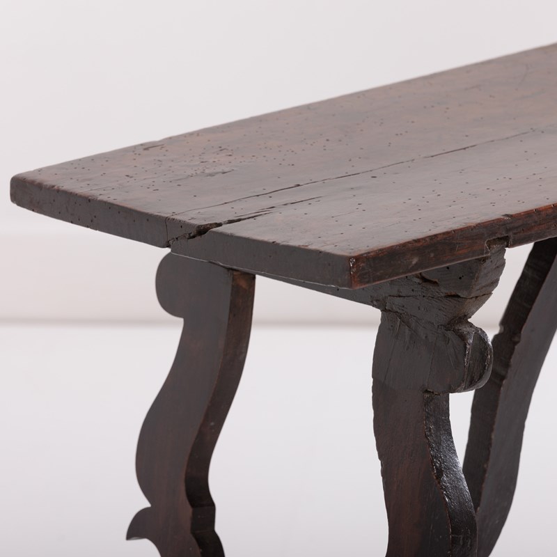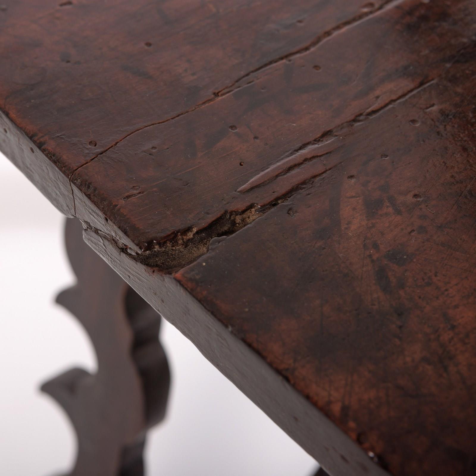 Early 19th Century Italian Console Table Single plank walnut top, lots of wear, excellent colour, evidence of historical worm (treated) Italy, Circa 1820.