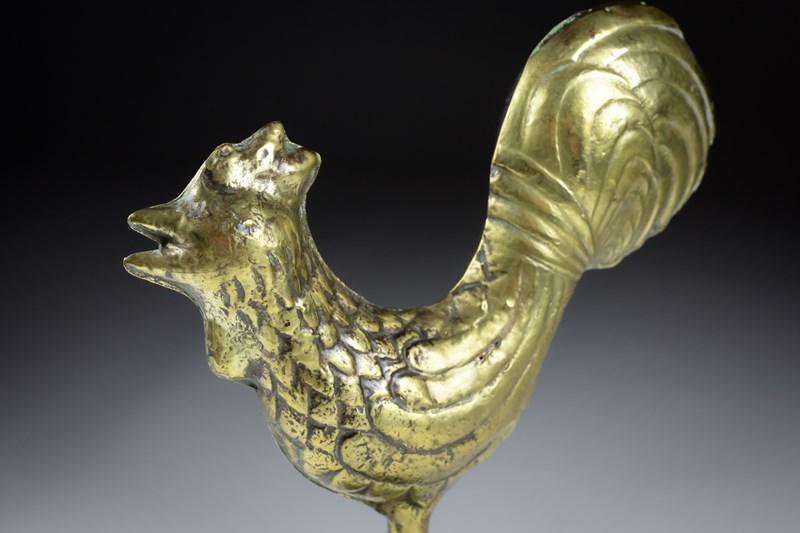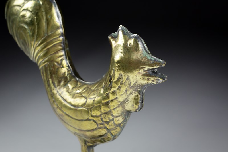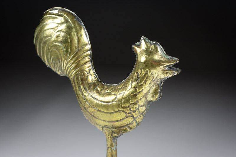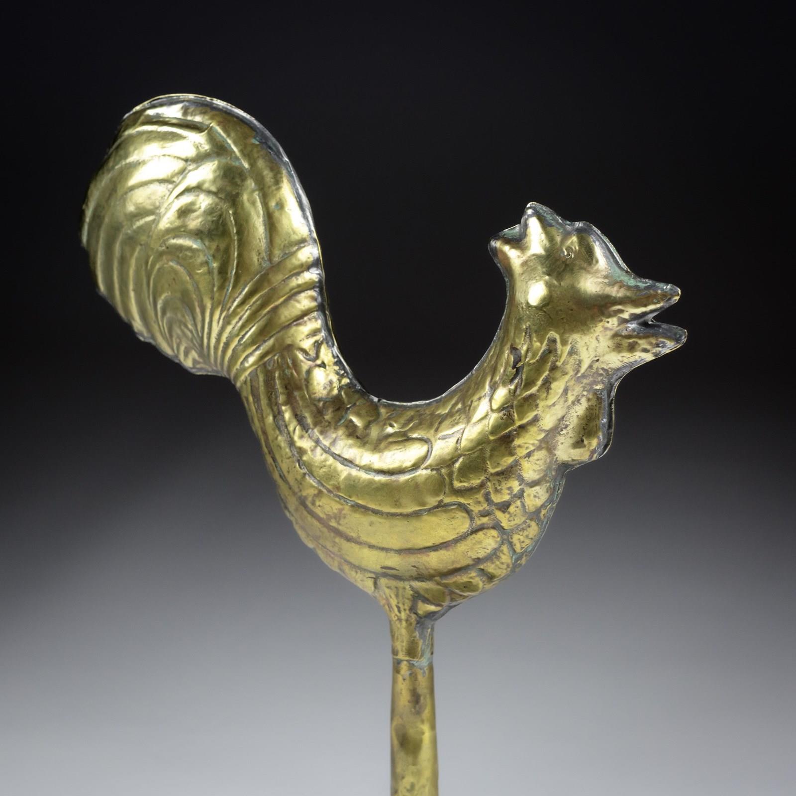 Late 19Th Century Diminutive Full Bodied Brass Cockerel Weathervane