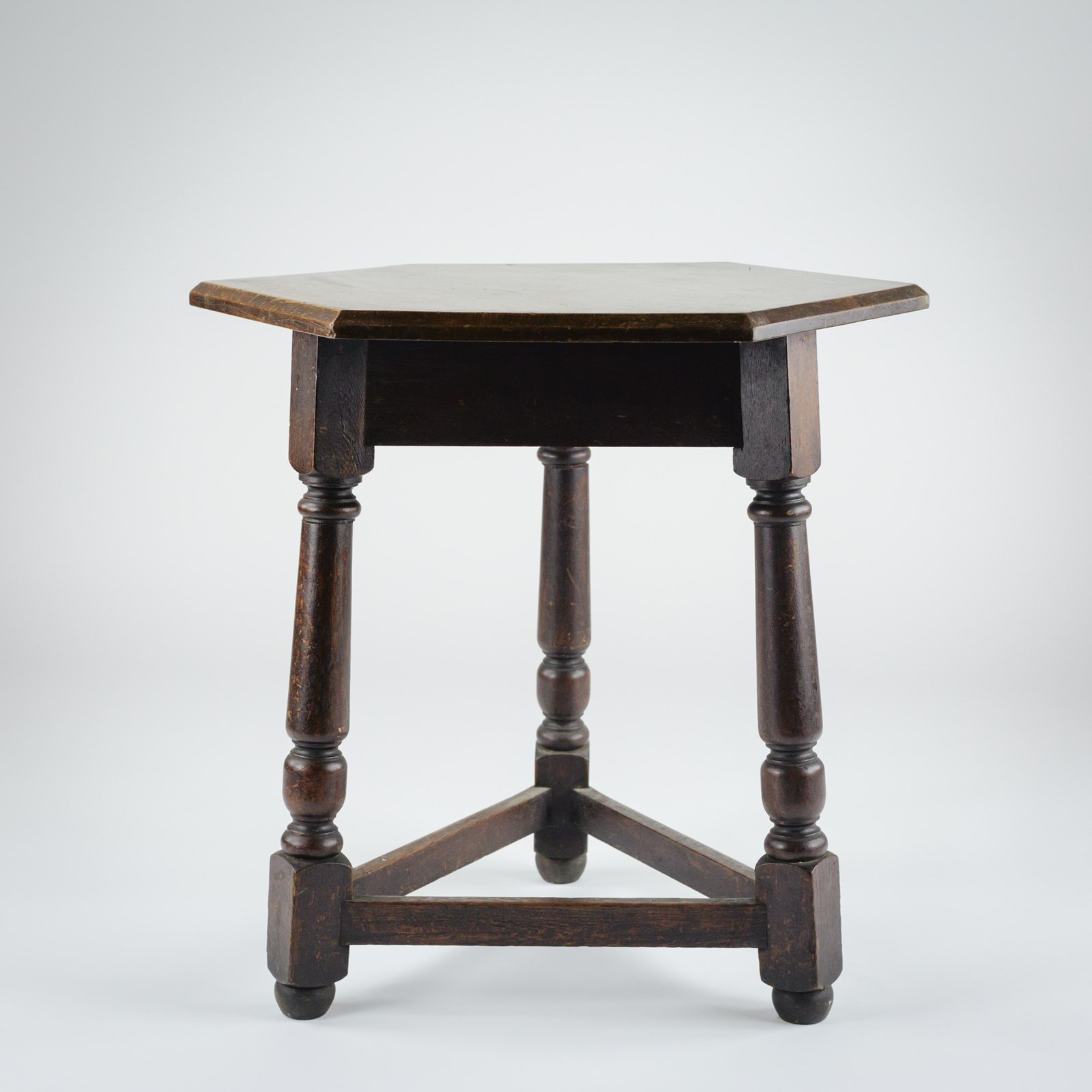 Late 19th Century Cricket Table. Strong and robust, good thick chamfered hexagonal top of Oak. Great patination. England, Circa 1890.